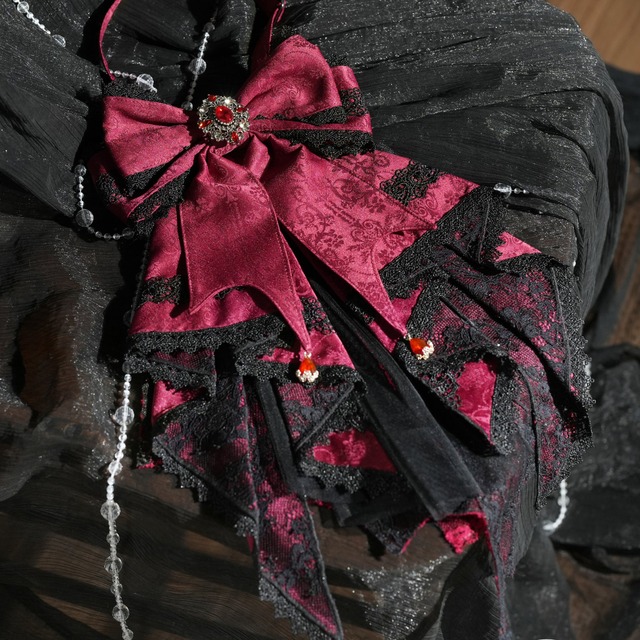 その羽を広げる時―― 大人気なナイト・イーヴィルシリーズより、華やかなジャボタイが登場✧ 繊細なレースを重ねた大ぶりなリボンが印象的。 リボン中央にはきらめくストーンでゴシックに仕上げました。 コーデの主役にもピッタリなジャボタイはいかがでしょうか。 *商品本体以外の衣類及び撮影用小物は付属致しません。 【カラー】 ・ブラック ・レッド ・ホワイト 【サイズ】 全長 45cm 横幅 18cm 首まわり 36cm~46cm 【素材】 表地: ポリエステル ナイロン その他: 樹脂 合金 【購入の際のご注意】 *モニター環境により、実際の商品の色合いと異なって見える場合がございます。 *手作業での製作品の為、仕上がりには個体差がございます。ご了承下さい。 *予約商品に関しまして、情勢及び輸送事情、生産状況により、お届け時期が前後する可能性がございます。何卒ご了承くださいませ。 *お客様のご入金確認後、在庫が確保できた商品から順次商品を発送いたします。但し、商品の在庫状況により発送までお時間をいただく場合がございます。 *発送時期の異なる予約商品を同時にご注文頂いた場合、発送時期が遅いものに合わせて発送いたします。 【取り扱いの際の注意点】 *強い衝撃を与えますと飾りが取れてしまう可能性がありますのでご注意下さい。 【返品について】 *イメージと違った、サイズが合わない、ご注文をお間違えになった、など、お客様都合による理由の場合につきましては、他商品への交換及び返品は、原則お受けしておりません。ご注文の際には十分ご注意下さい。