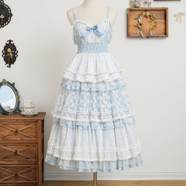 やさしい風が吹き抜ける、小さなコテージの庭。 白いレースと淡い色彩に包まれて、時間はゆっくりと流れていく。 飾りすぎない可憐さと、丁寧に重ねたディテール。 日常と物語のあわいに佇むような、穏やかなロリィタスタイルを描きました。 ふんわりと広がるシルエットに、繊細なレースとリボンを重ねたジャンパースカート。 胸元から裾にかけて施された装飾が、上品で華やかな印象を演出します。 軽やかな生地感で、重ね着もしやすく、季節を問わず楽しめる一着。 ブラウスやヘッドドレスとの組み合わせ次第で、可憐にもクラシカルにも着こなしていただけます。 *商品本体以外の衣類及び撮影用小物は付属致しません。 【カラー】 ・コーラルピンク ・サックス ・ラベンダー 【サイズ】 着丈 91cm 肩幅 28cm バスト 104cm ウエスト F 【素材】 表地: ポリエステル 95% スパンデックス 5% 裏地: コットン その他: ポリエステル ナイロン 合金 ジルコニア 【購入の際のご注意】 *モニター環境により実際の商品の色合いと異なって見える場合がございます。 *お客様のご入金確認後、在庫が確保できた商品から順次商品を発送致します。但し、商品の在庫状況により発送までお時間をいただく場合がございます。 *商品在庫は一部実店舗との在庫共有商品となります為、入れ違いの品切れによりすぐにご注文商品をご用意できない場合は在庫の取り寄せを行なってからの発送となります。委託商品及び生産終了商品などの場合はキャンセルとなる場合がございます。恐れ入りますが、御了承の上でご注文頂けます様お願い致します。 *在庫が無い製品の場合は[30日]を目安に在庫の取り寄せまたは生産・製作が完了後に随時発送致します。 *予約商品に関しましては情勢及び輸送事情、生産状況によりお届け時期が前後する可能性がございます。何卒ご了承頂けます様お願い致します。 *発送時期の異なる予約商品を同時に御注文頂いた場合、発送時期が遅いものに合わせての発送となります。 【取り扱いの際の注意点】 *強い衝撃を与えますと飾りが取れてしまう可能性がありますのでご注意下さい。 【返品について】 *イメージと違った、サイズが合わない、ご注文をお間違えになったなどお客様都合による理由の場合につきましては原則他商品への交換及び返品はお受けしておりませんので御注文の際には十分ご注意下さい。