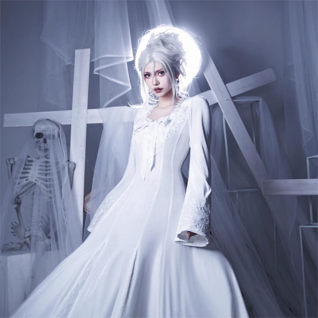 ”あちら”と”こちら”を繋ぐ扉が開くとき 微笑みを浮かべるのは美しい魔女か、それとも… 優美なシルエットとラグジュアリーなレースが施されたワンピース。 揺れるとしっとりとした光沢が目を引くベルベット生地。 美しいボディラインはパターンにこだわることで実現しました✧ 同系色の大ぶりなモチーフレースをたっぷりあしらい、上品かつ華やいだ雰囲気に。 バックのレースアップでよりフィットするように微調整も◎ エレガントなコーディネートで揃えたいシーンにおすすめのアイテム。 同シリーズで合わせると、憧れの魔法使いになれちゃうかも? *商品本体以外の衣類及び撮影用小物は付属致しません。 【カラー】 ・ブラック ・ホワイト ・ダークパープル ・ダークグリーン 【サイズ】 着丈 127cm 肩幅 36cm バスト 88~98cm ウエスト 66~88cm 袖丈 72cm 【素材】 ポリエステル スパンデックス ナイロン コットン 銅 亜鉛-アルミニウム合金 【購入の際のご注意】 *モニター環境により実際の商品の色合いと異なって見える場合がございます *通常販売商品・即納商品につきましてはご注文後、商品在庫がございます場合には1週間以内を目安に発送致します。 *商品在庫は一部実店舗との在庫共有商品となります為、入れ違いの品切れによりすぐにご注文商品をご用意できない場合は在庫の取り寄せを行なってからの発送となります。委託商品及び生産終了商品などの場合はキャンセルとなる場合がございます。恐れ入りますが、御了承の上でご注文頂けます様お願い致します。 *在庫が無い製品の場合は[30日]を目安に在庫の取り寄せまたは生産・製作が完了後に随時発送致します。 *予約商品に関しましては情勢及び輸送事情、生産状況によりお届け時期が前後する可能性がございます。何卒ご了承頂けます様お願い致します。 *発送時期の異なる予約商品を同時に御注文頂いた場合、発送時期が遅いものに合わせての発送となります。 【取り扱いの際の注意点】 *強い衝撃を与えますと飾りが取れてしまう可能性がありますのでご注意下さい 【返品について】 *イメージと違った、サイズが合わない、ご注文をお間違えになったなどお客様都合による理由の場合につきましては原則他商品への交換及び返品はお受けしておりませんので御注文の際には十分ご注意下さい。