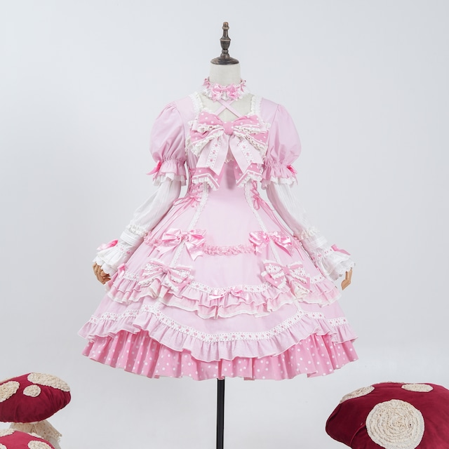 角砂糖も時計だって、全てがもうここにあるのだから。 ああ、愛おしのなんでもない今日に、乾杯。 たっぷりのリボンと大きなパフスリーブでアクティブかつファンタジックに。 いつまでもあなたが笑顔でいられるような、キュートなワンピースです。 *商品本体以外の衣類及び撮影用小物は付属致しません。 【カラー】 ・ピンク 【サイズ】 〈ワンピース〉 〈S〉 着丈 86cm 肩幅 34cm バスト 82cm~86cm ウエスト 70cm~74cm 袖丈 64cm 袖口まわり 25cm 〈M〉 着丈 88.5cm 肩幅 35cm バスト 88cm~92cm ウエスト 76cm~80cm 袖丈 65cm 袖口まわり 26cm 〈choker〉 フリーサイズ レース部分 26cm 幅 6cm 【素材】 コットン ポリエステル 合金 【購入の際のご注意】 *モニター環境により、実際の商品の色合いと異なって見える場合がございます。 *手作業での製作品の為、仕上がりには個体差がございます。ご了承下さい。 *予約商品に関しまして、情勢及び輸送事情、生産状況により、お届け時期が前後する可能性がございます。何卒ご了承くださいませ。 *お客様のご入金確認後、在庫が確保できた商品から順次商品を発送いたします。但し、商品の在庫状況により発送までお時間をいただく場合がございます。 *発送時期の異なる予約商品を同時にご注文頂いた場合、発送時期が遅いものに合わせて発送いたします。 【取り扱いの際の注意点】 *強い衝撃を与えますと飾りが取れてしまう可能性がありますのでご注意下さい。 【返品について】 *イメージと違った、サイズが合わない、ご注文をお間違えになった、など、お客様都合による理由の場合につきましては、他商品への交換及び返品は、原則お受けしておりません。ご注文の際には十分ご注意下さい。
