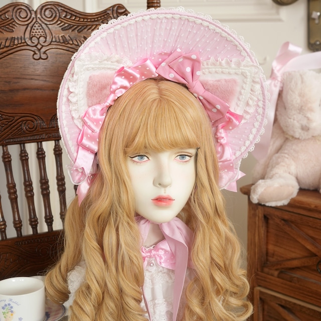 角砂糖も時計だって、全てがもうここにあるのだから。 ああ、愛おしのなんでもない今日に、乾杯。 キュートな猫耳とブリムの縁取りがアクティブな可愛らしさ。 リボンには異なるサイズのドットを合わせて猫のきまぐれを再現致しました。 いつまでも笑顔で可愛くいたい、あなたに使ってほしいボンネットです。 *商品本体以外の衣類及び撮影用小物は付属致しません。 【カラー】 ・ピンク 【サイズ】 幅 13.5cm 【素材】 ポリエステル コットン 合金 【購入の際のご注意】 *モニター環境により、実際の商品の色合いと異なって見える場合がございます。 *手作業での製作品の為、仕上がりには個体差がございます。ご了承下さい。 *予約商品に関しまして、情勢及び輸送事情、生産状況により、お届け時期が前後する可能性がございます。何卒ご了承くださいませ。 *お客様のご入金確認後、在庫が確保できた商品から順次商品を発送いたします。但し、商品の在庫状況により発送までお時間をいただく場合がございます。 *発送時期の異なる予約商品を同時にご注文頂いた場合、発送時期が遅いものに合わせて発送いたします。 【取り扱いの際の注意点】 *強い衝撃を与えますと飾りが取れてしまう可能性がありますのでご注意下さい。 【返品について】 *イメージと違った、サイズが合わない、ご注文をお間違えになった、など、お客様都合による理由の場合につきましては、他商品への交換及び返品は、原則お受けしておりません。ご注文の際には十分ご注意下さい。