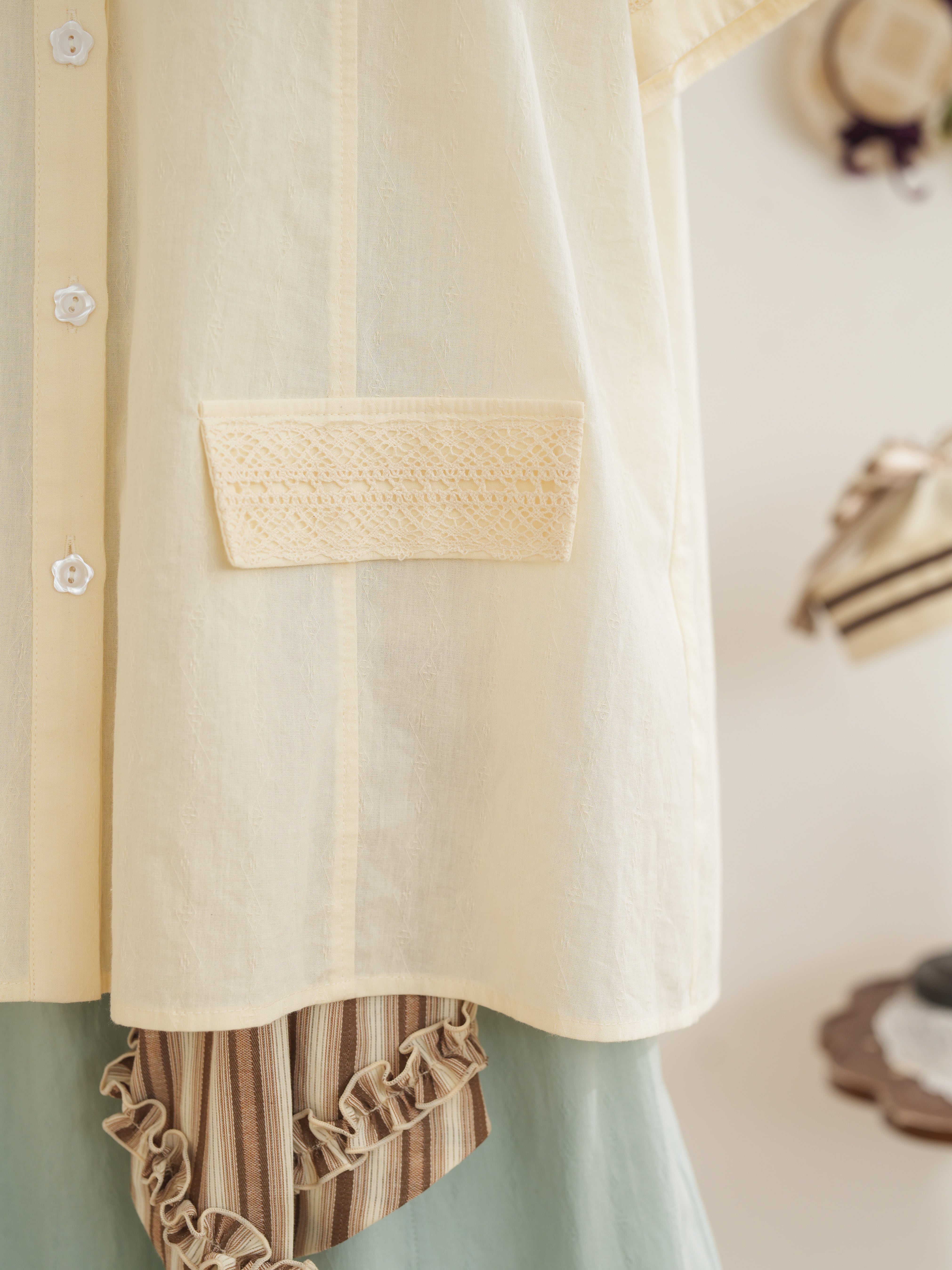 やわらかな風合いの生地に花型のボタンが優しい雰囲気のブラウス。