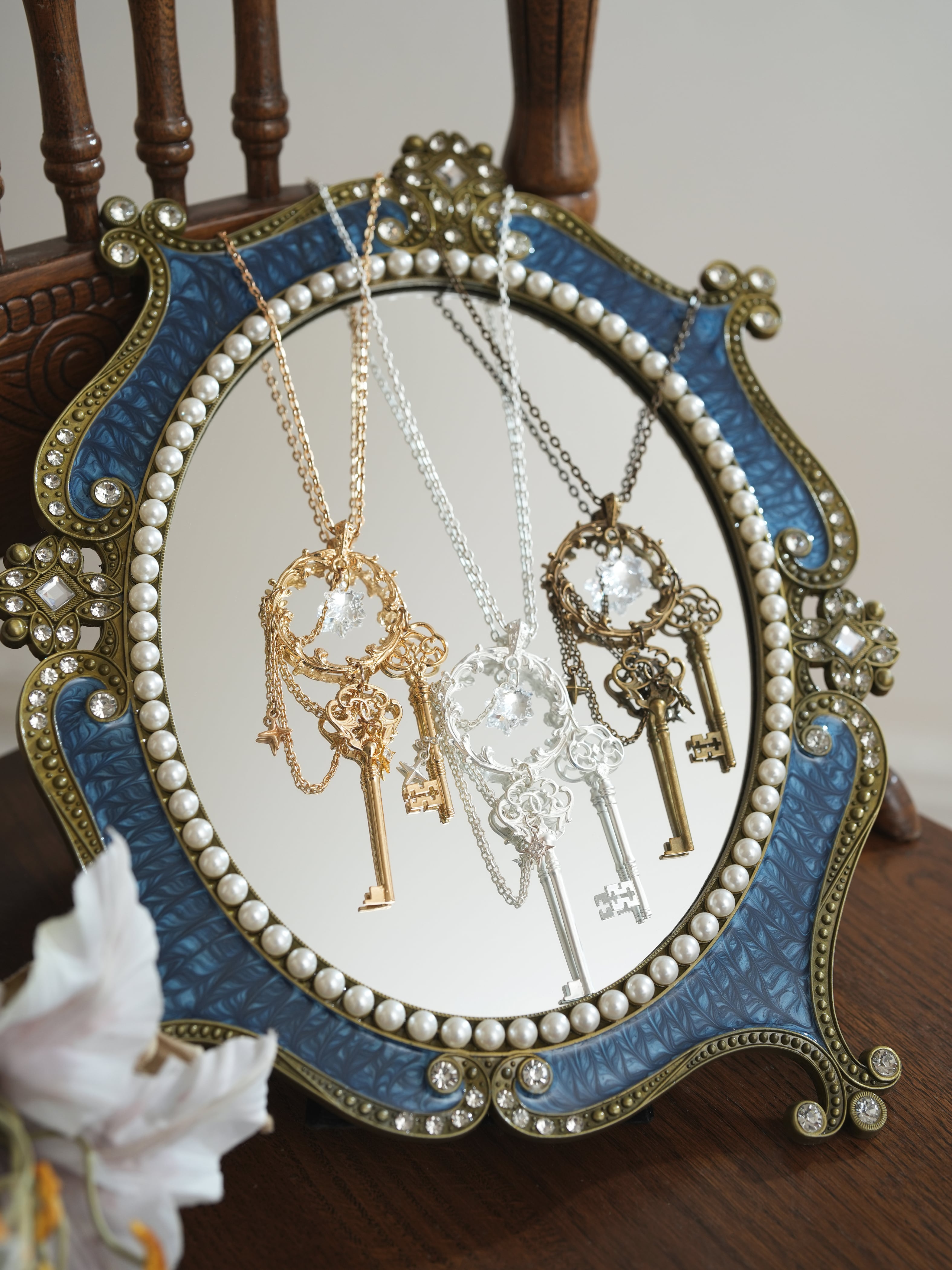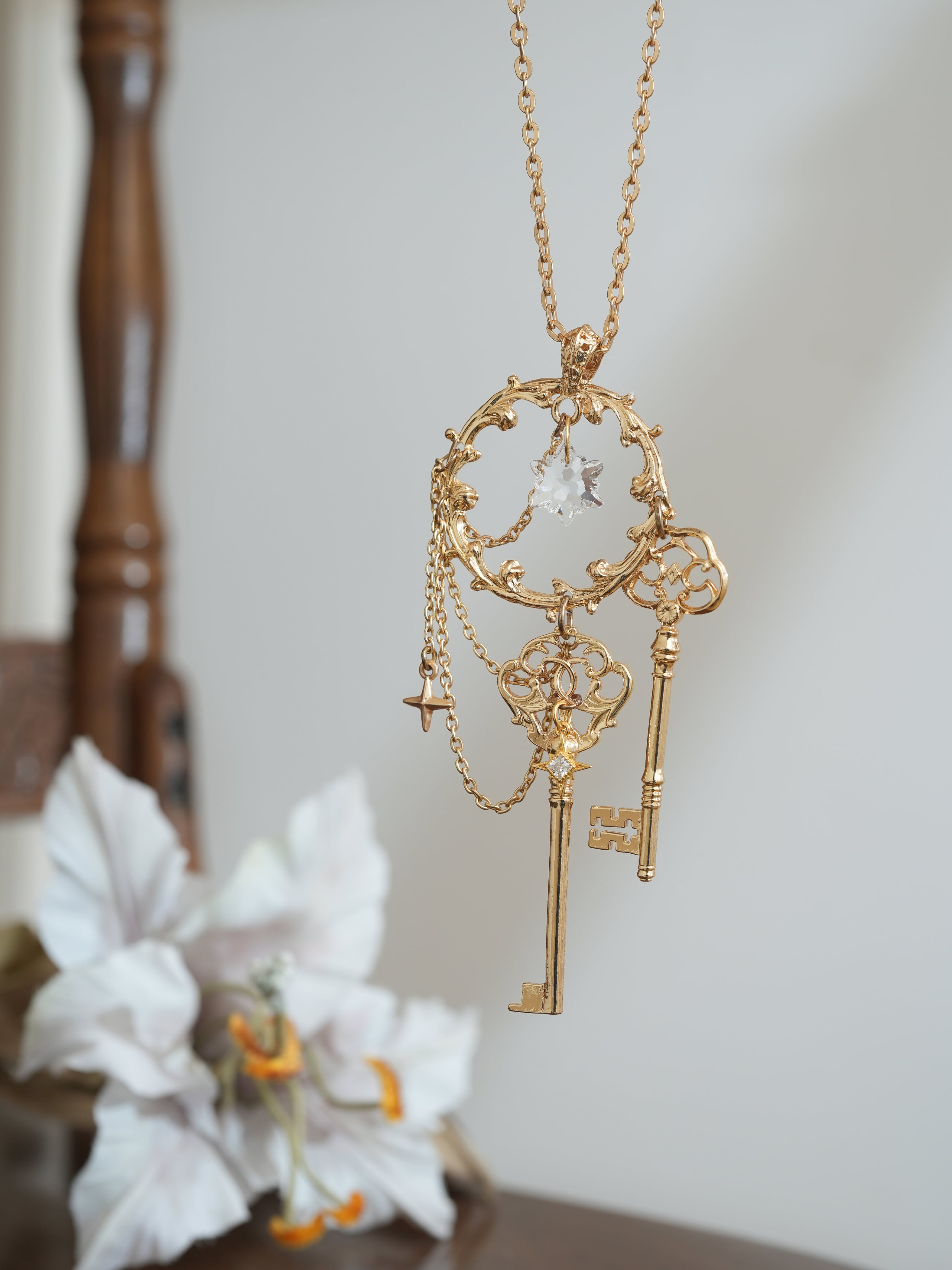 鍵のチャームがアイコニックなネックレス。