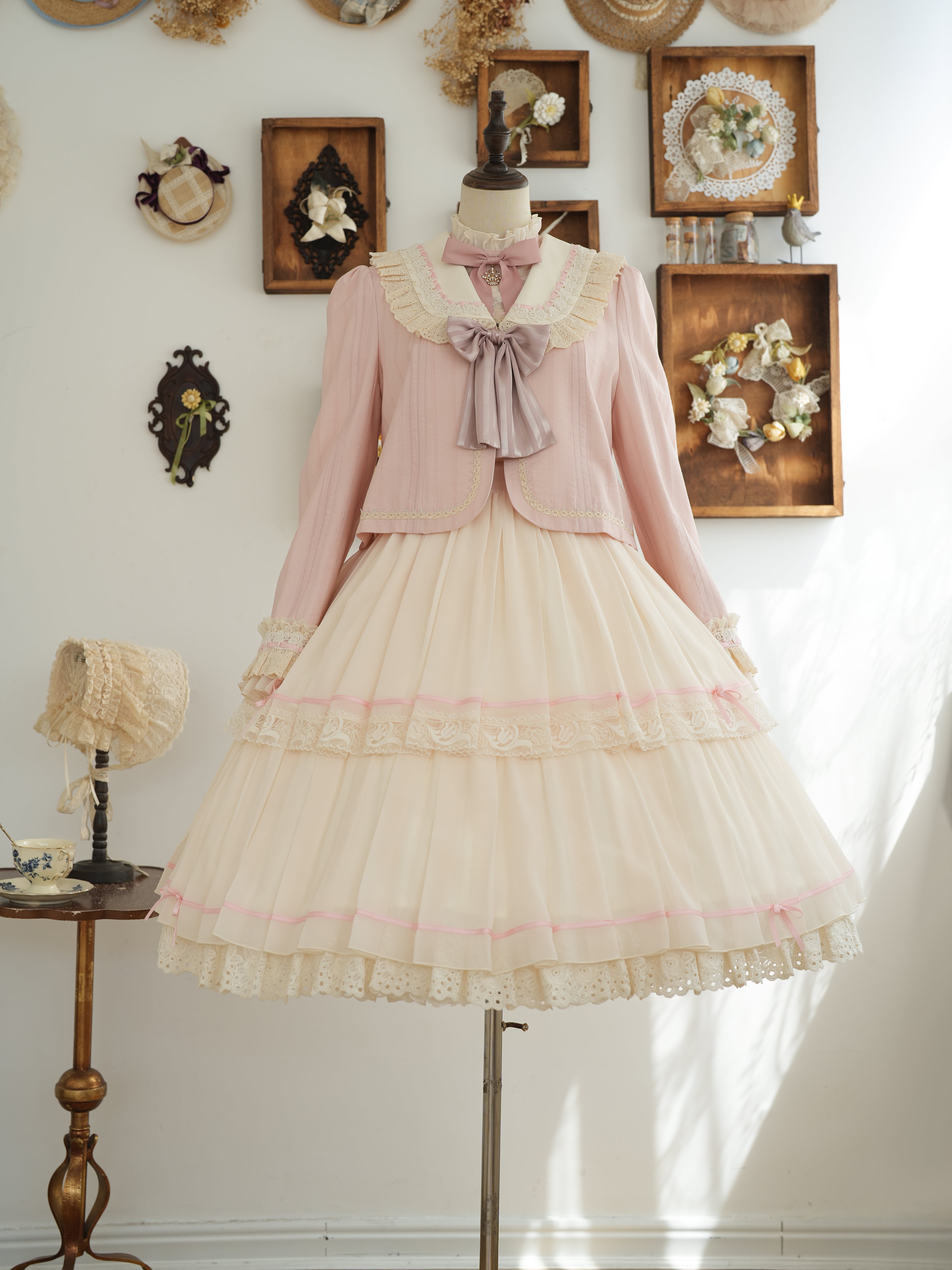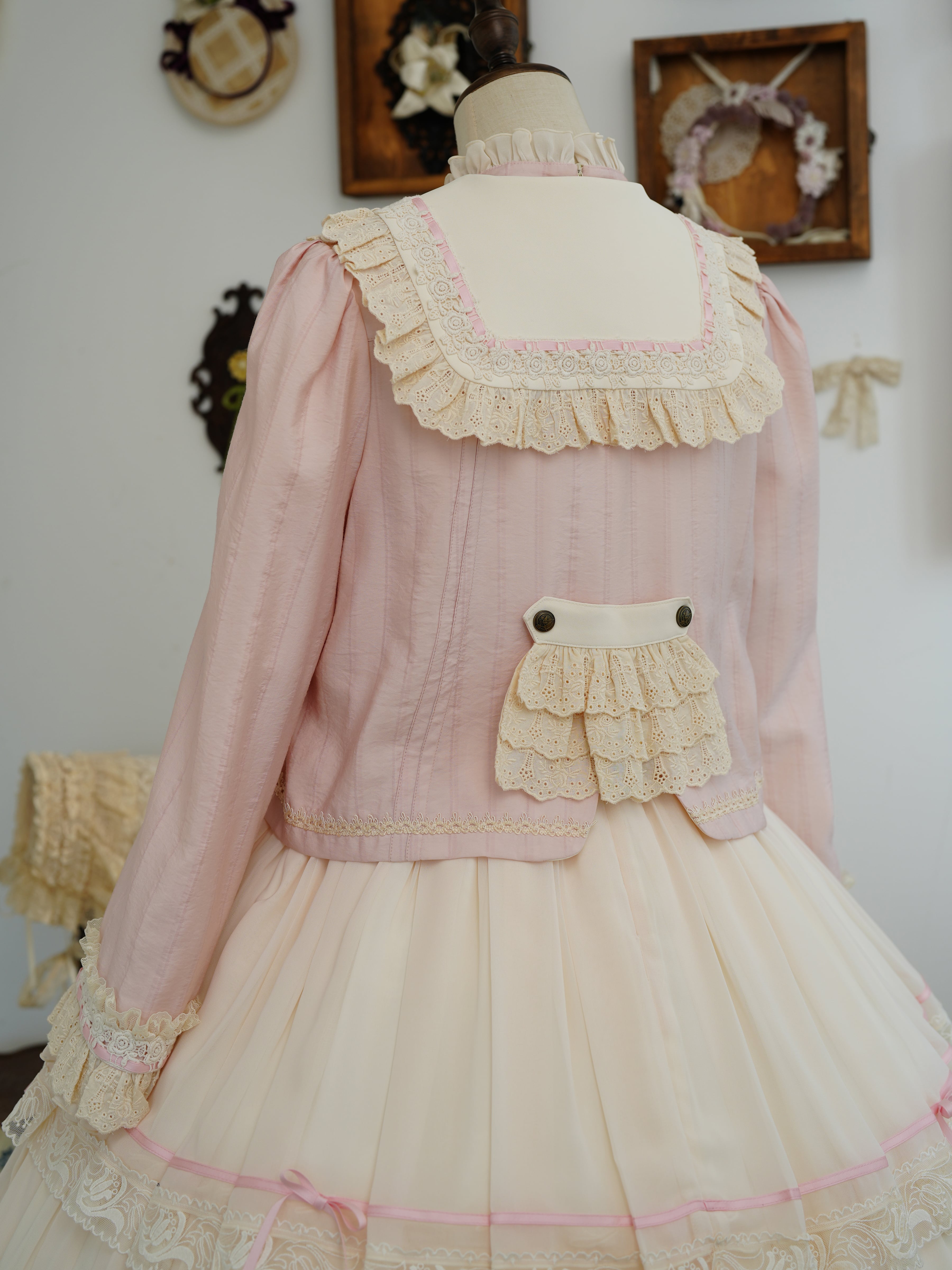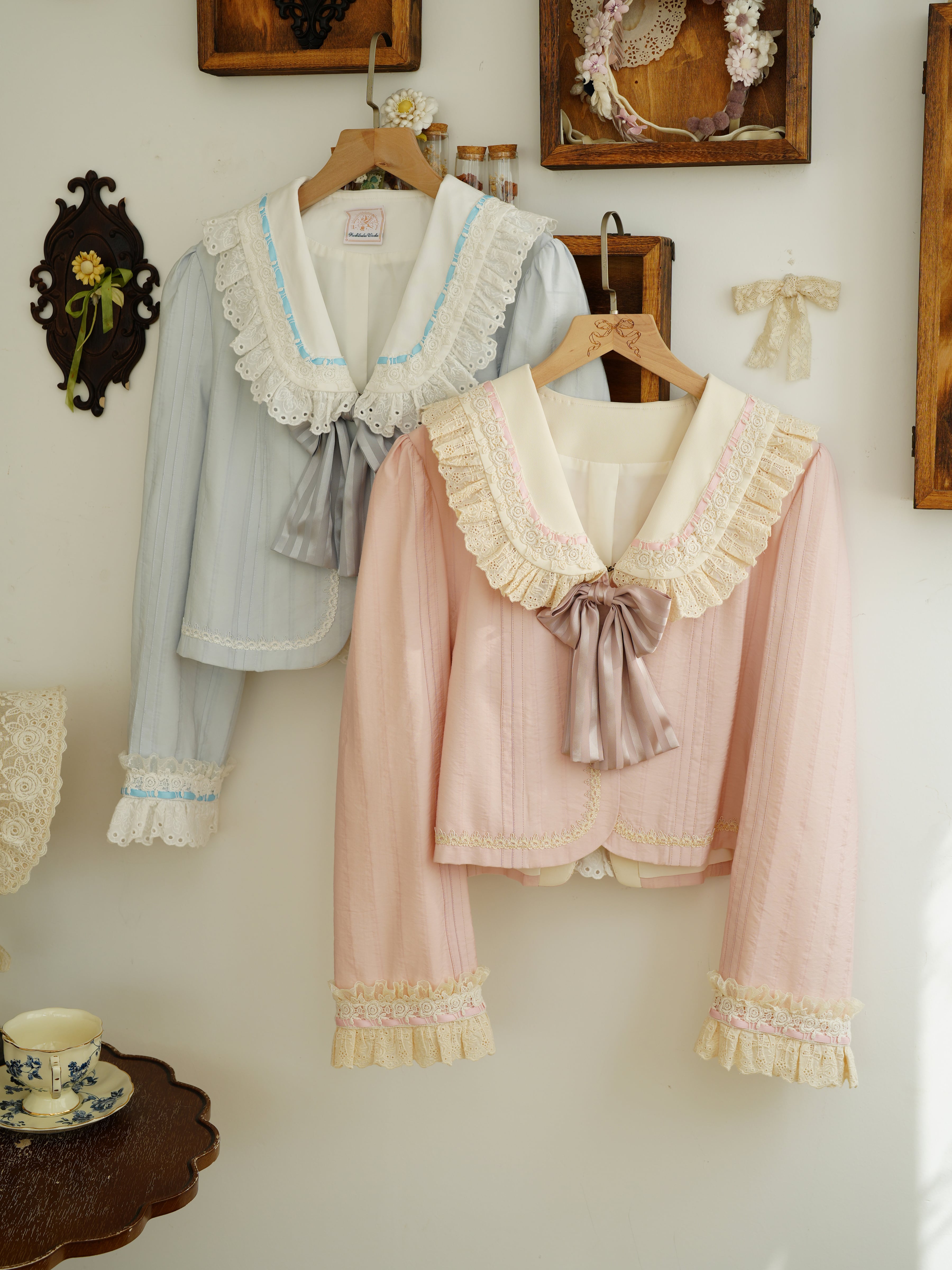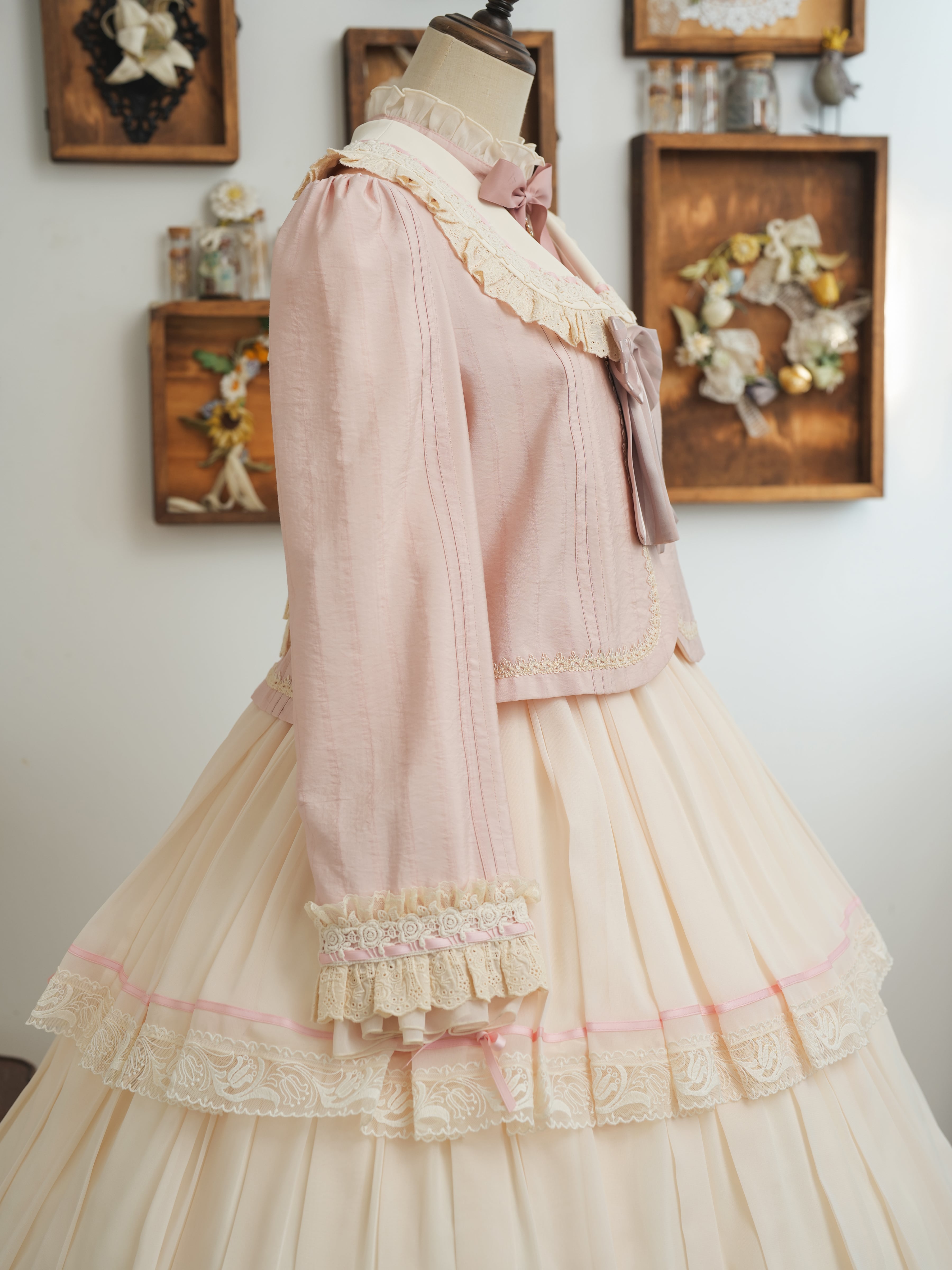 大きく開いた襟には薔薇柄のブレードをはわせ、より華やか。インナーのリボンやジャボタイも映えるデザインとなっております。