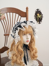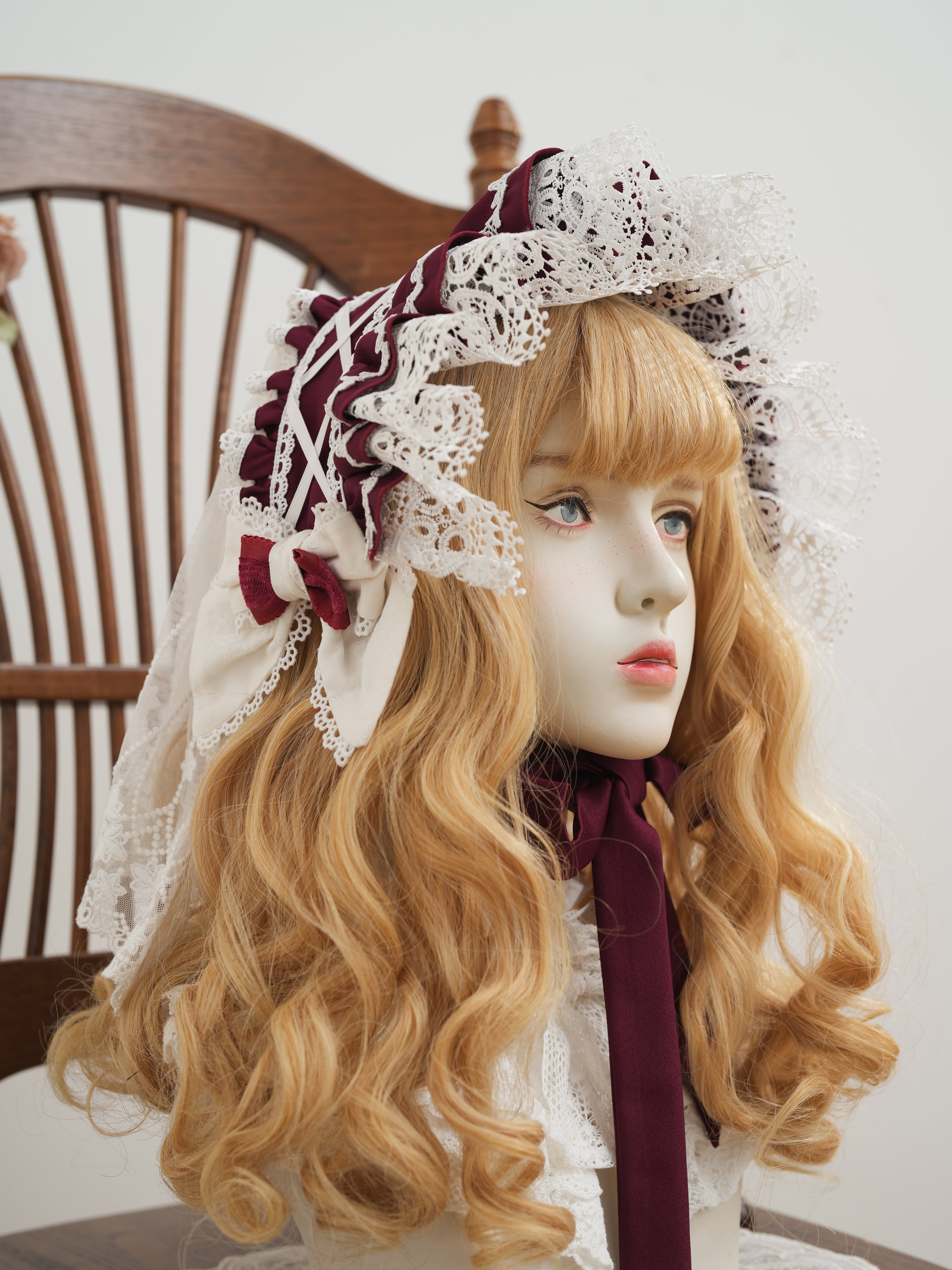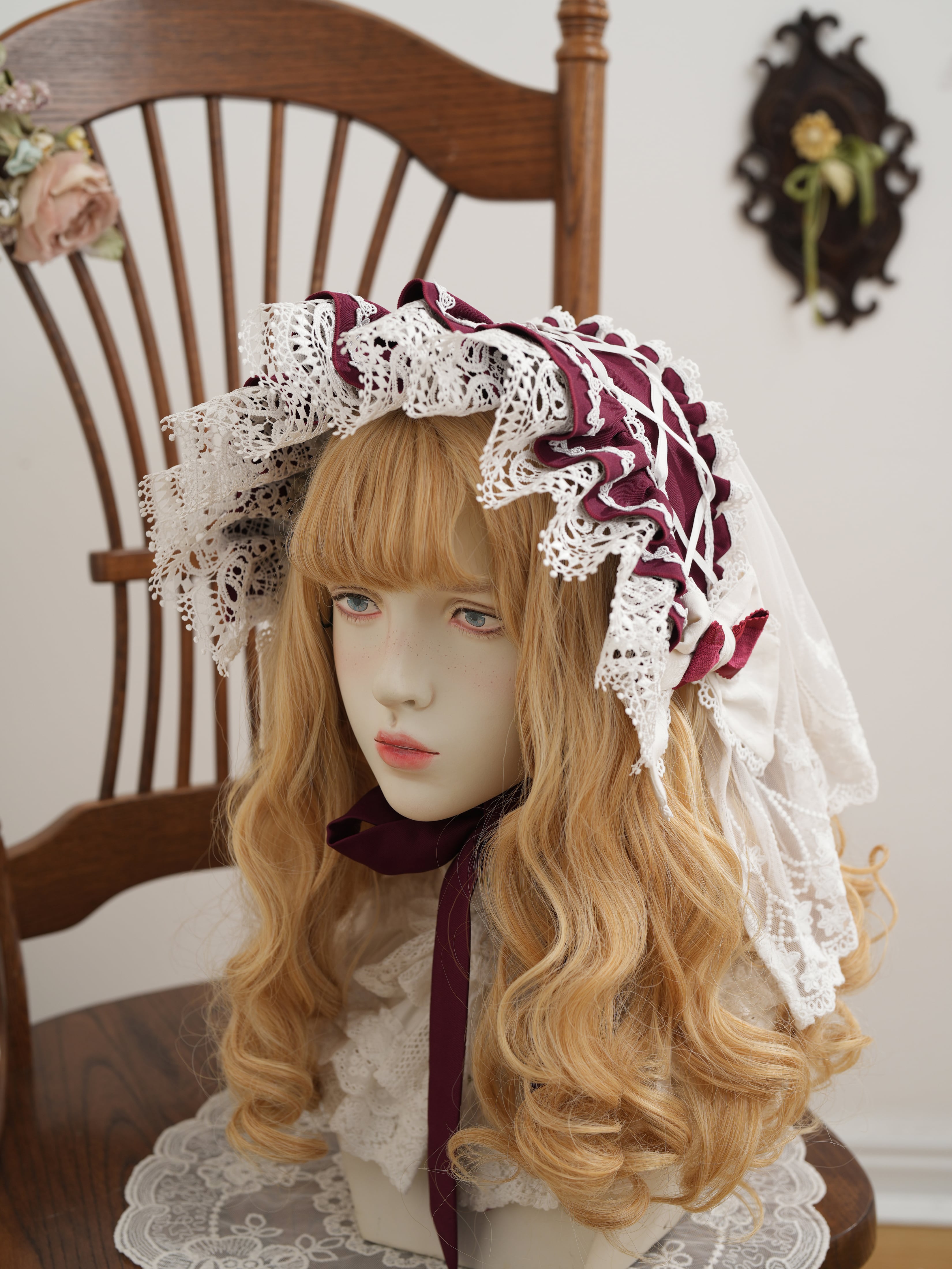 深みのあるカラーにホワイトレースを重ねた、クラシカルなボンネットが登場。