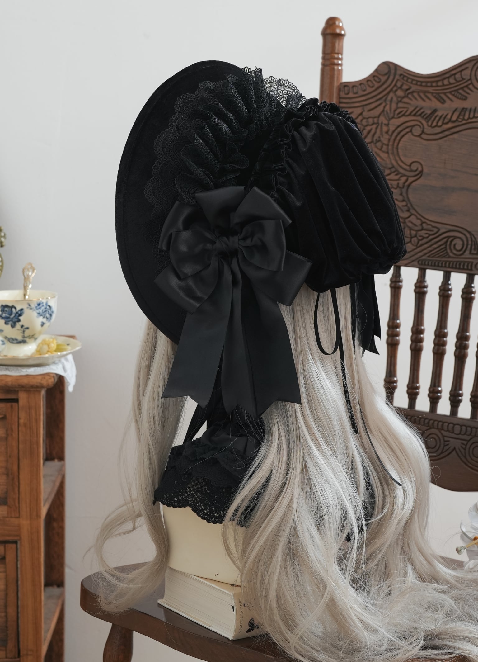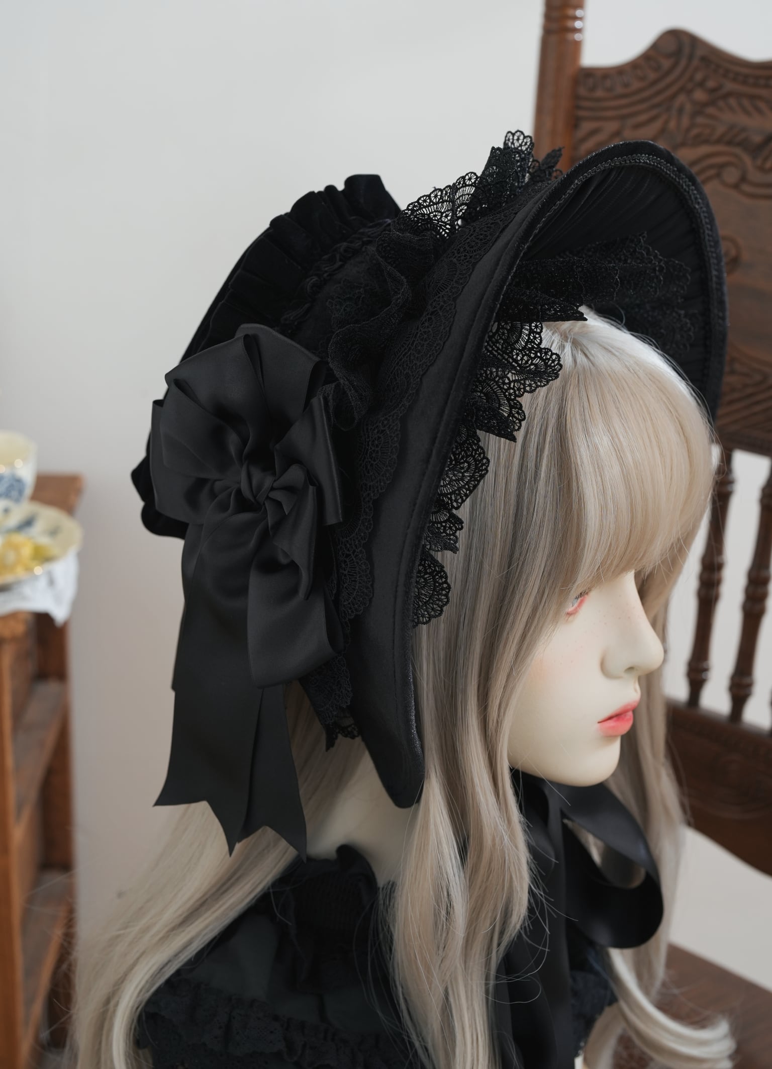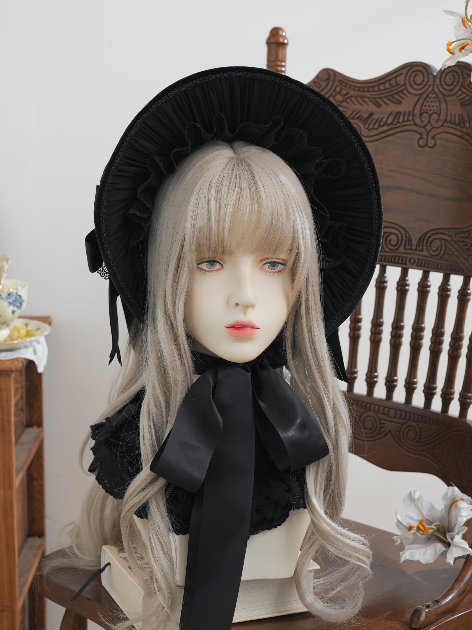 内側にもフリルがたっぷり寄せてあり、お顔まわりを華やかにしてくれます。