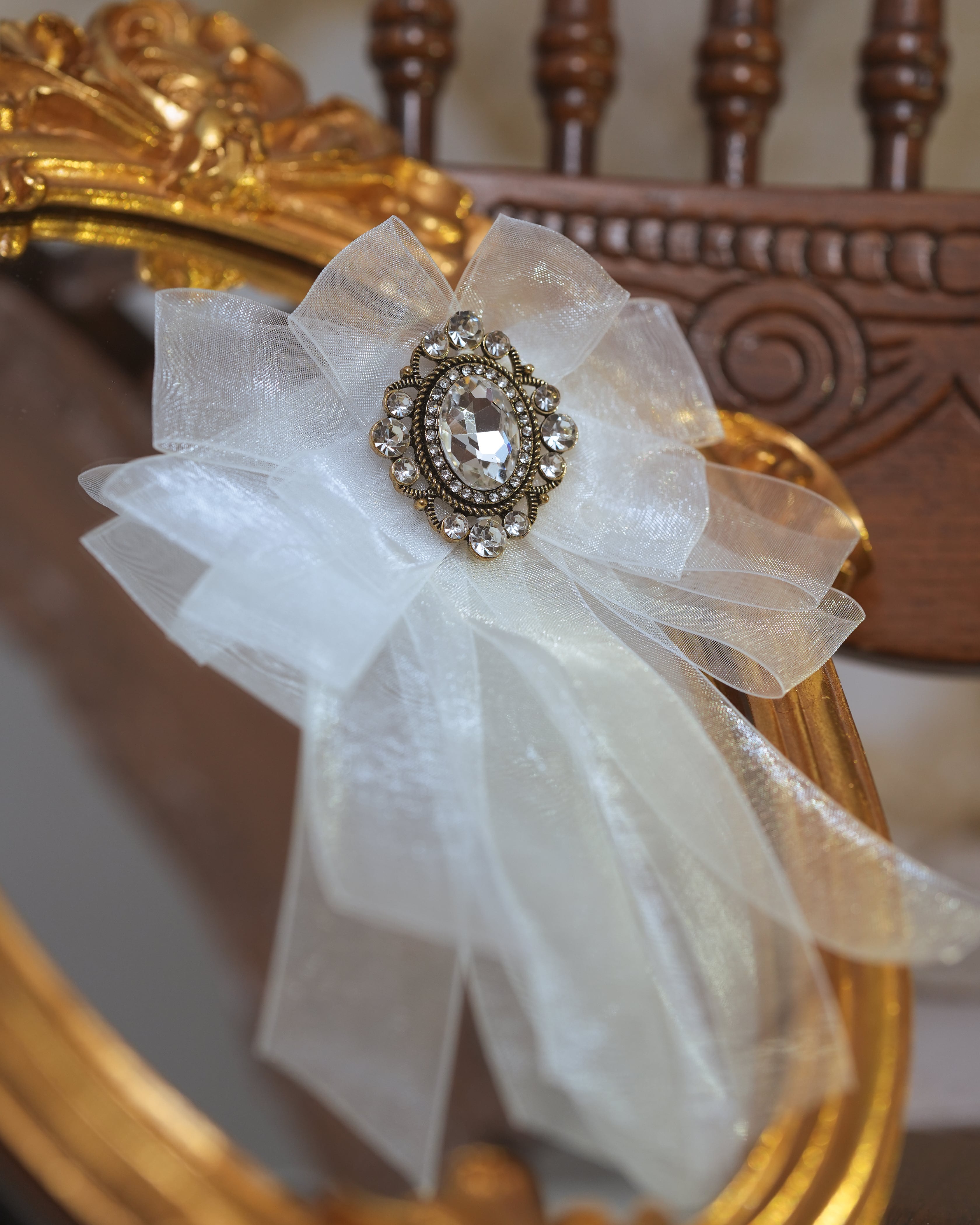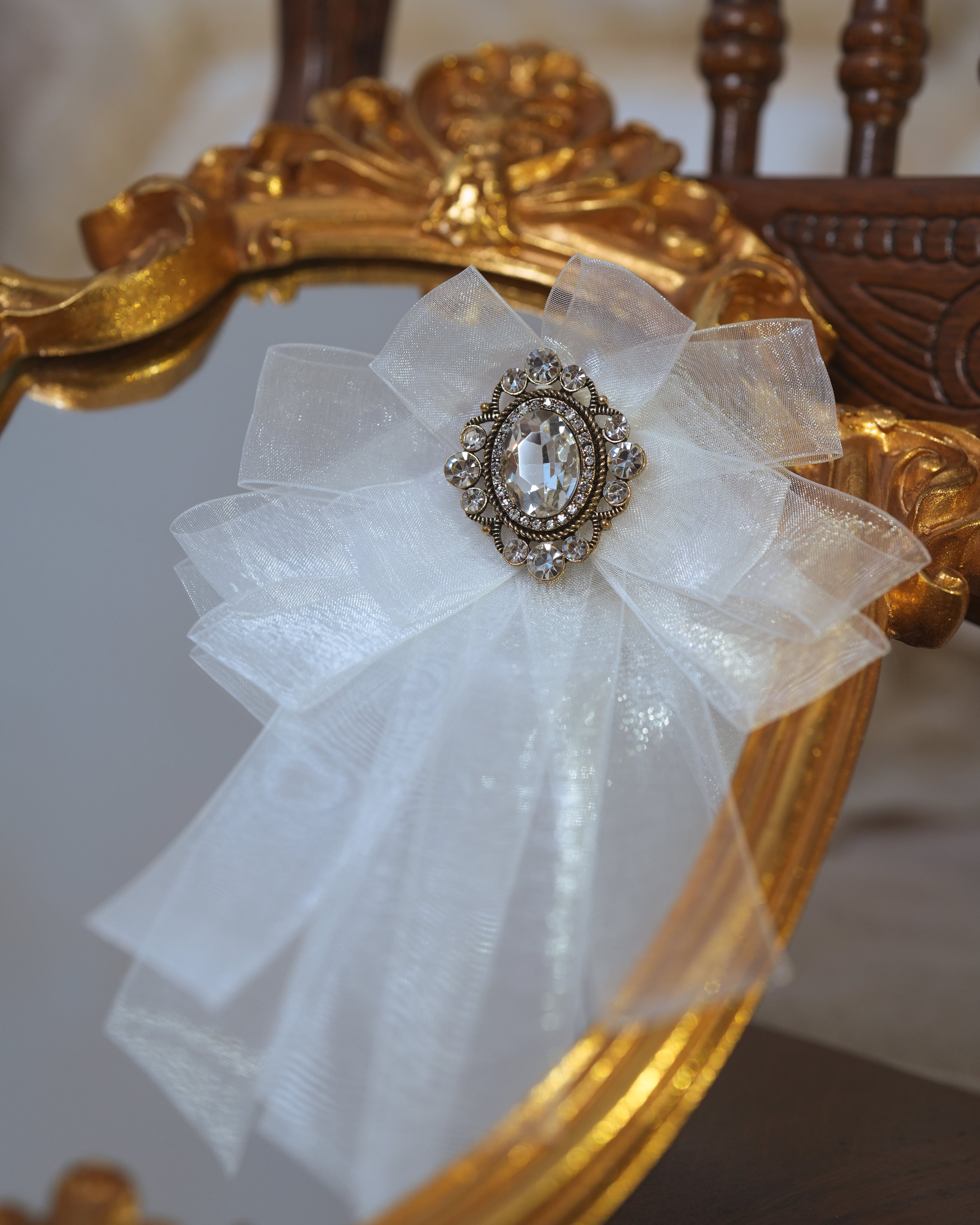 キラキラと輝く雫のようなビジューと透け感のあるオーガンジーがときめきを演出。