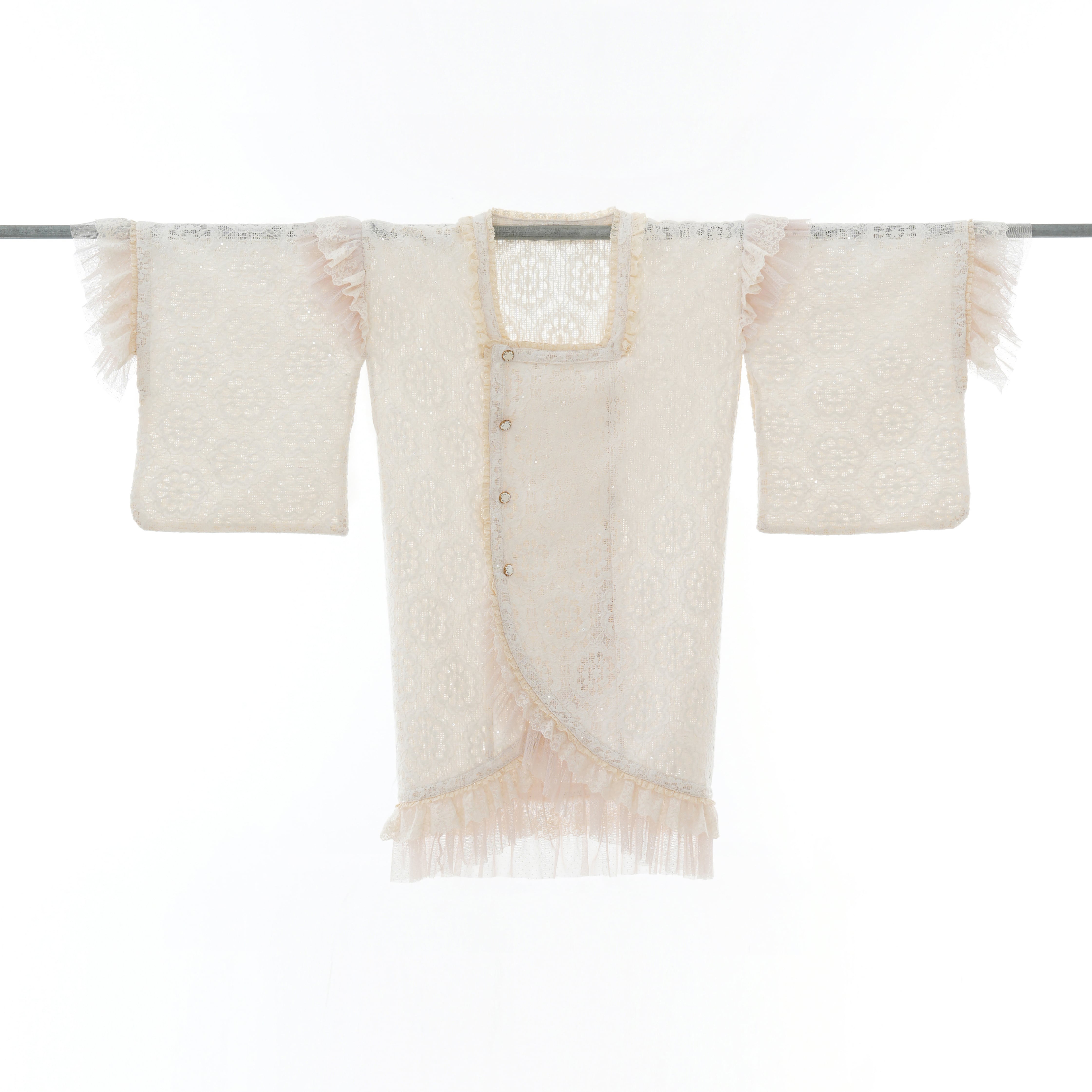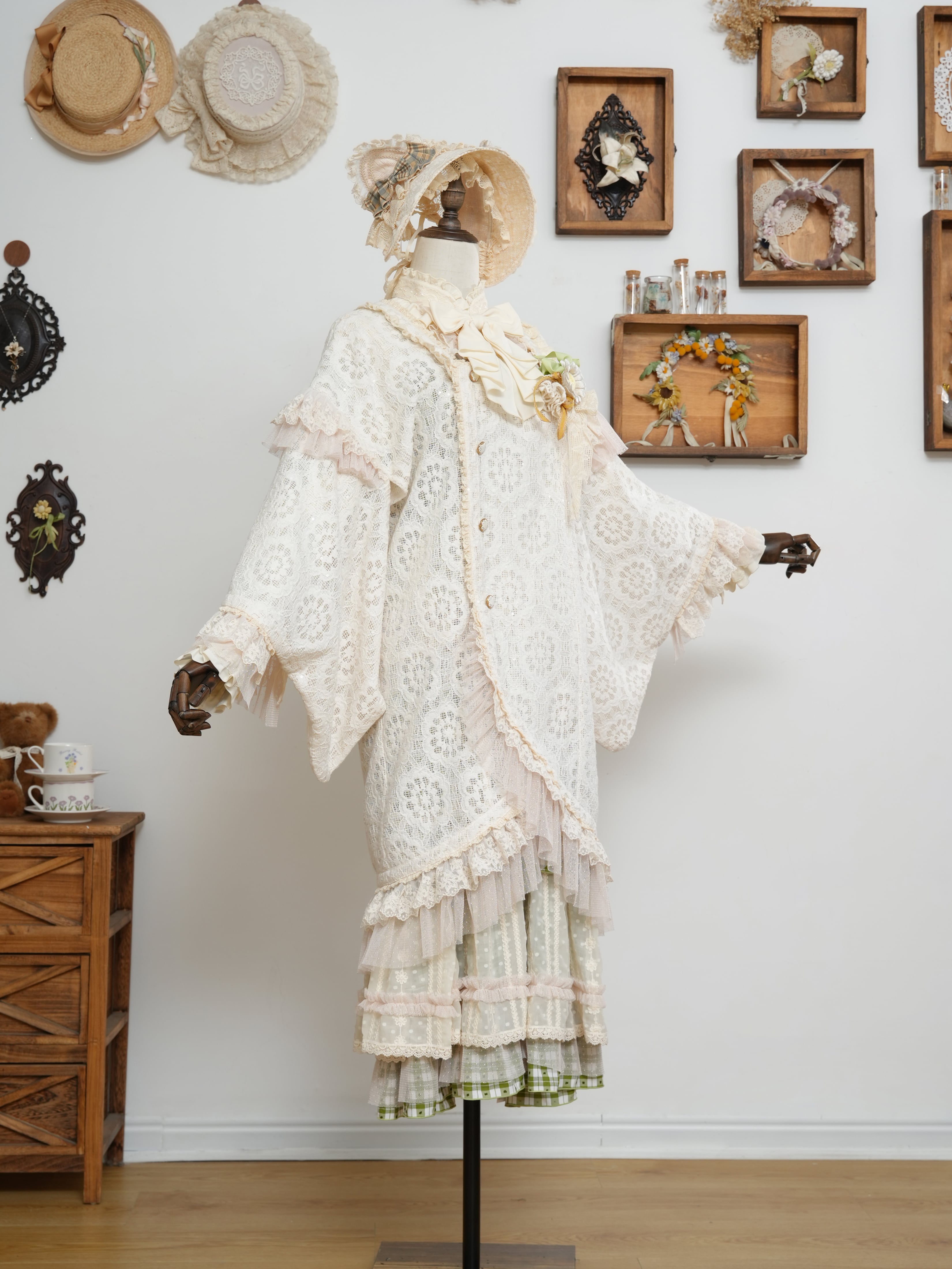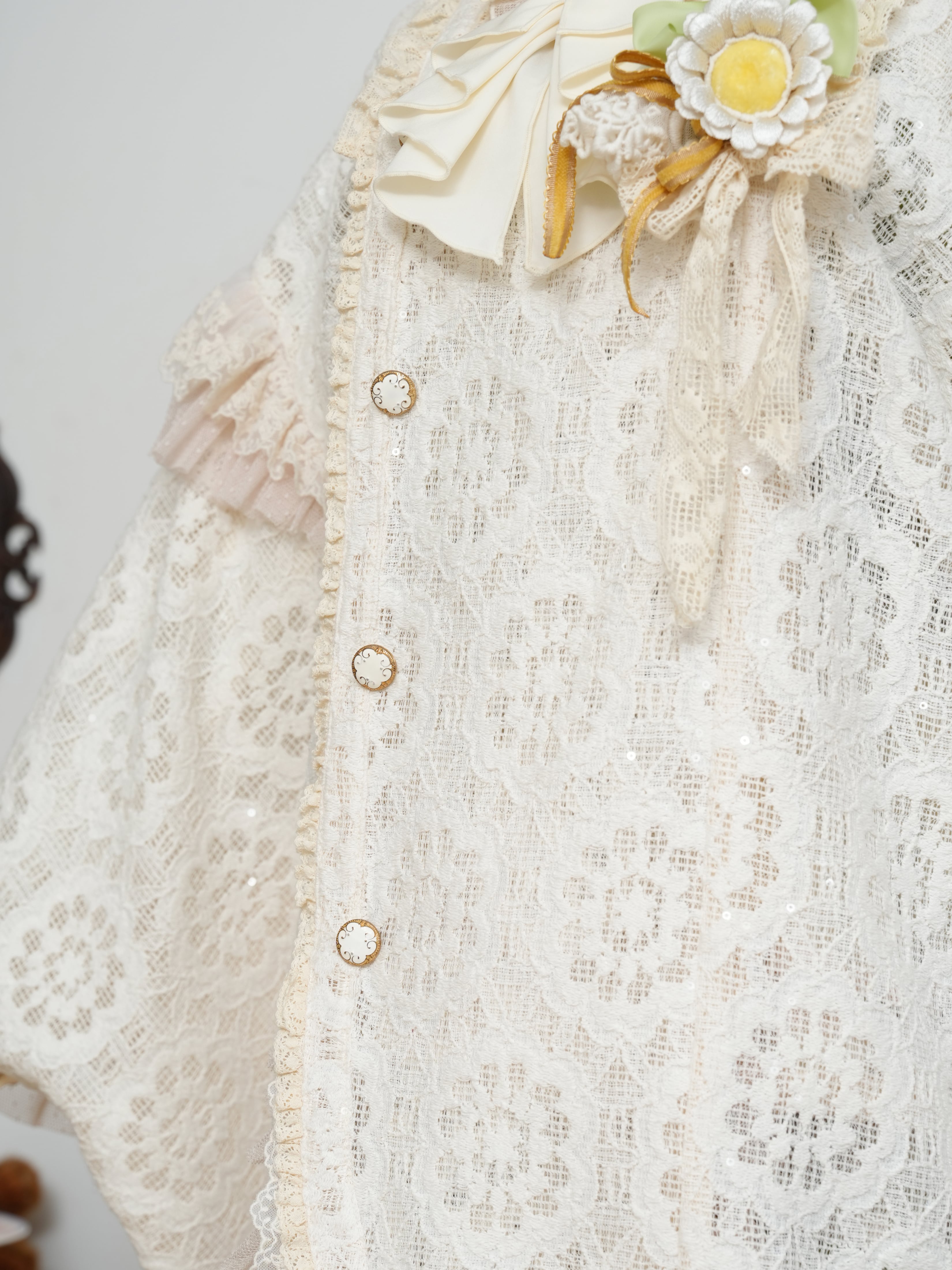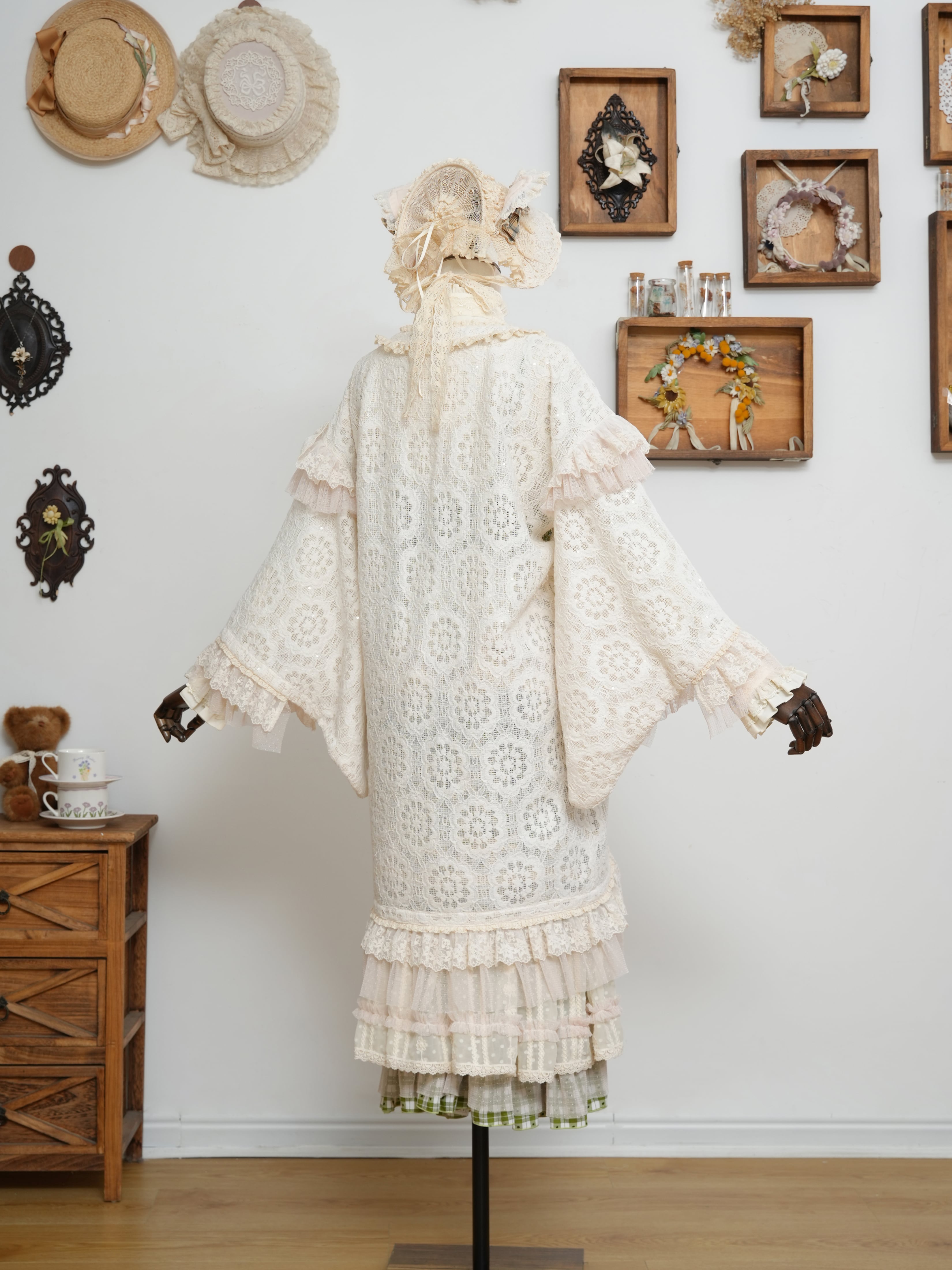 一面に広がるレースの花模様がレトロな雰囲気のレース羽織りが登場。