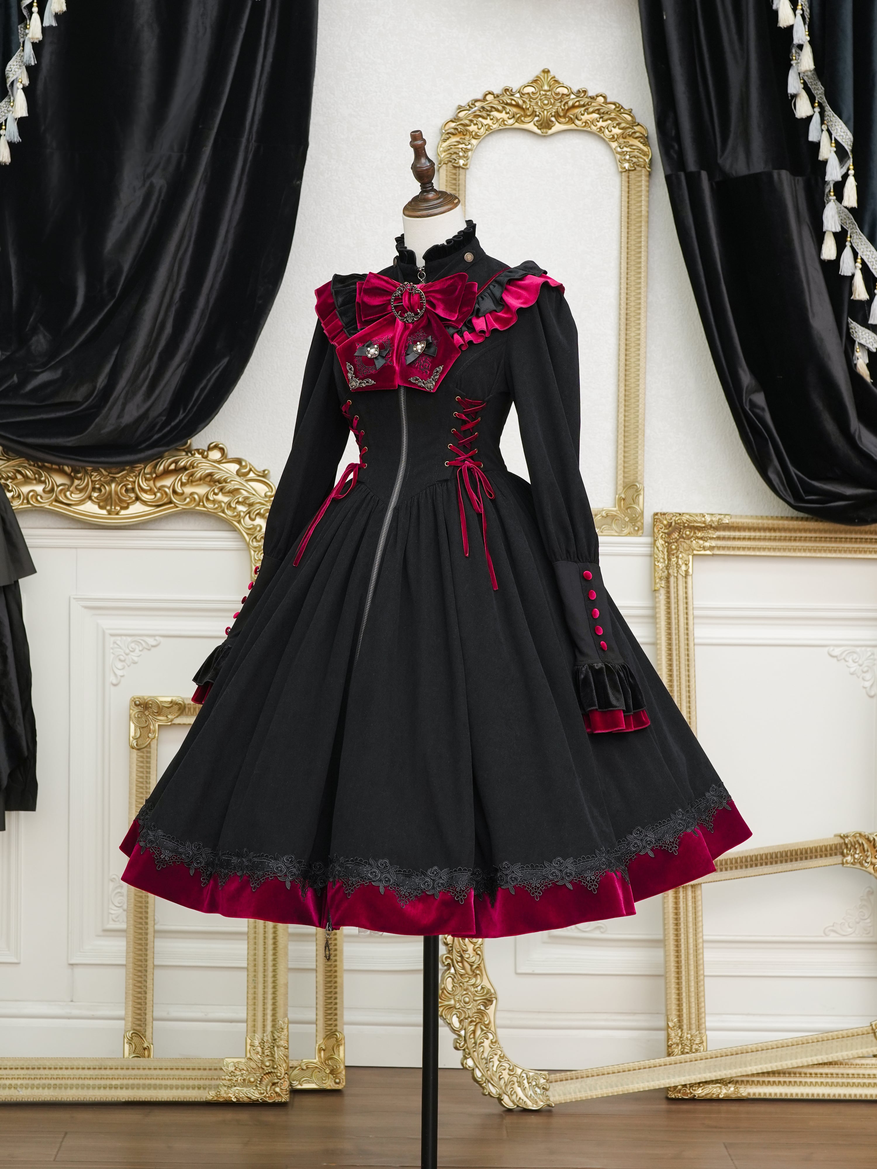 フロントが大きく開いた立体的な切り替えで、お手持ちのスカートを調和して理想のゴシックコーデに。