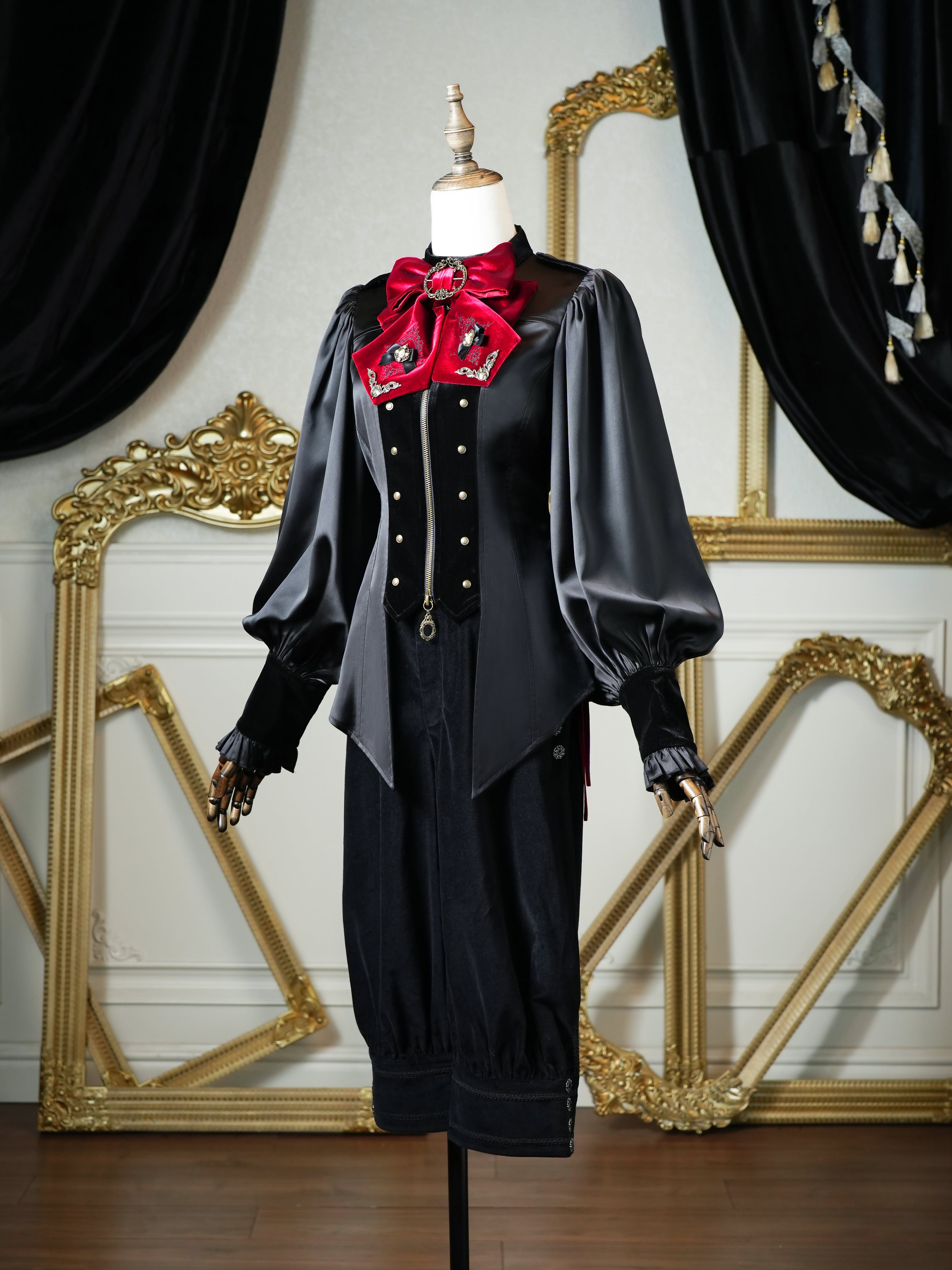 胸元のリボンタイがクラシカルなアクセントを添え、