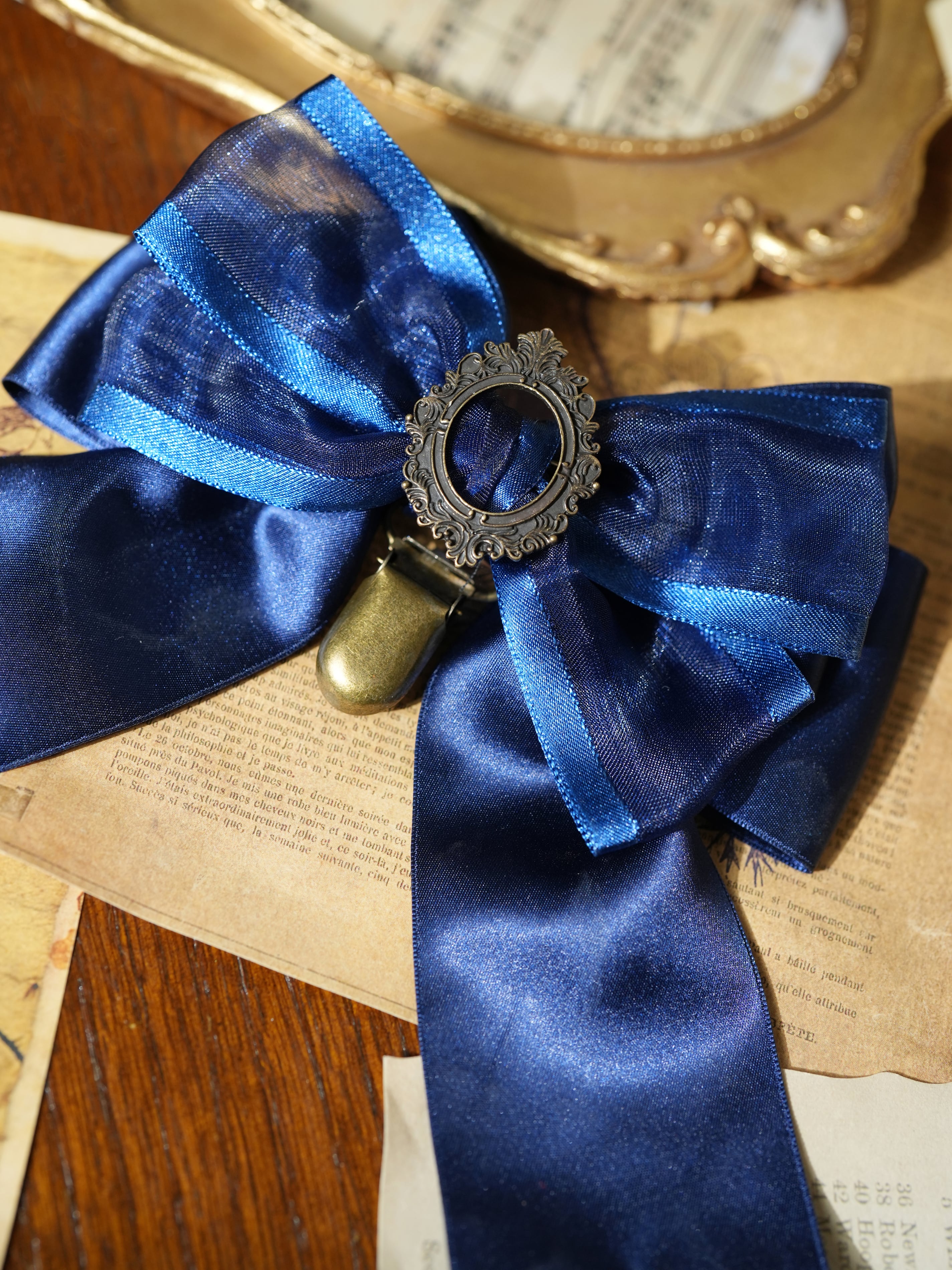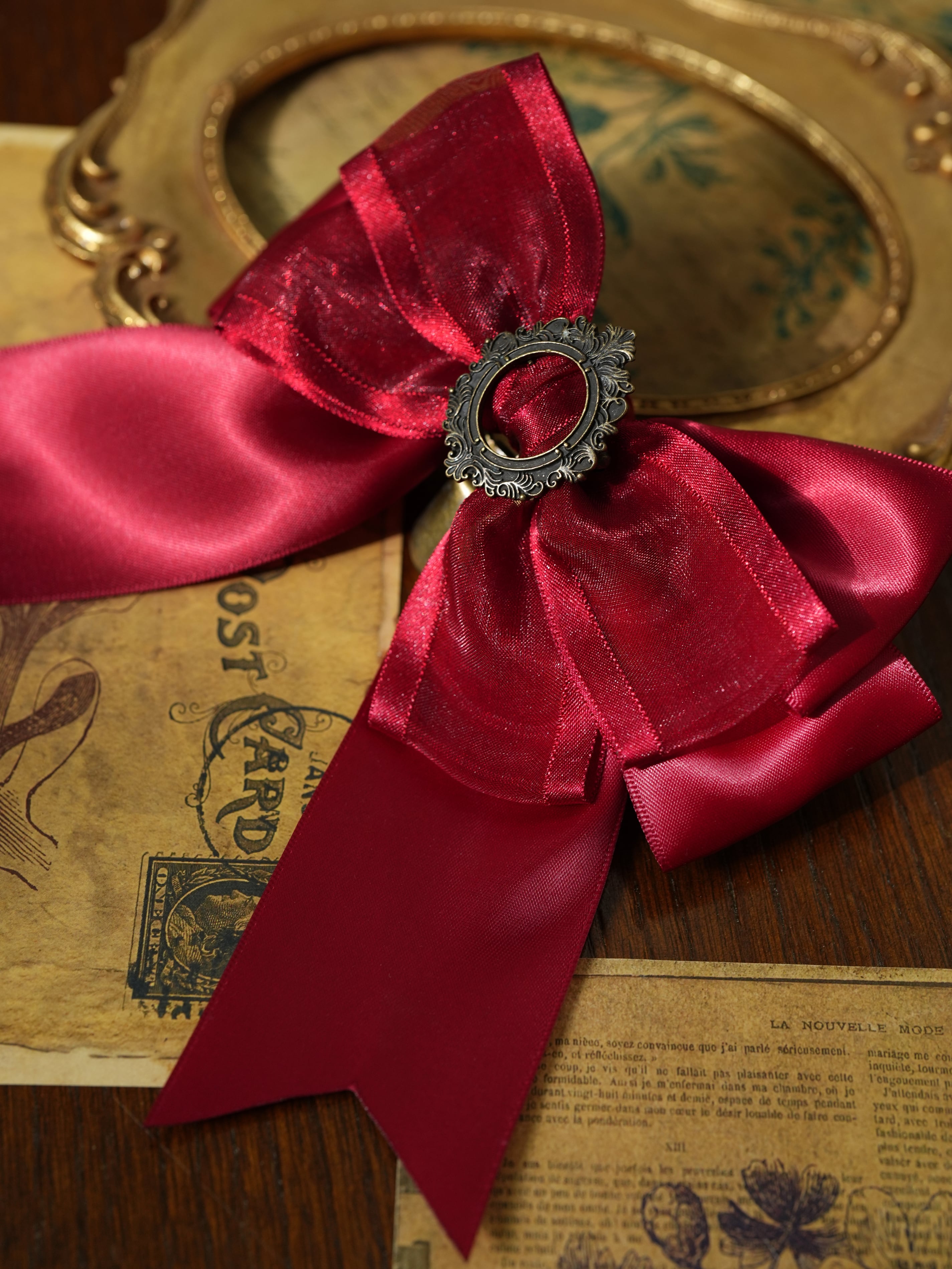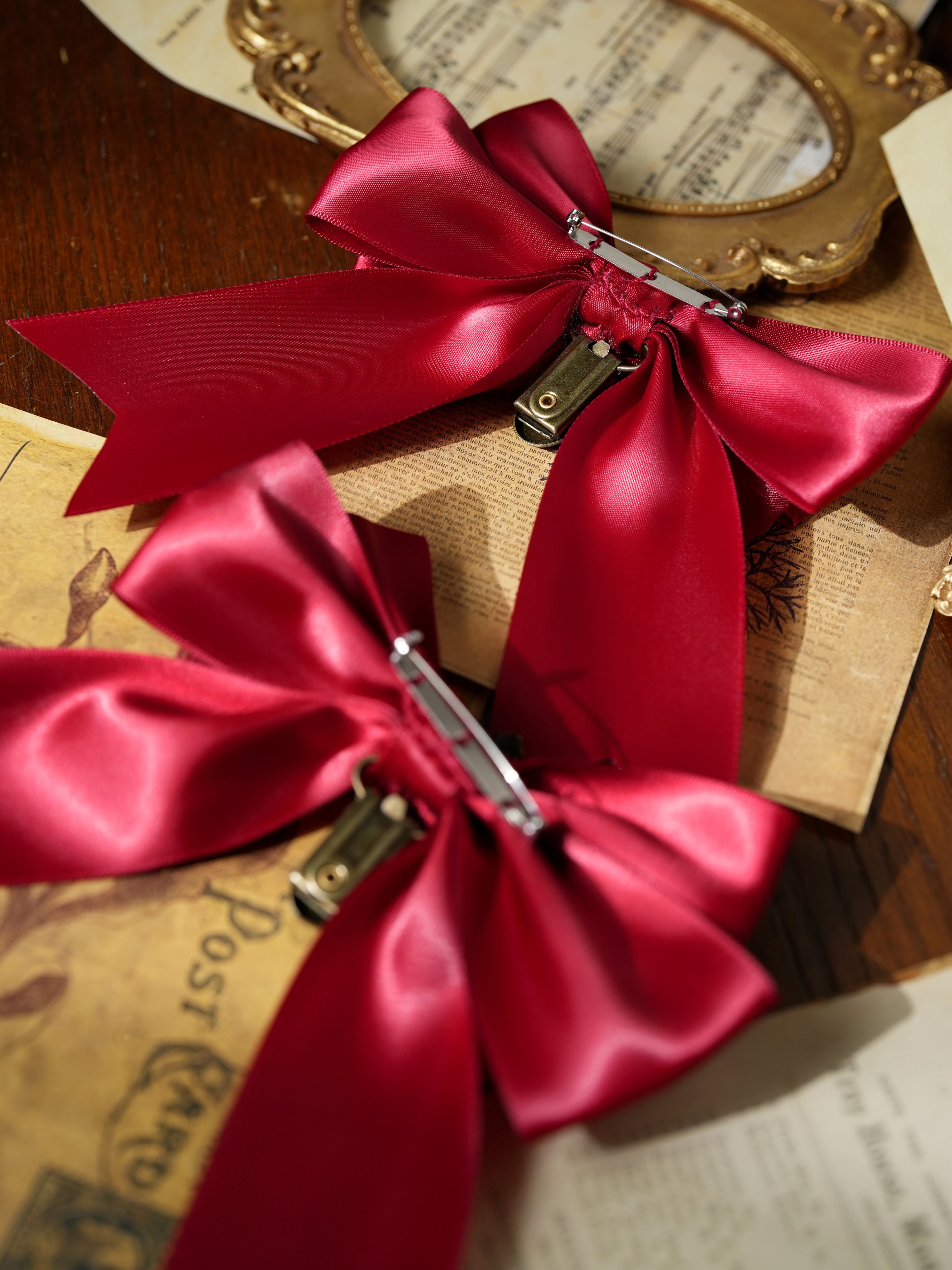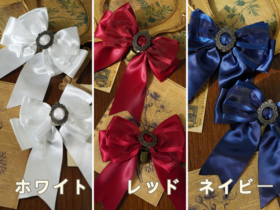 艶のあるリボンに、アンティーク調のフレームモチーフをあしらったリボンクリップセット。