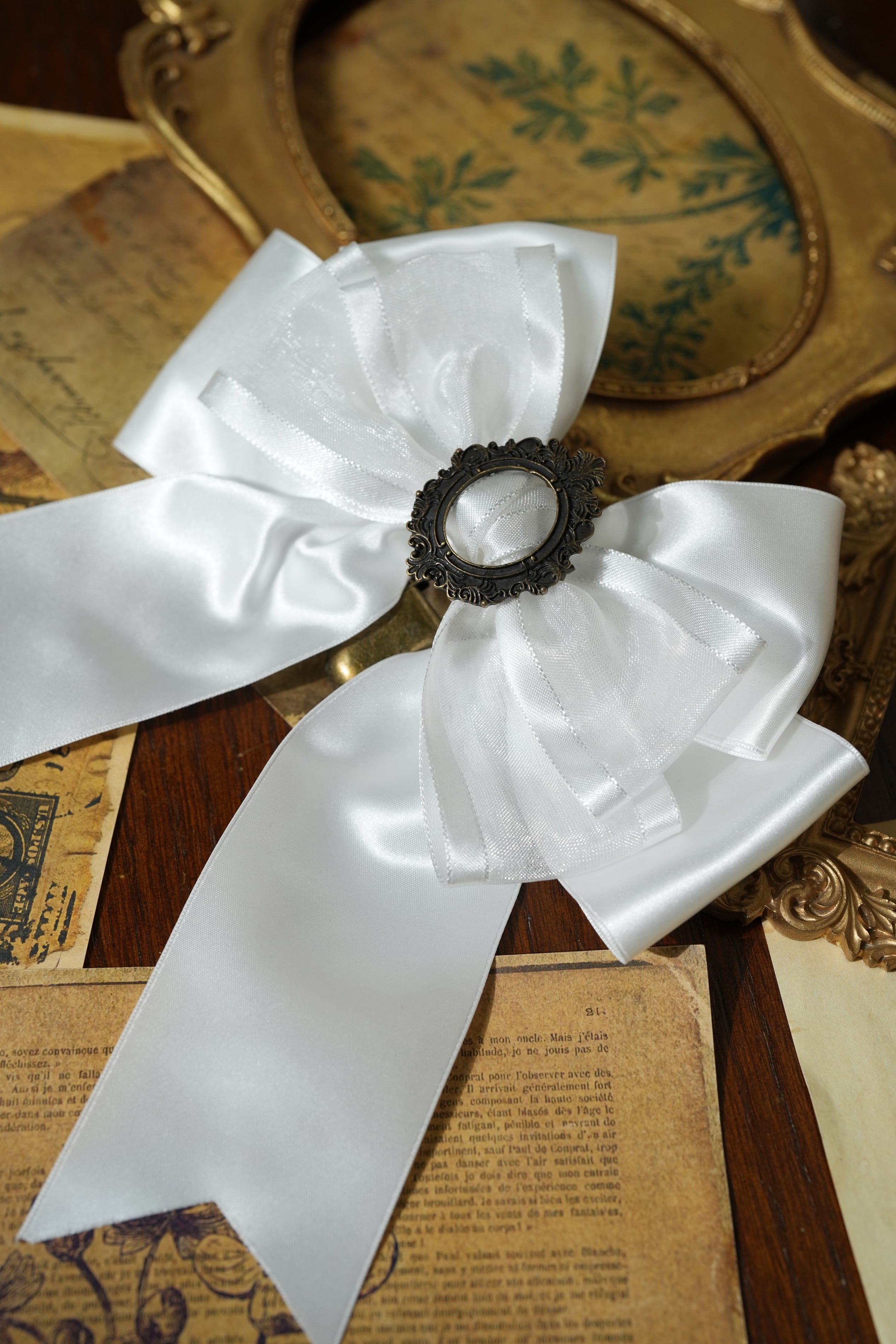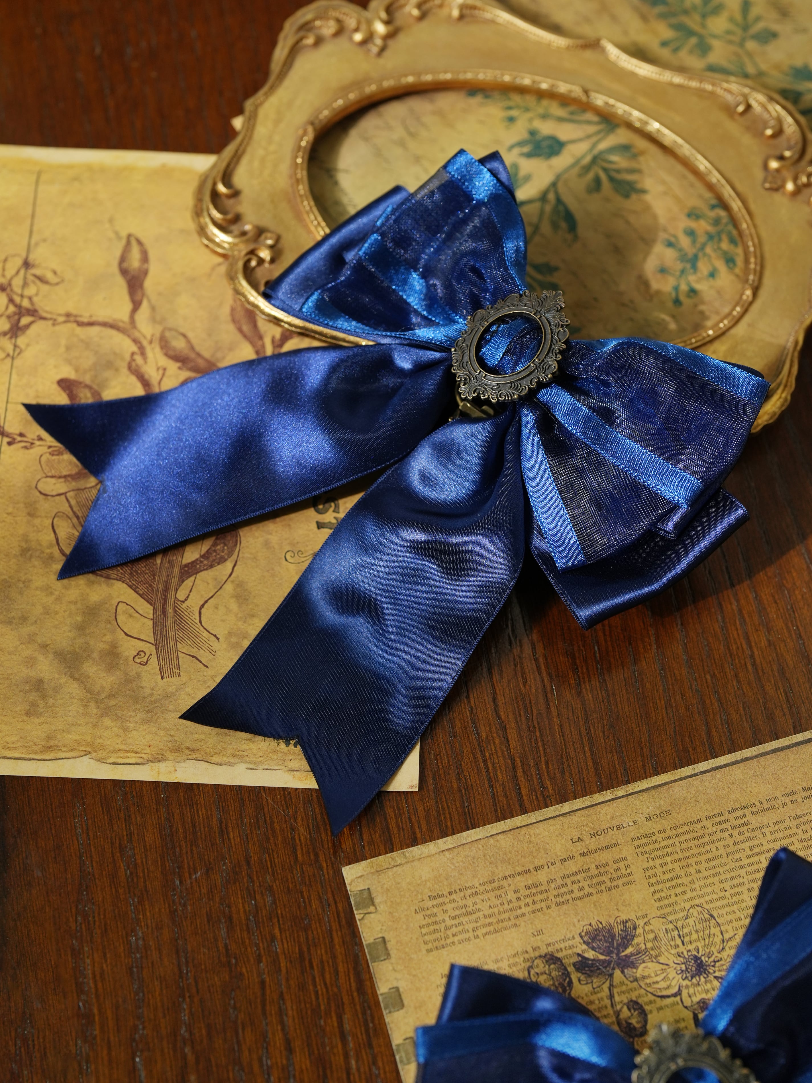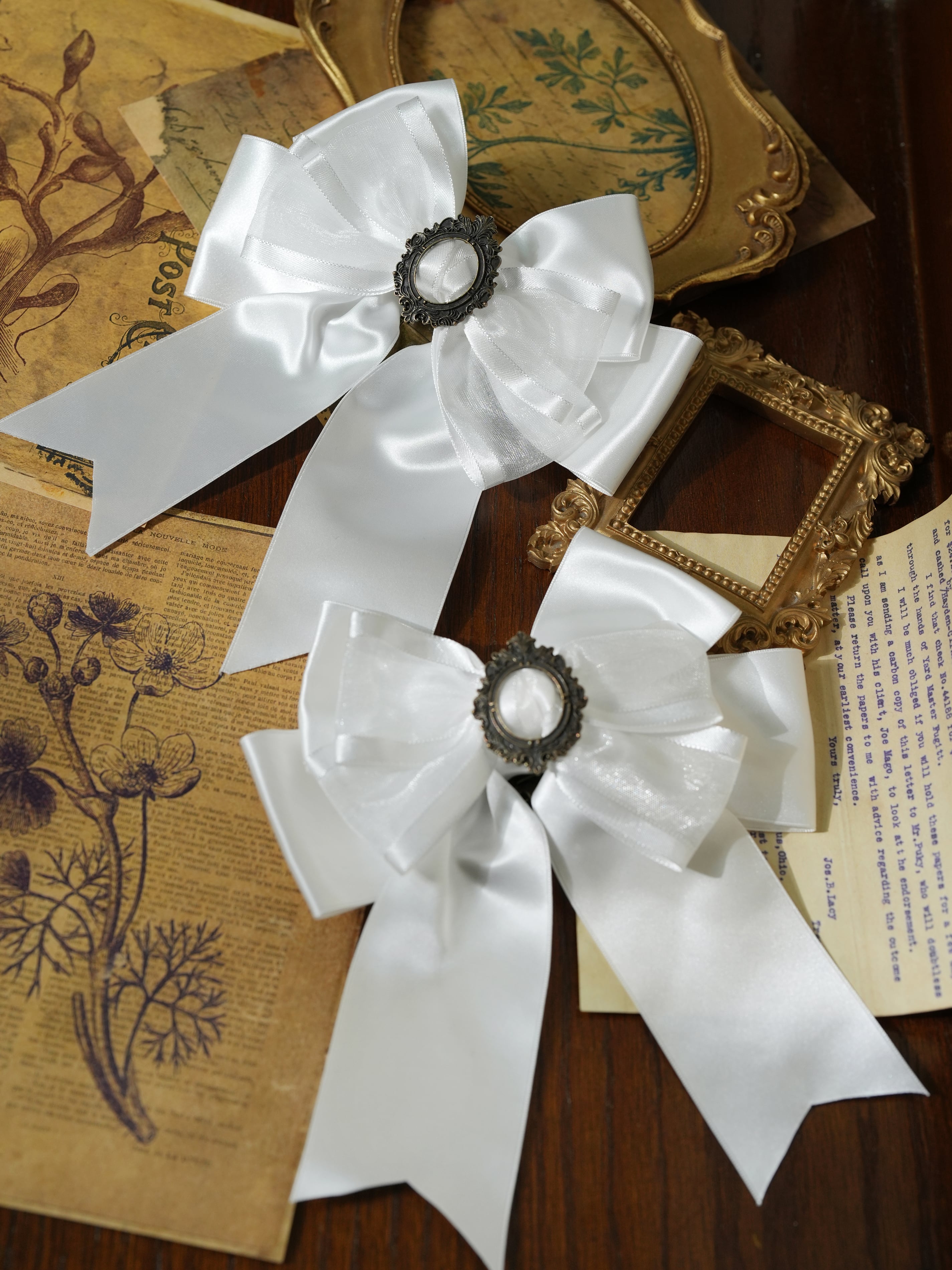 艶のあるリボンに、アンティーク調のフレームモチーフをあしらったリボンクリップセット。