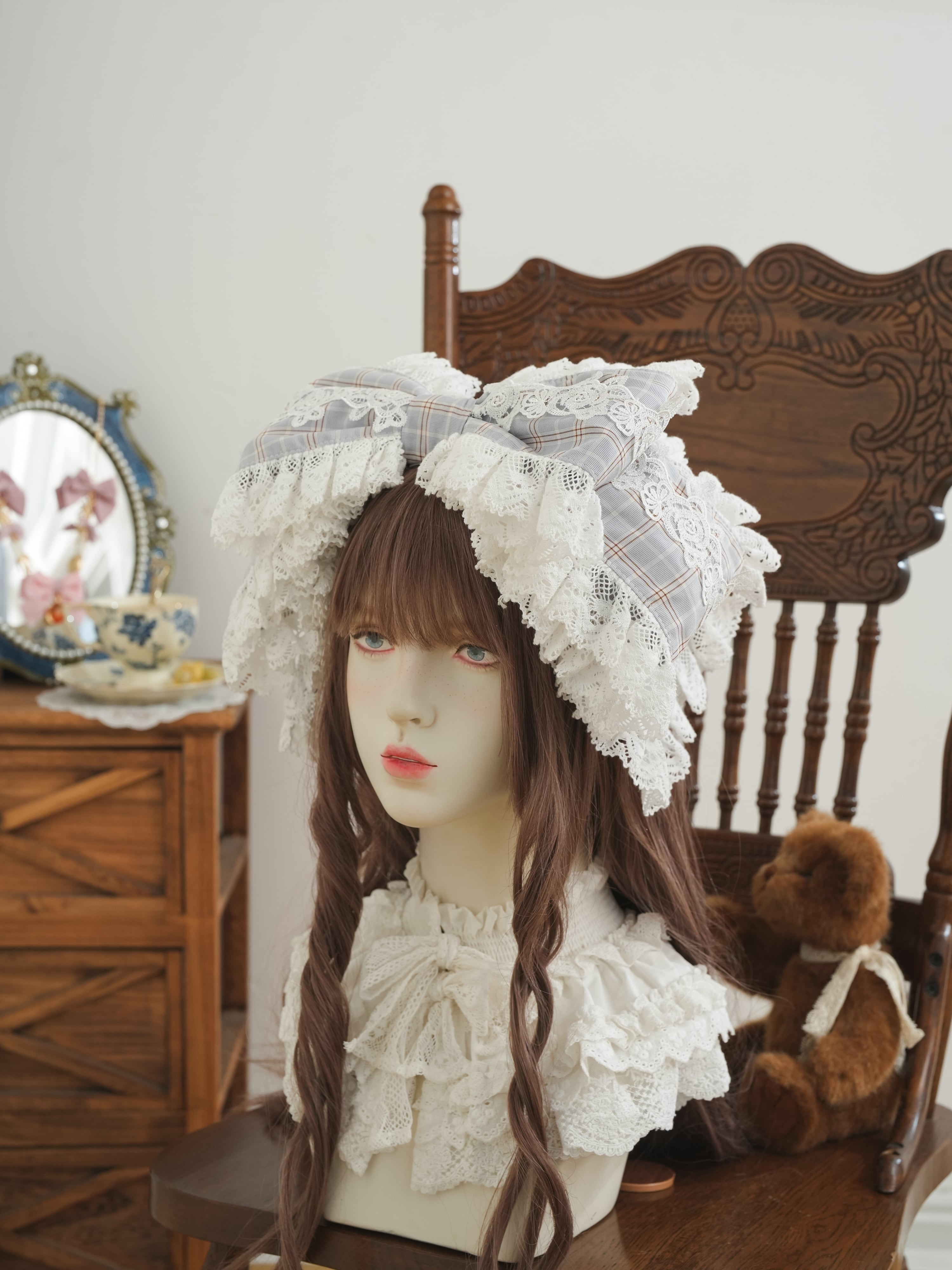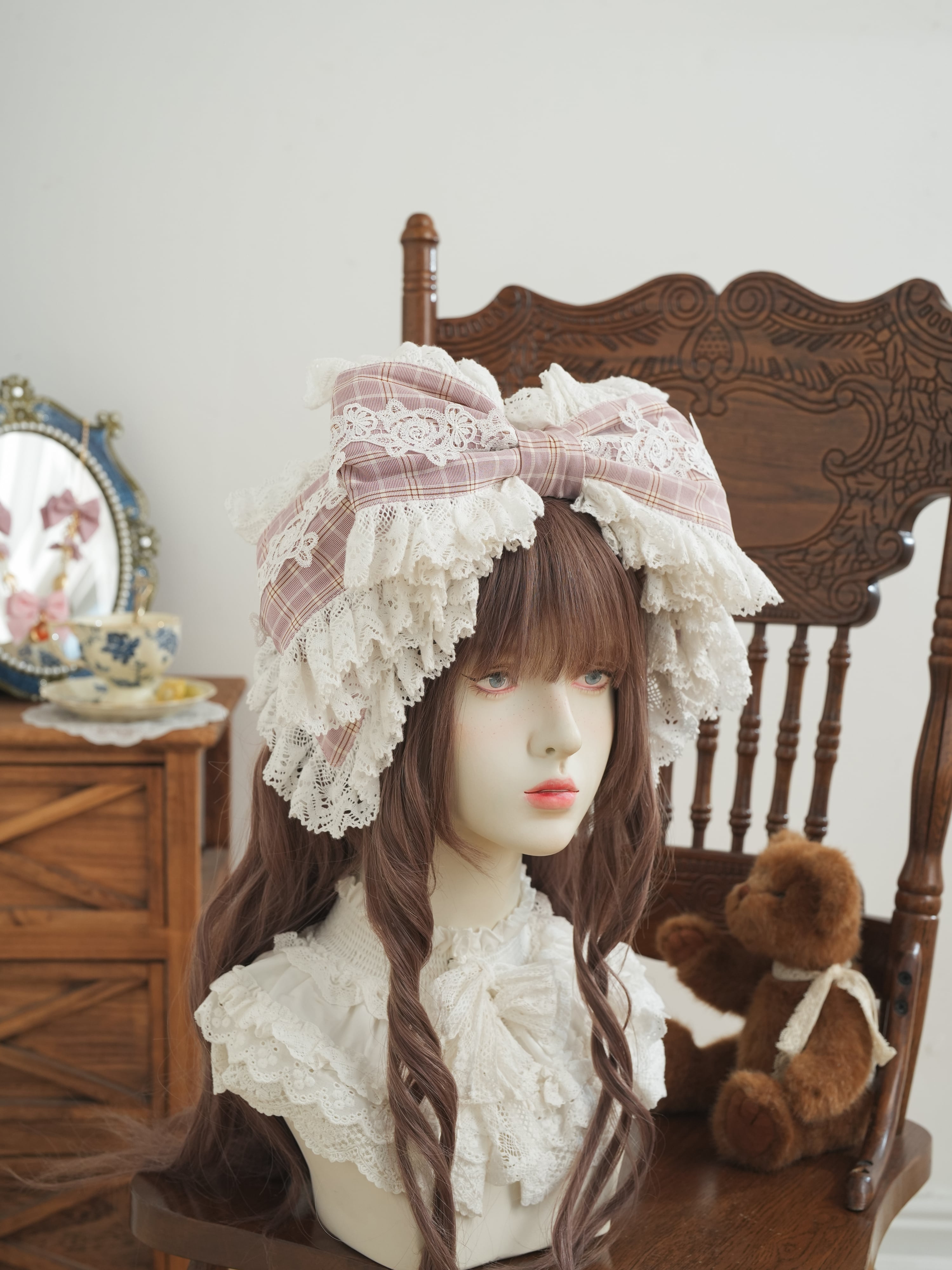 レースを贅沢にあしらった、大ぶりリボンのカチューシャ。