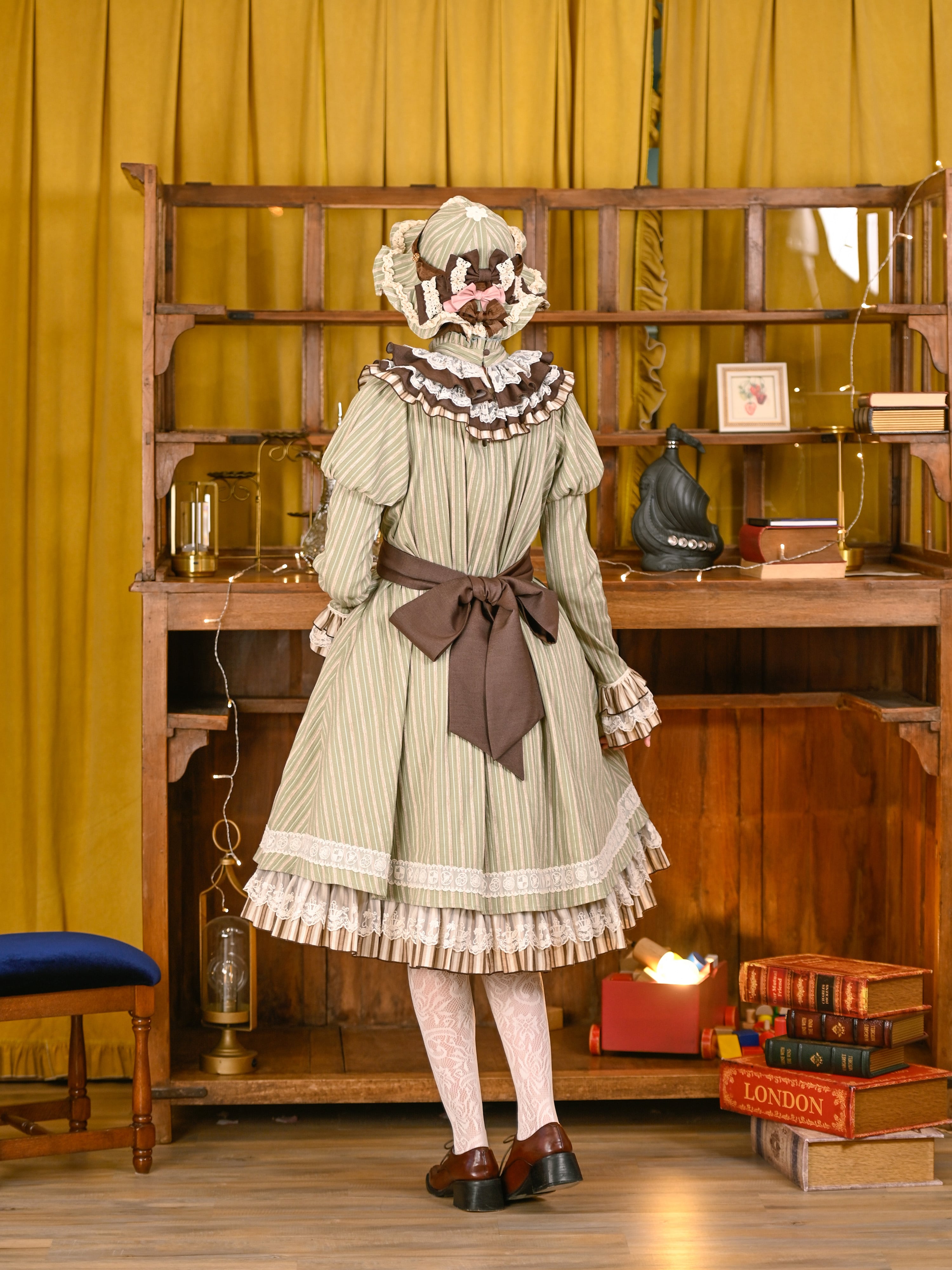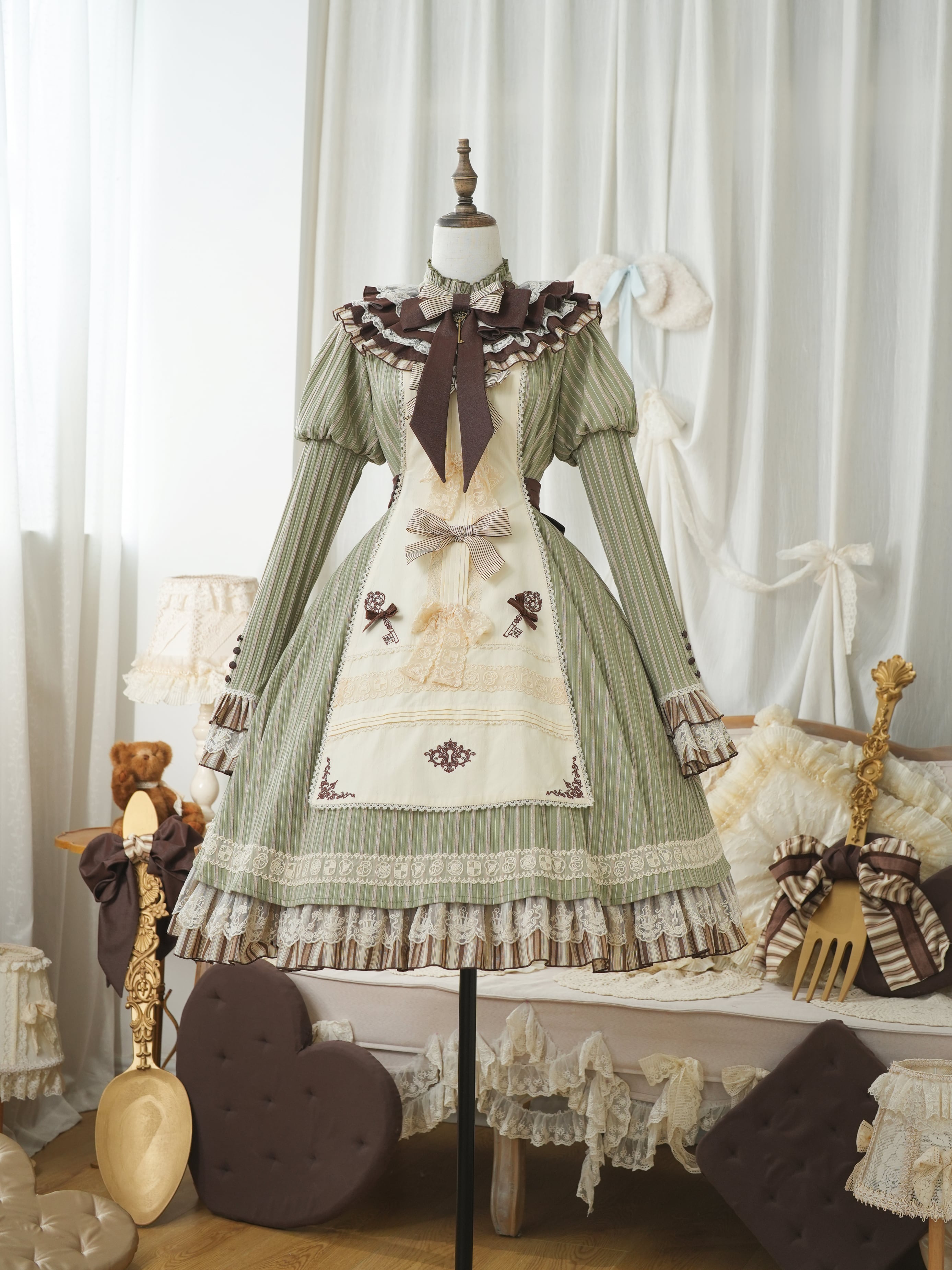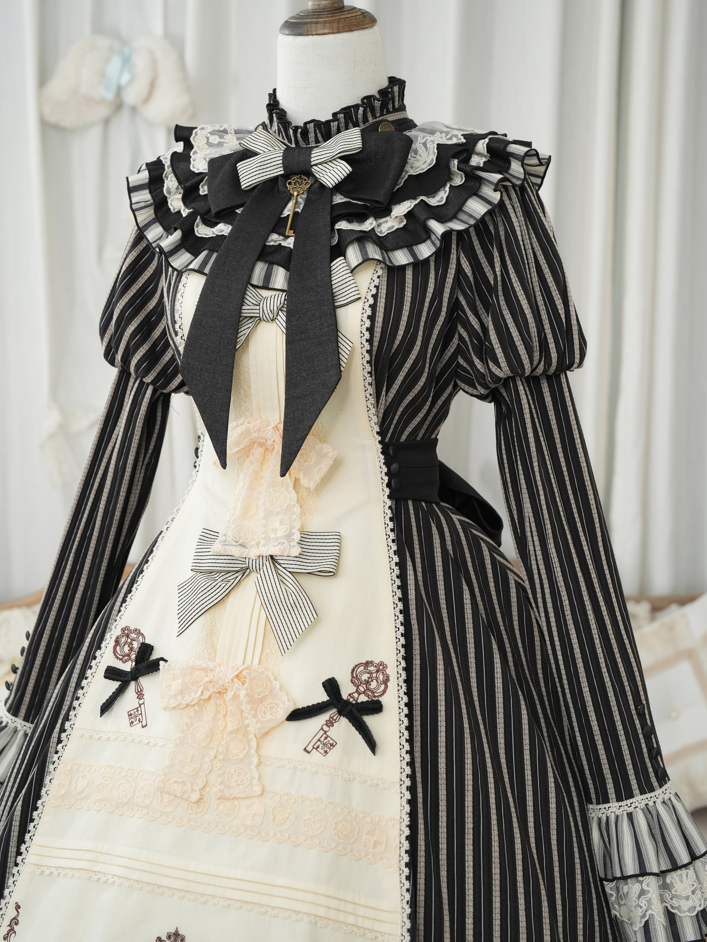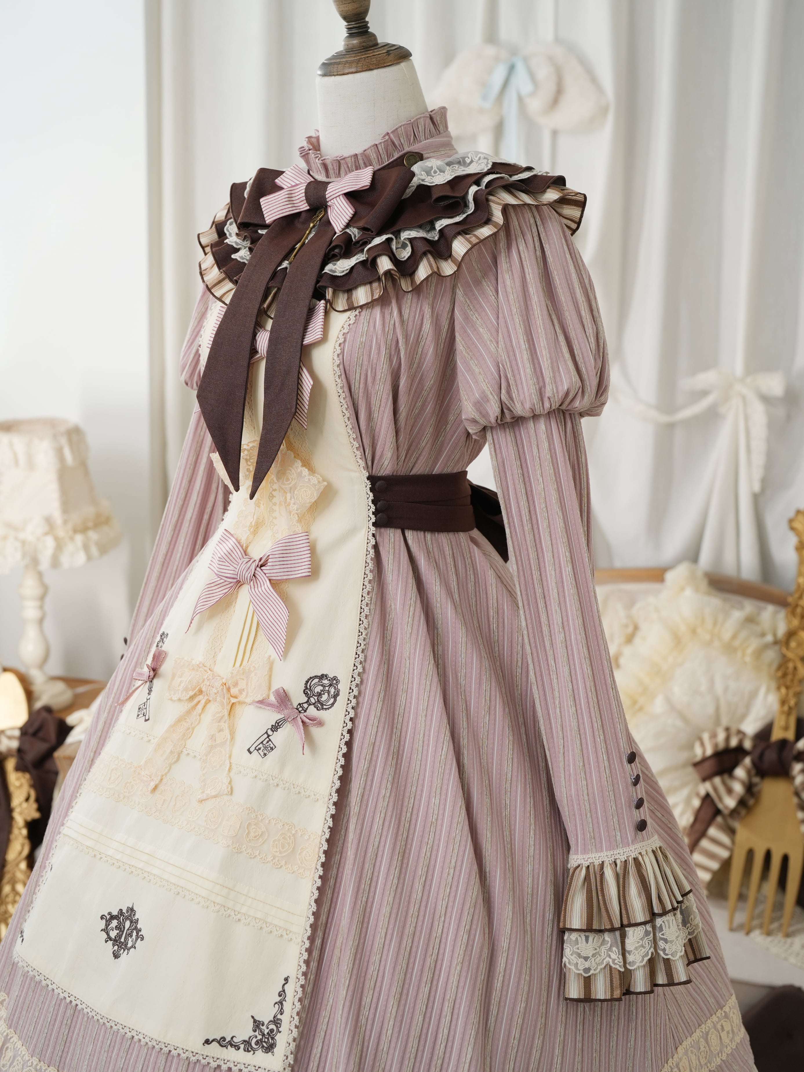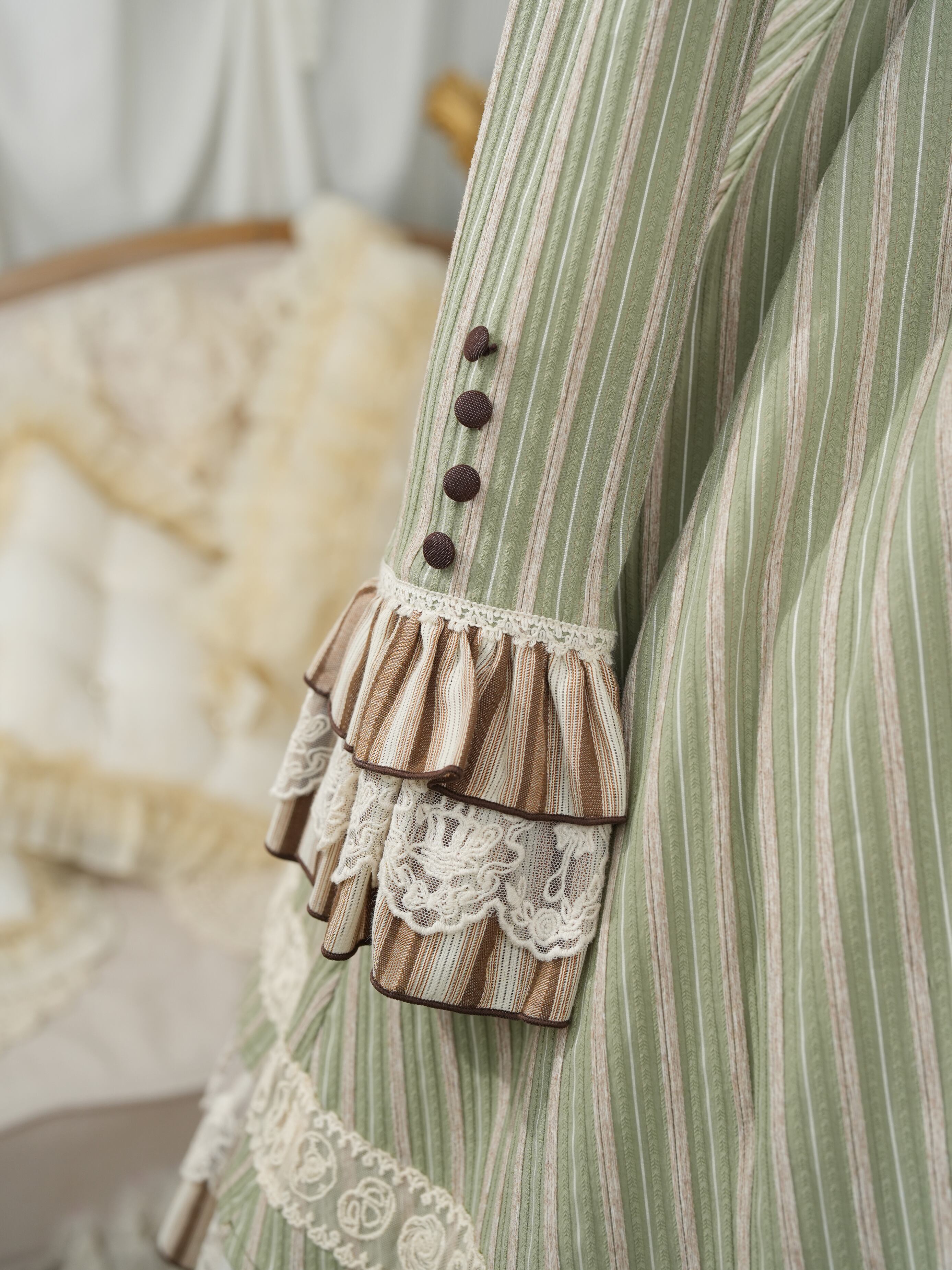 クラシカルなストライプにレースやリボンをトッピングして、