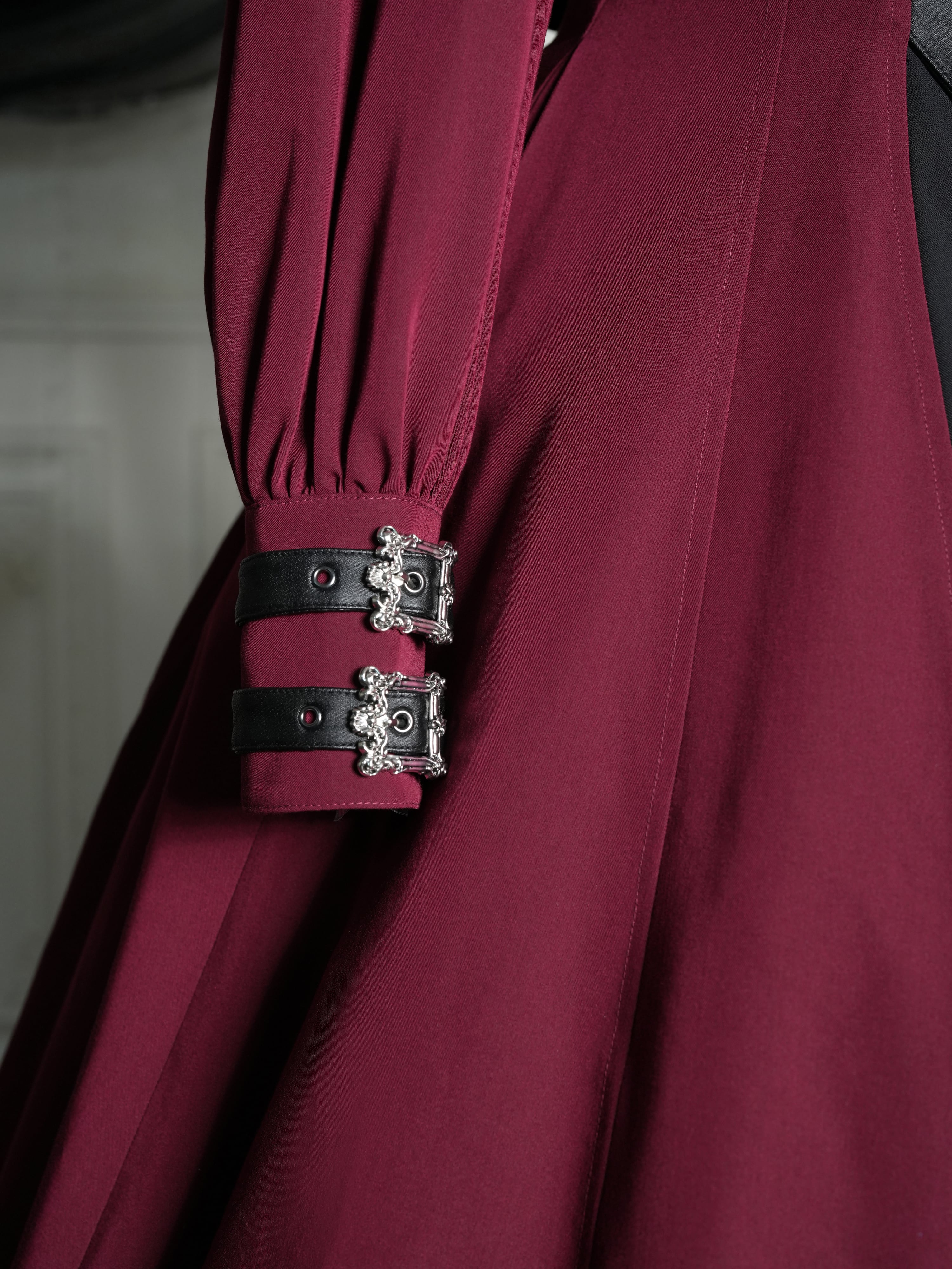 袖口のベルトの装飾がクールな印象に。