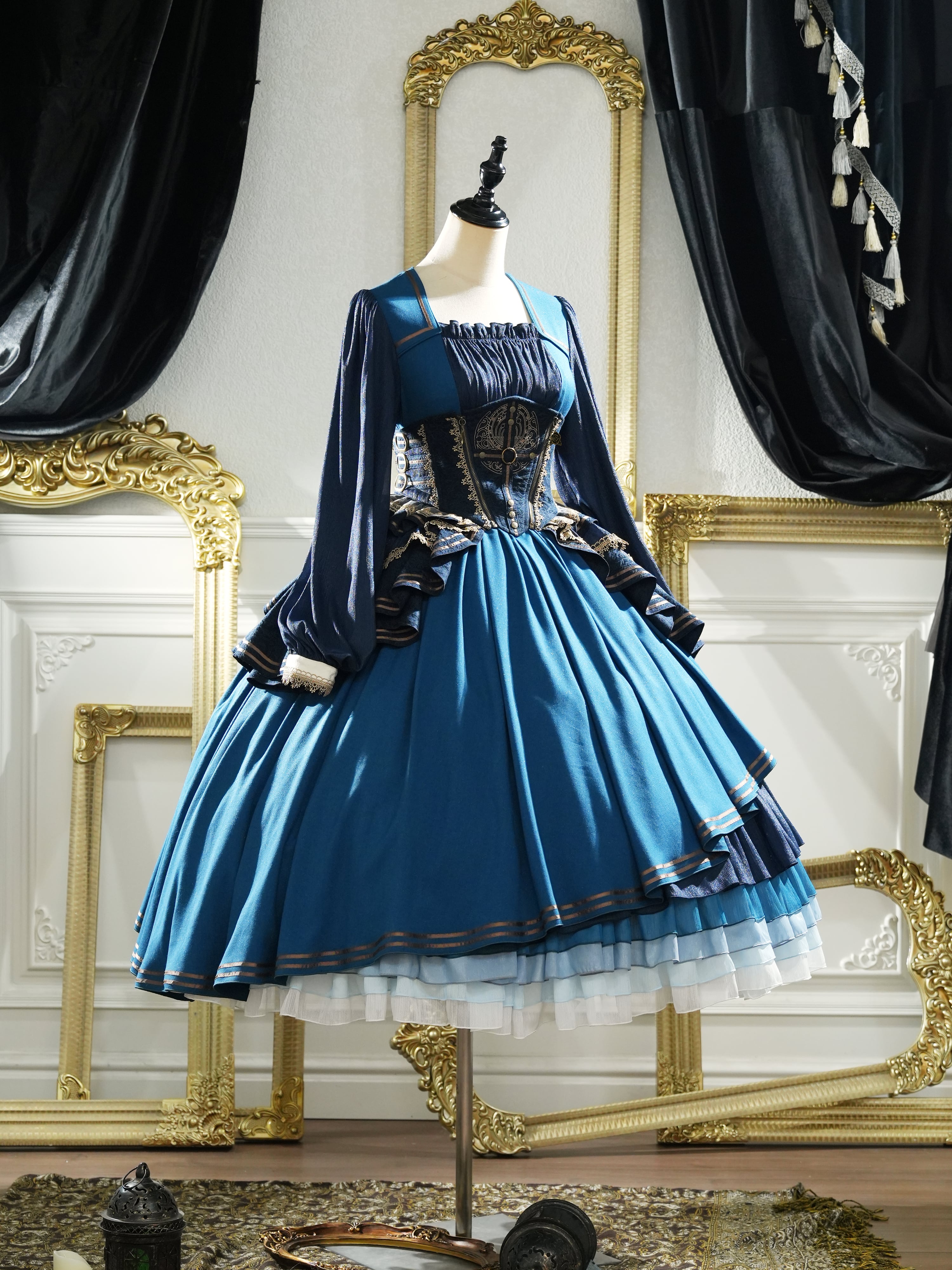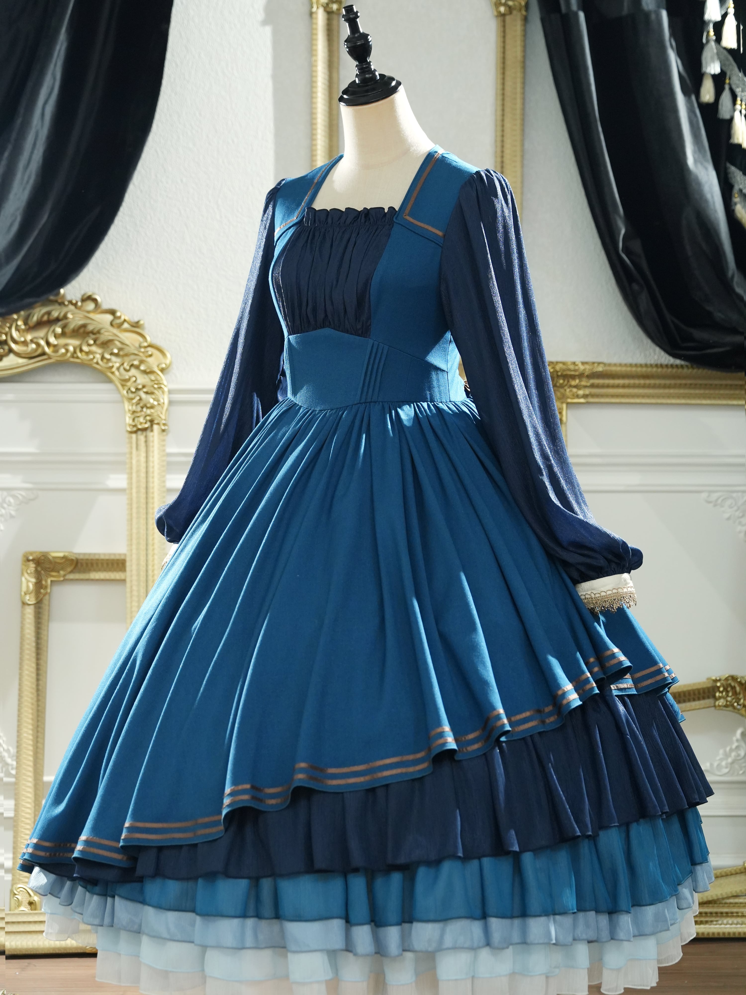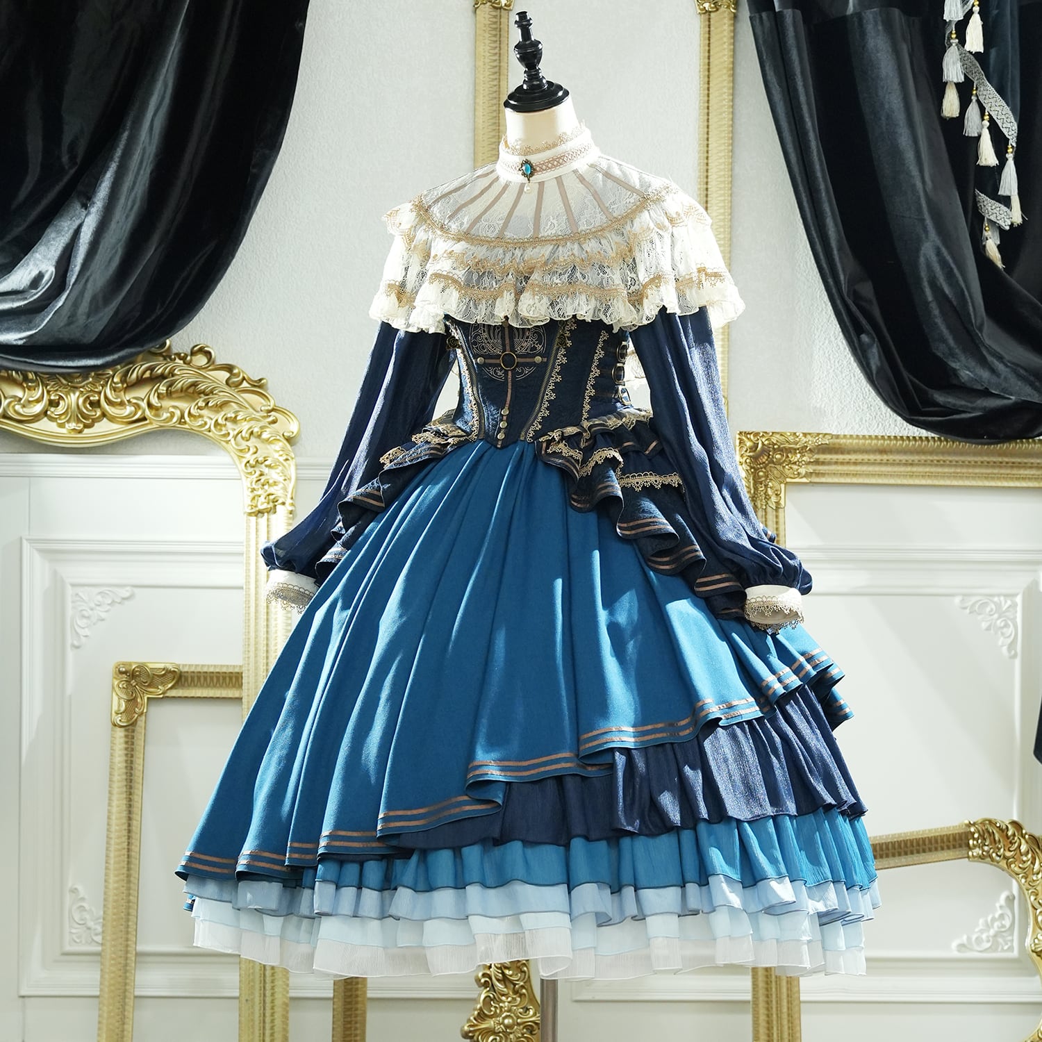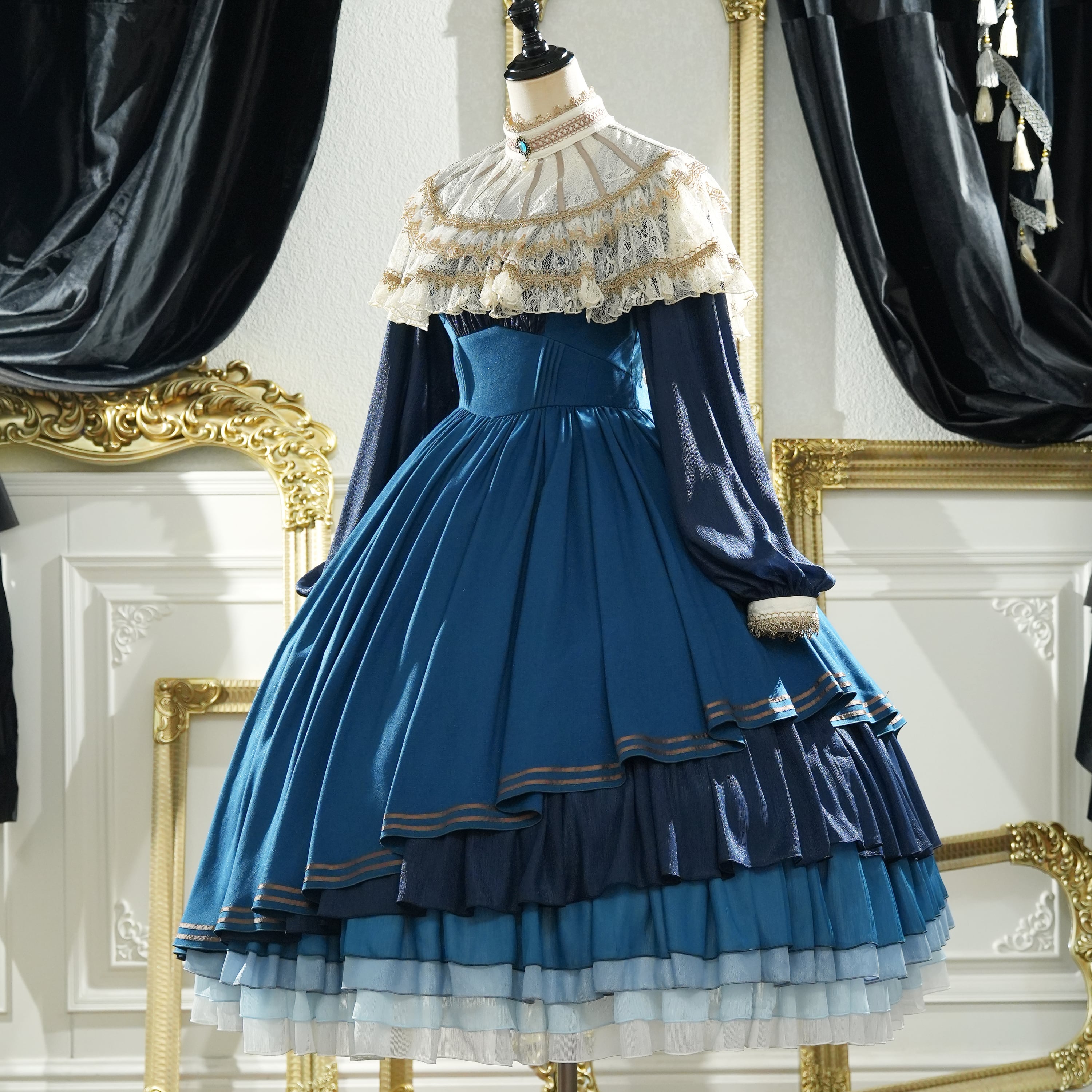 大ぶりな付け襟は天からの光が差すようなストライプ。やわらかなレース素材で優しい星の光を表現。首元のストーンがまるで魔力を灯すような美しさに。