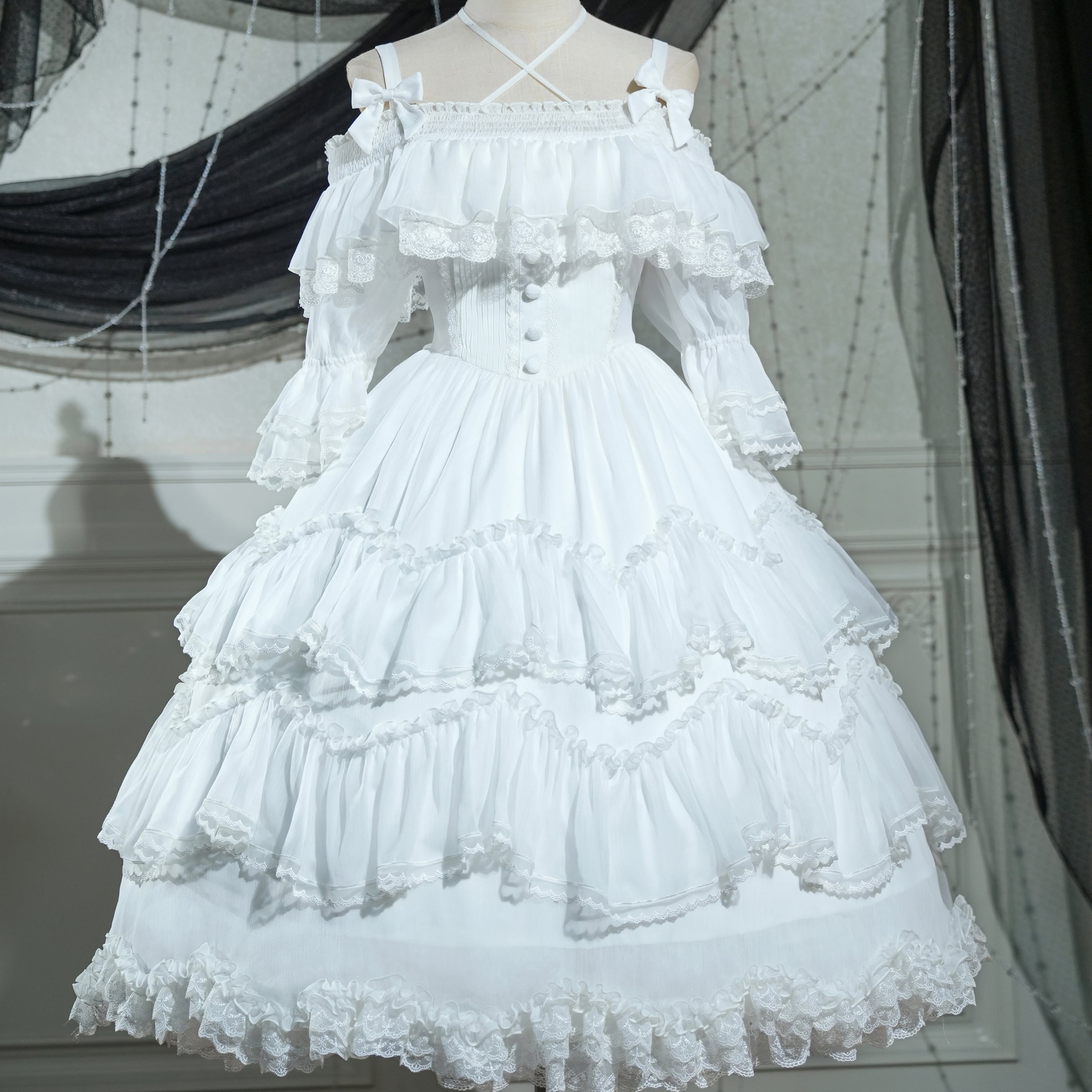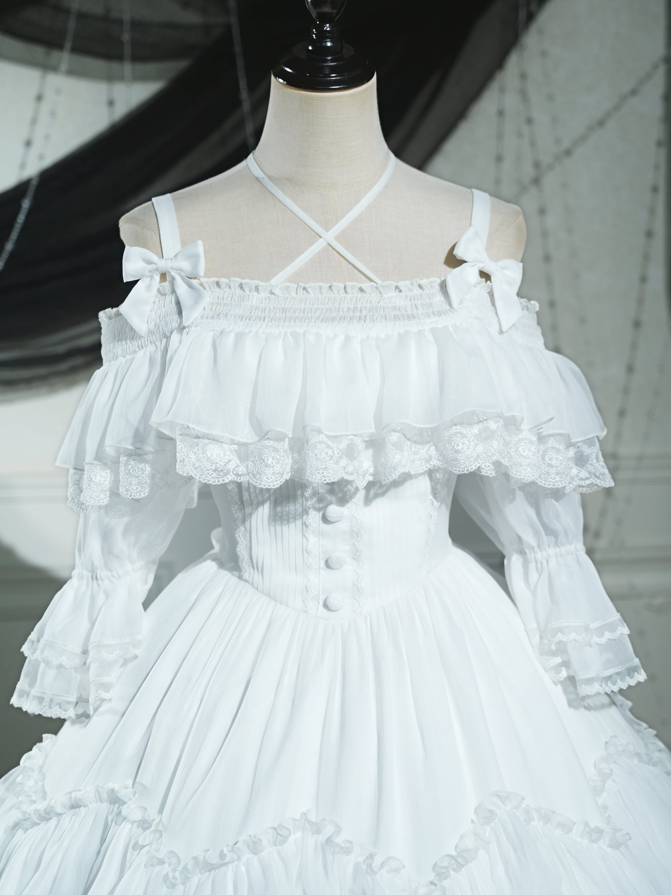 コルセット部のピンタックもコーデの美しさを引き立てます。