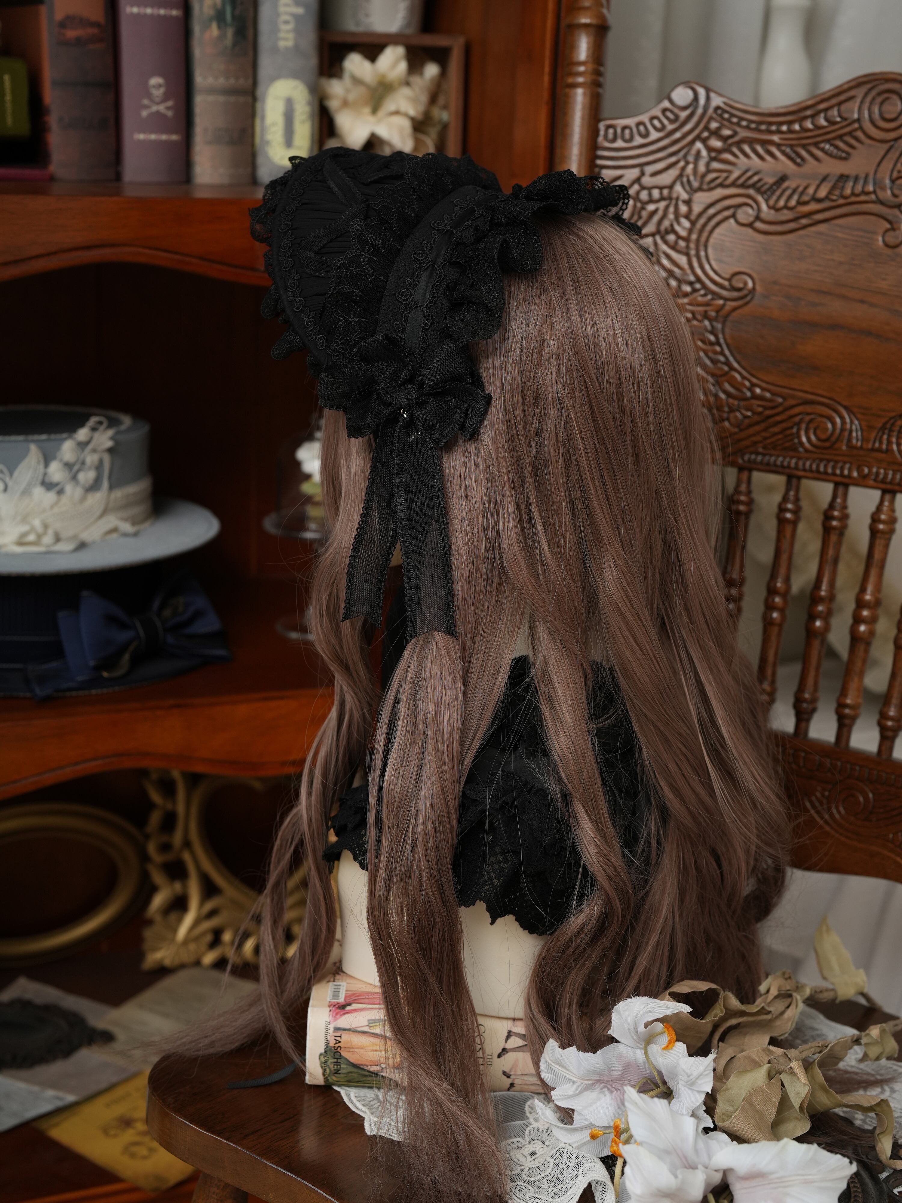 サイドに施されたチュールのリボンが横顔まで可愛く魅せてくれるボンネットです♪