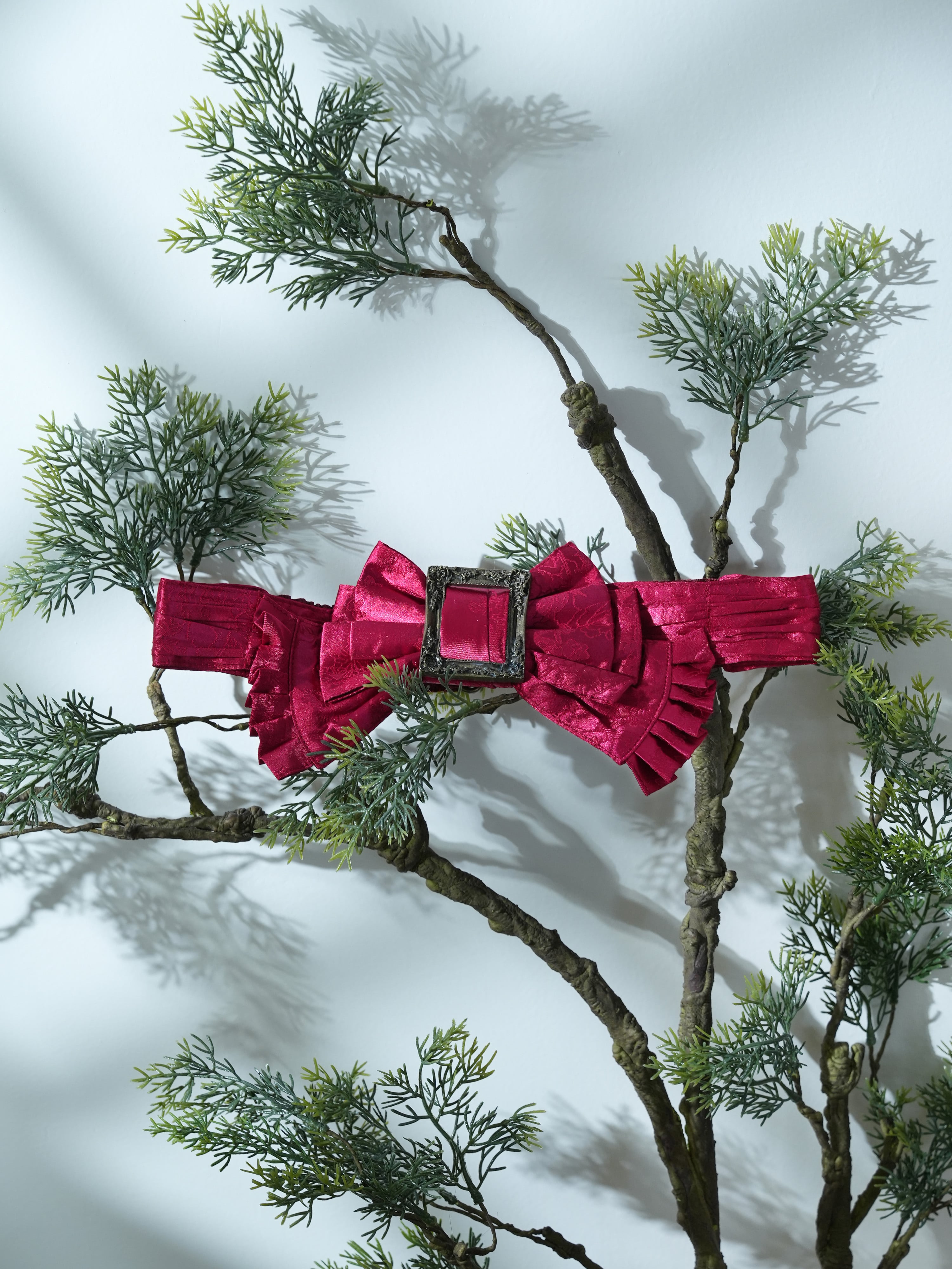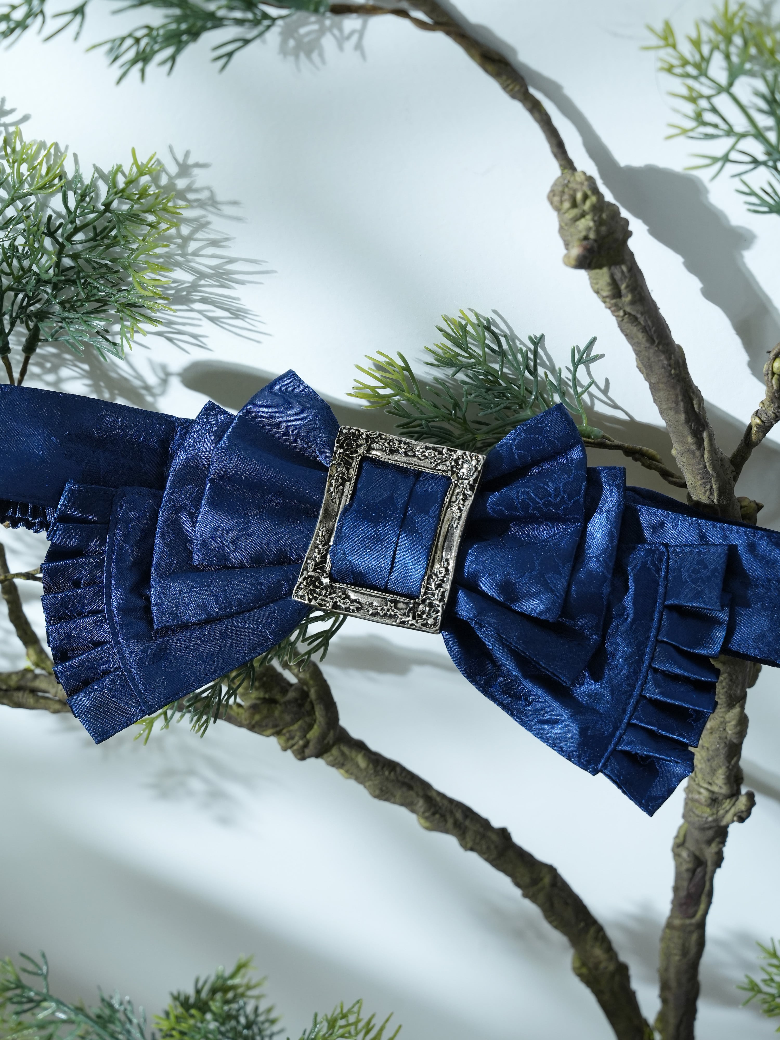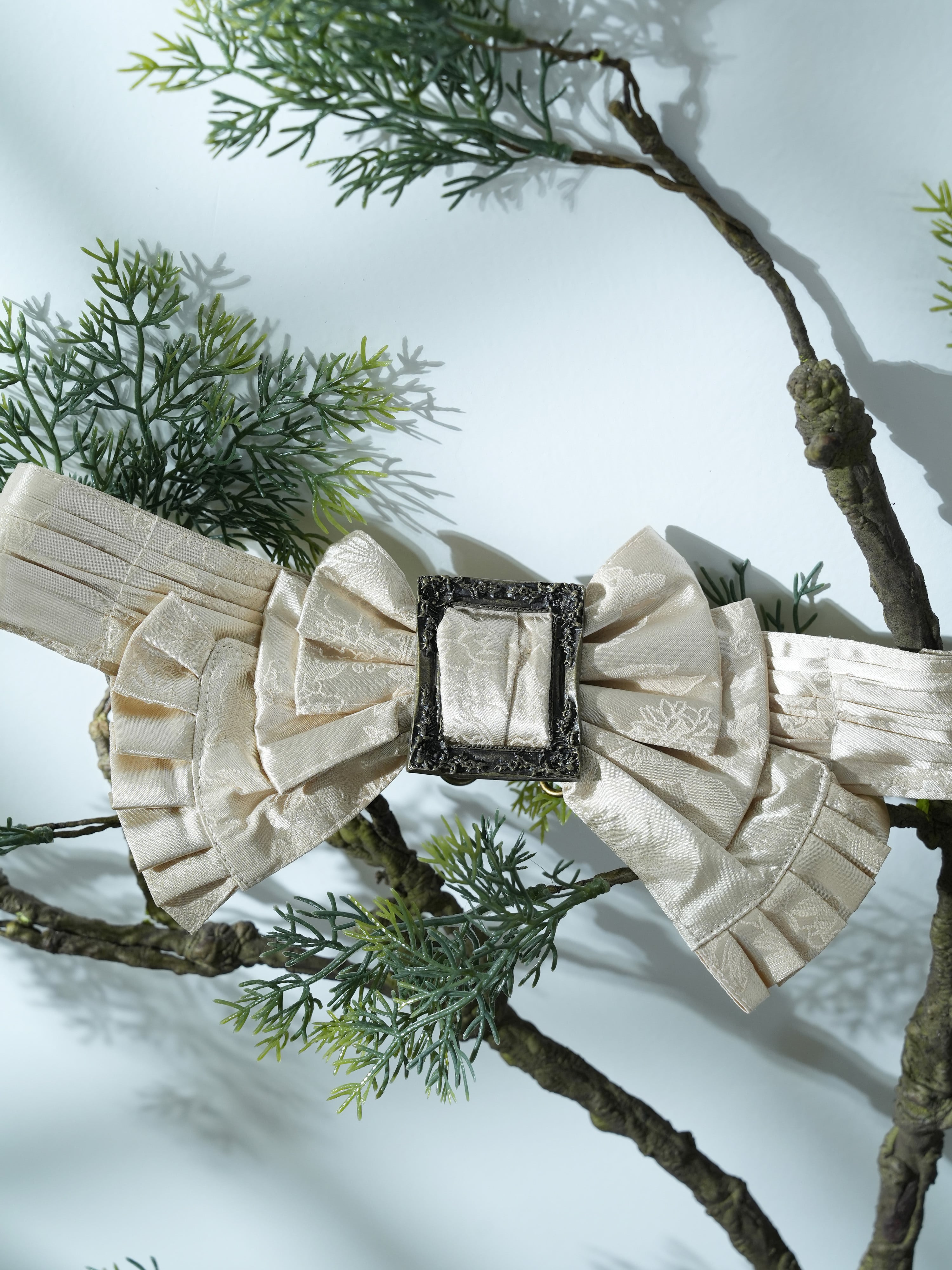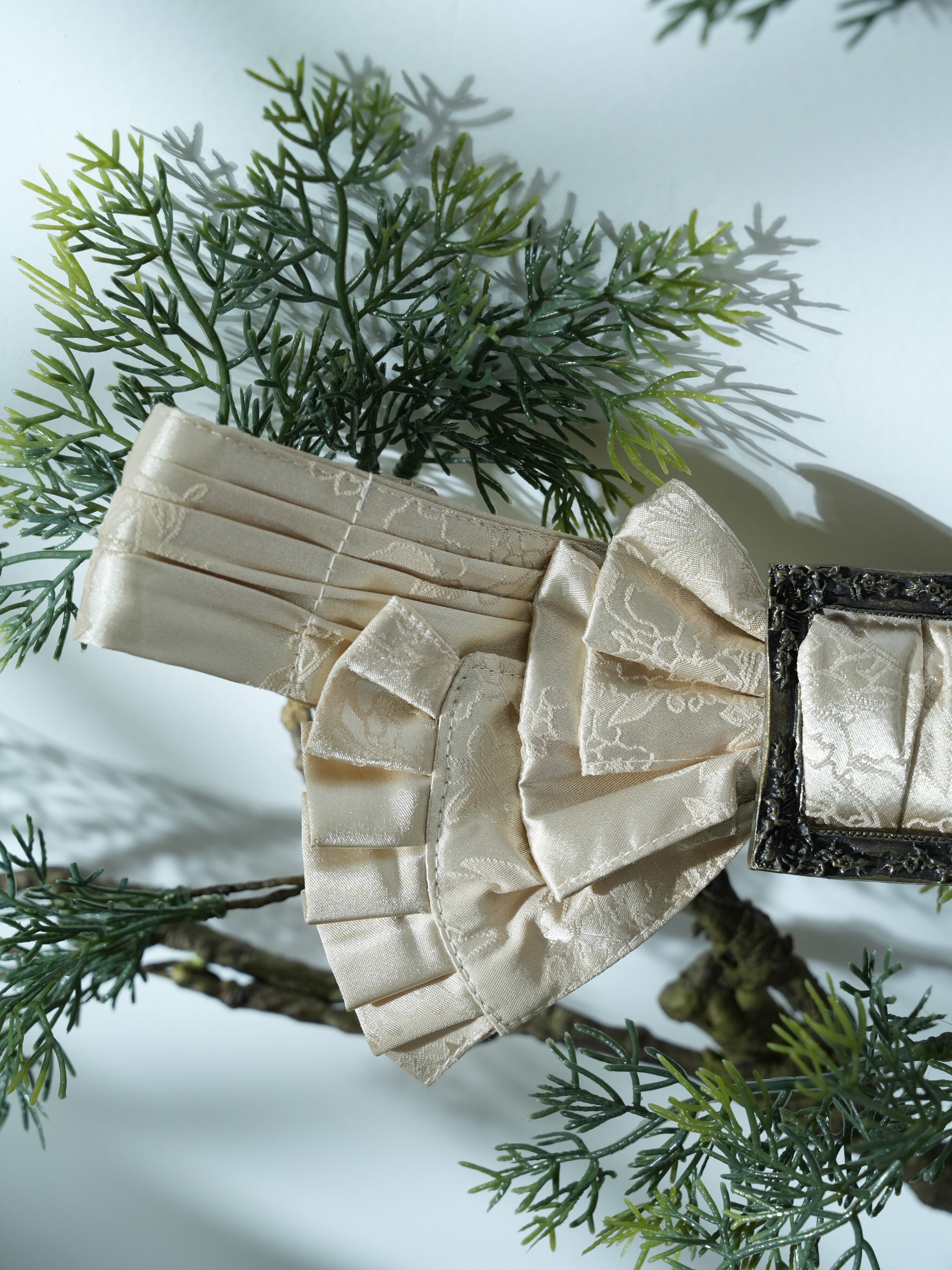 アンティークゴールド・シルバーの大きなバックル付きのゴム製リボンベルト。