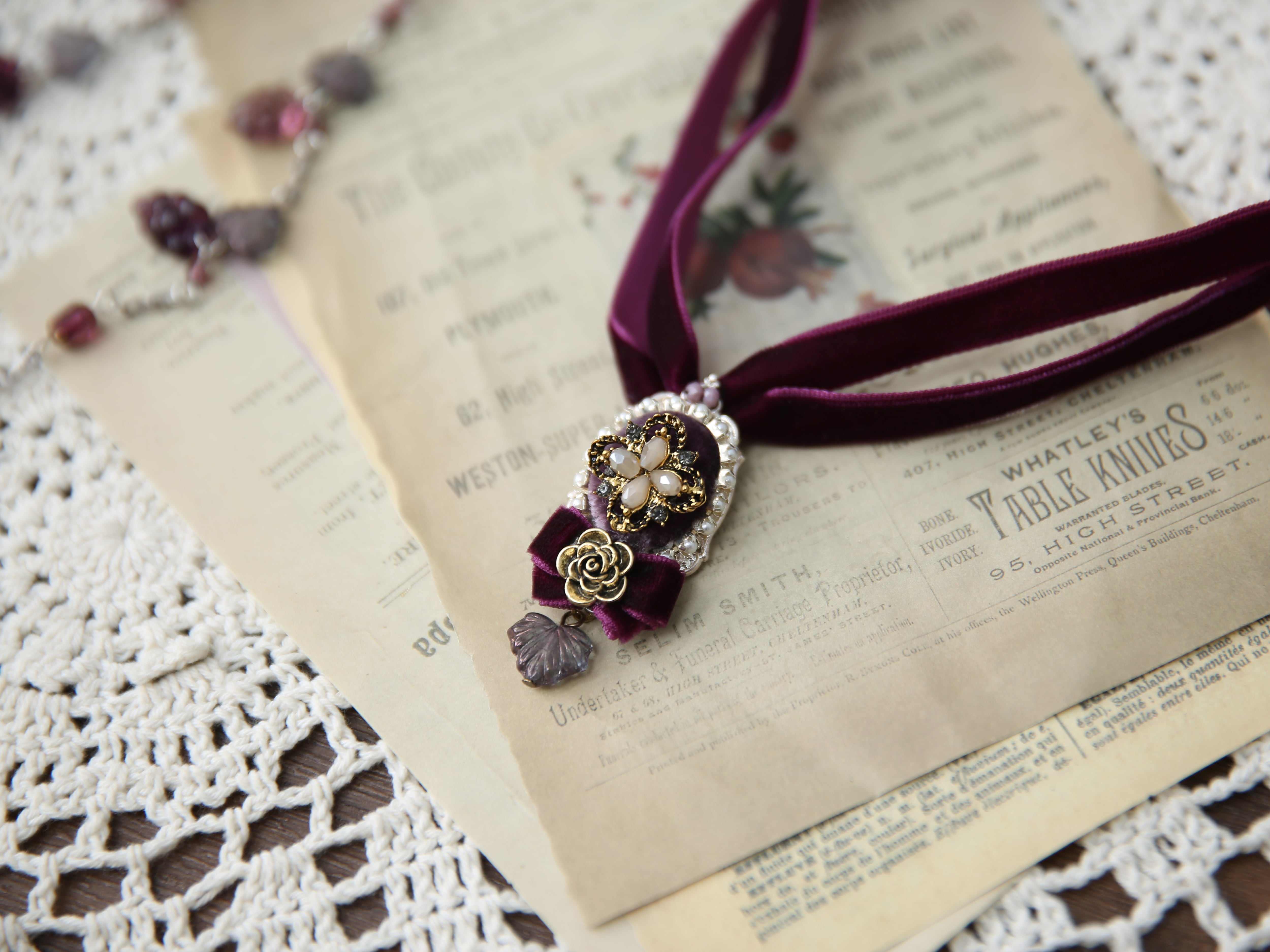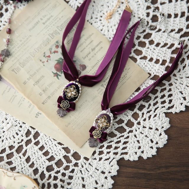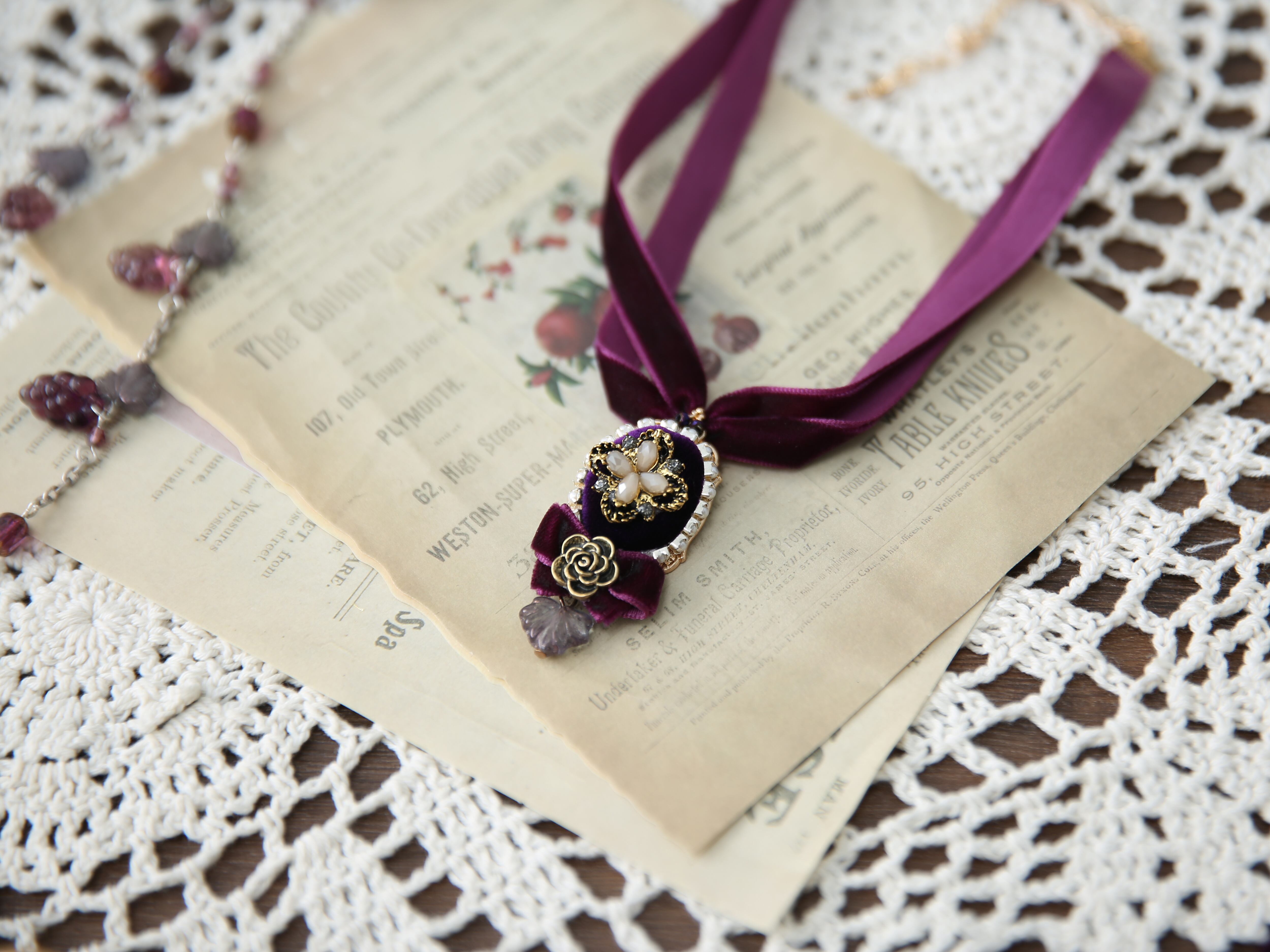 ペンダントの地色は薄紫・深紫の2色をご用意しております。
