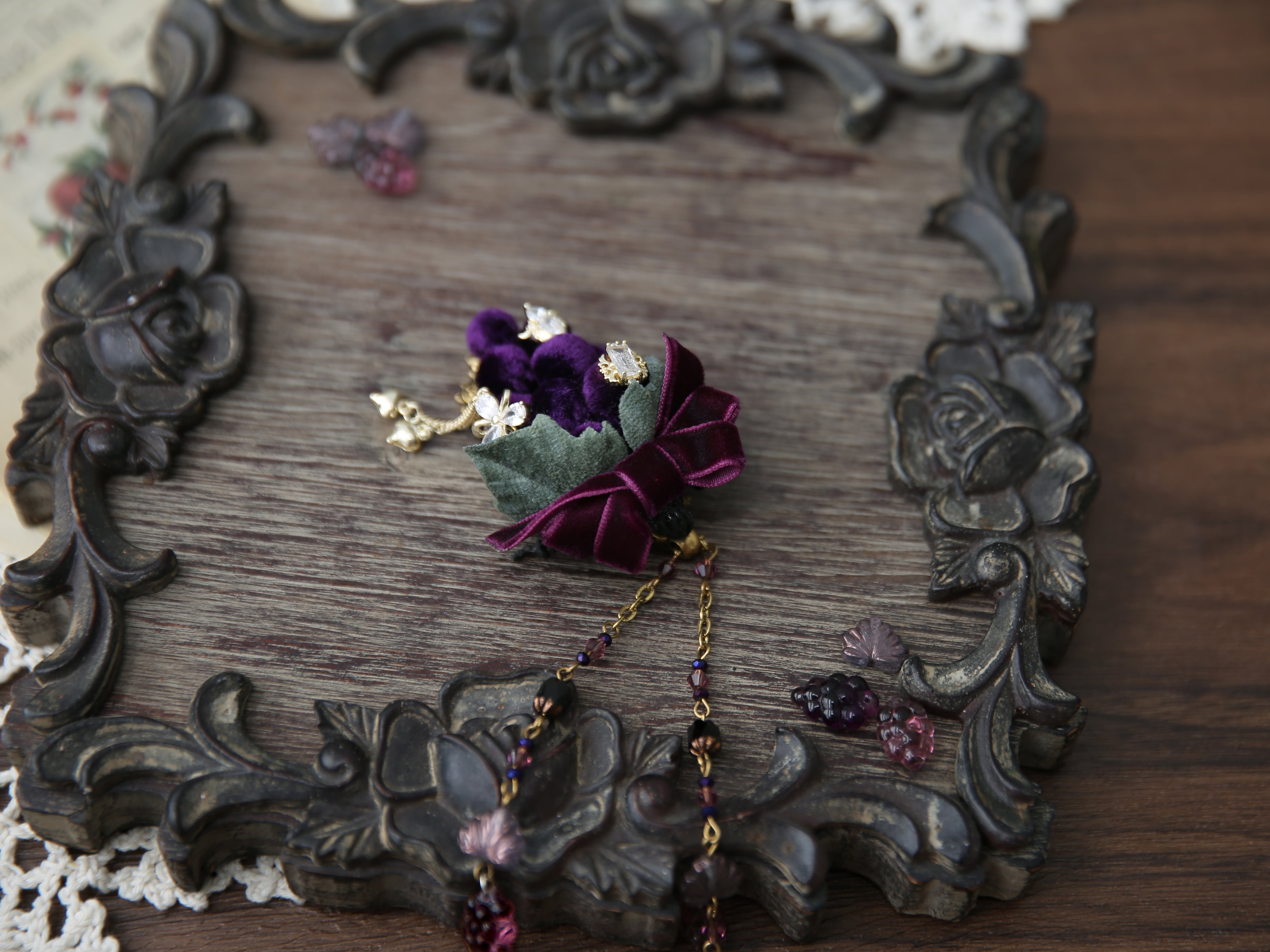 葡萄の実と金具の色がそれぞれ薄紫xシルバー・濃紫xゴールドの2パターンの組み合わせをご用意しています。