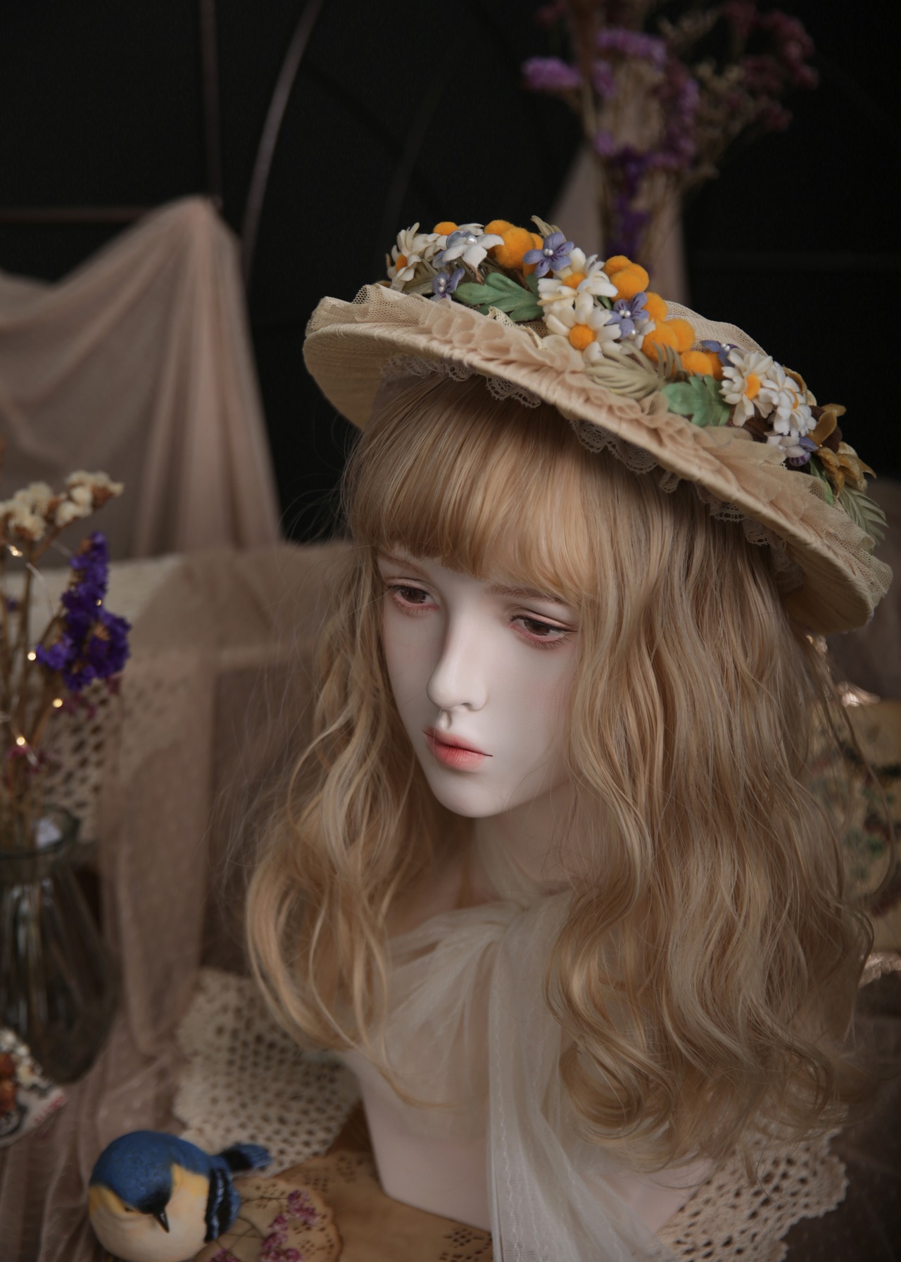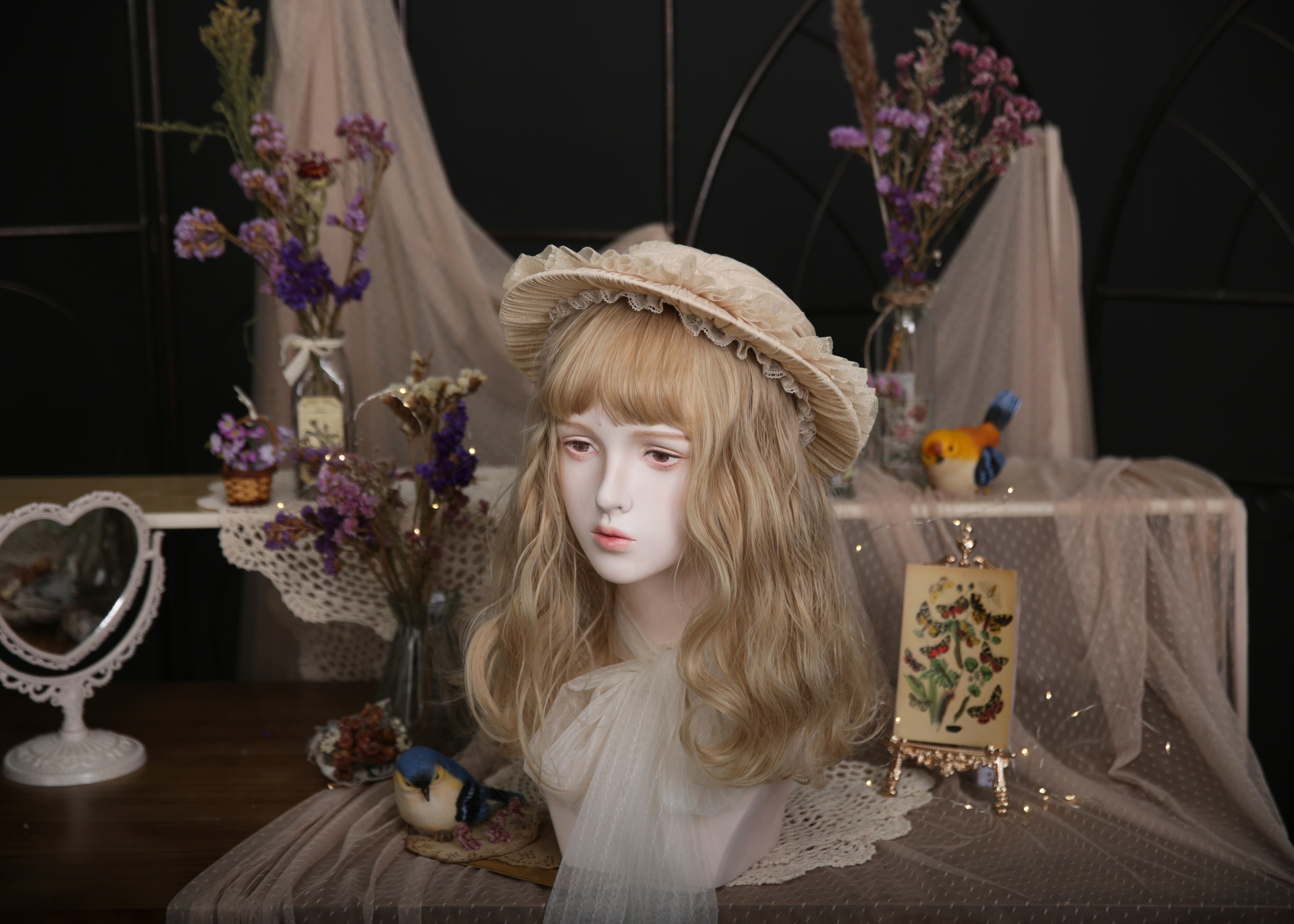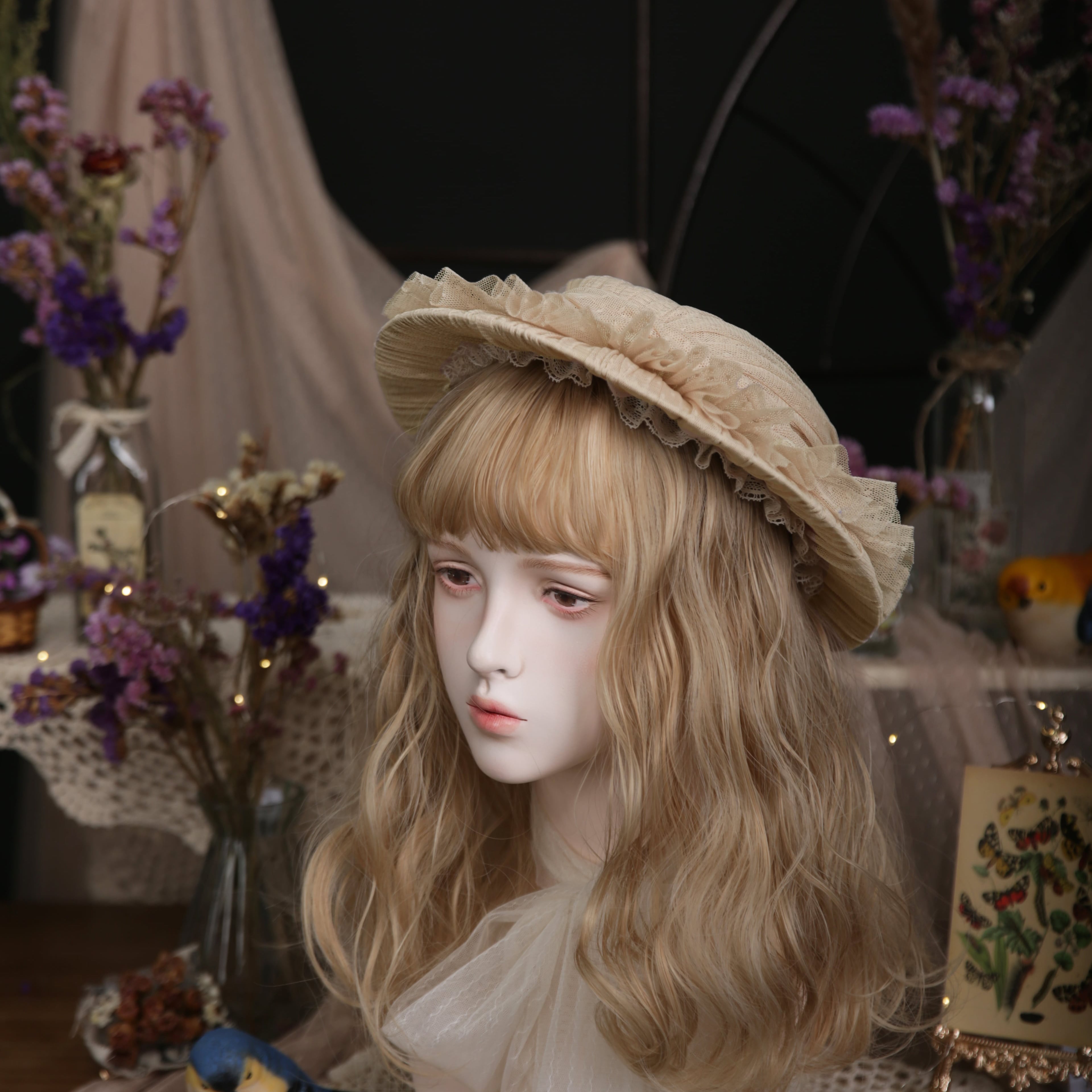 ドットチュールでハットを包み、たくさんのフリルが軽やかでクラシカルな帽子です。