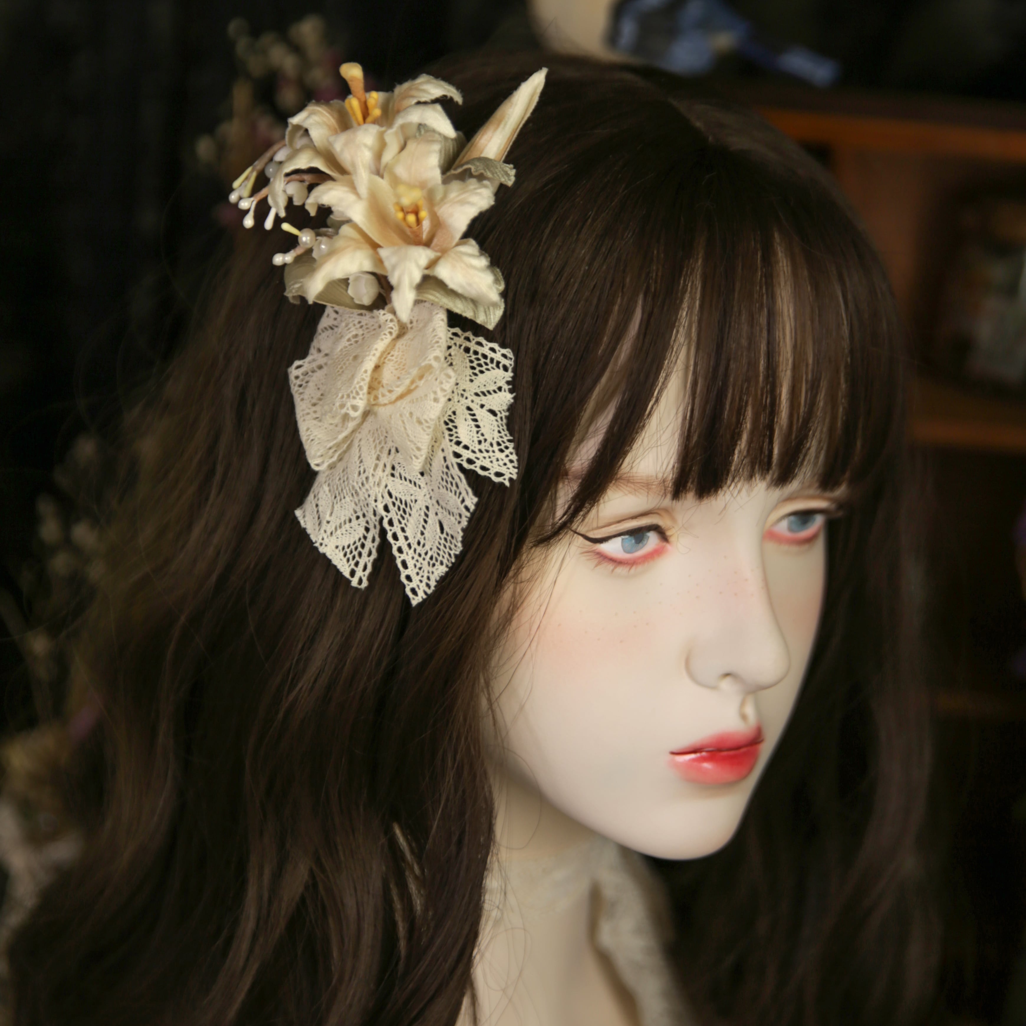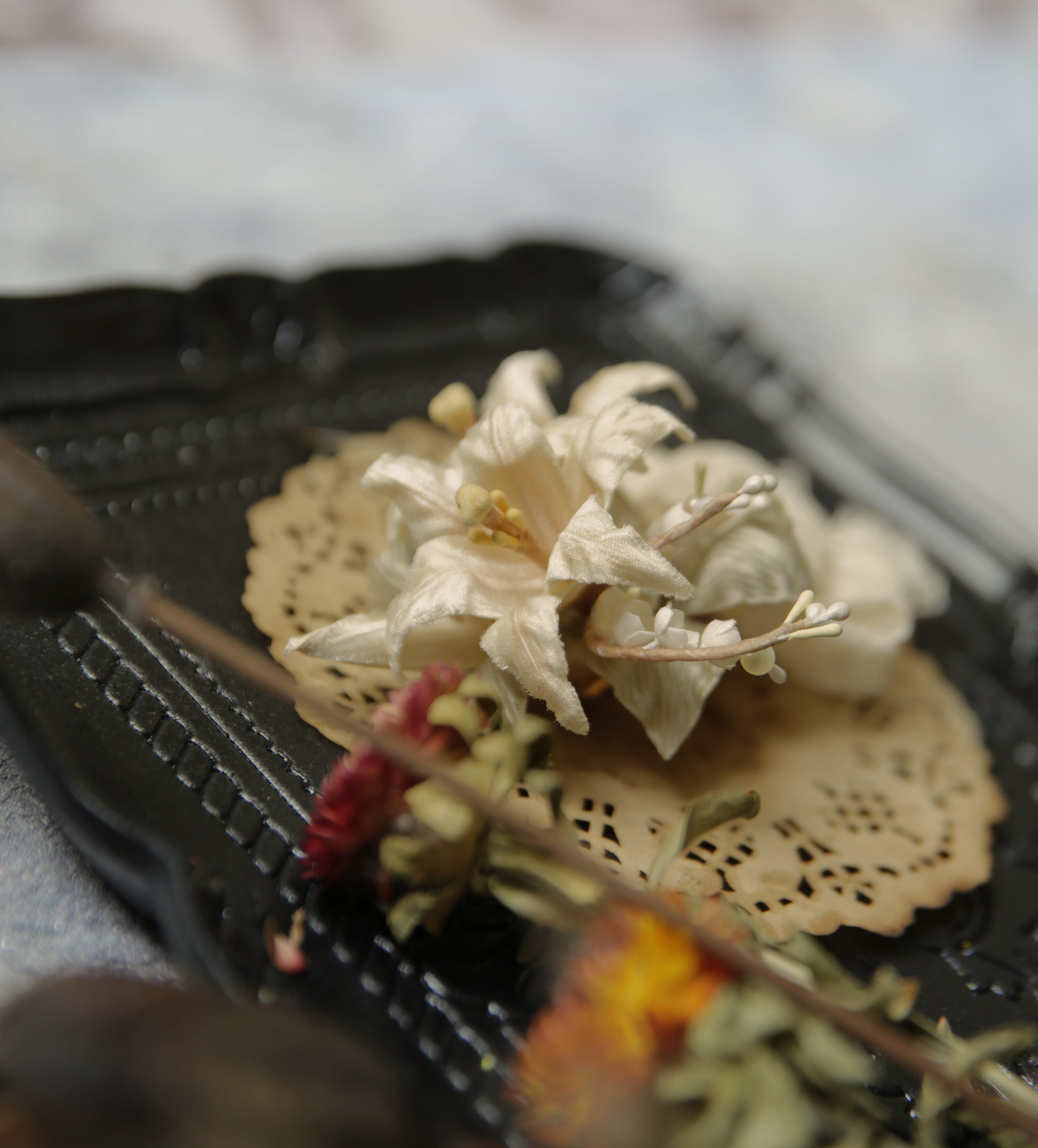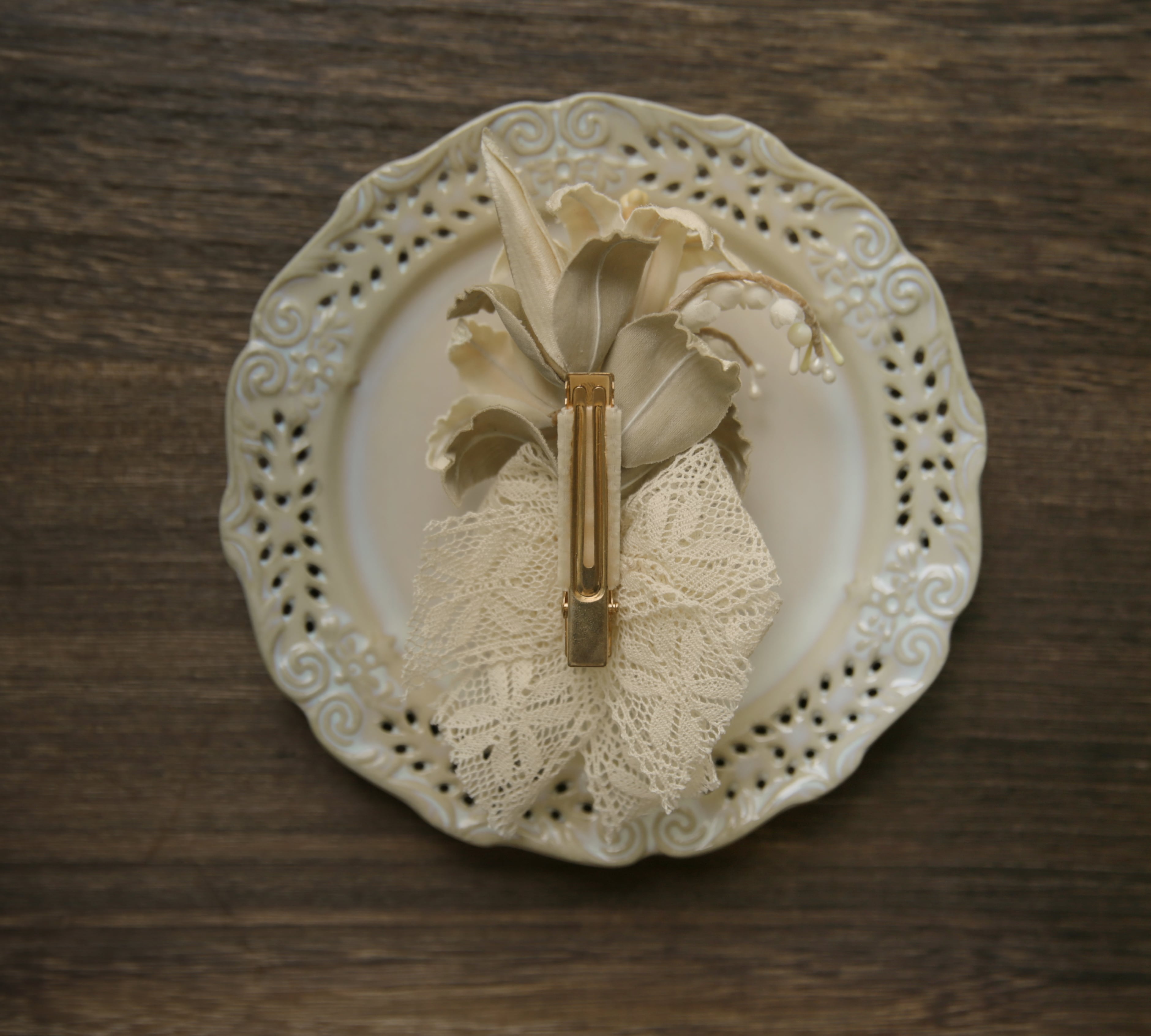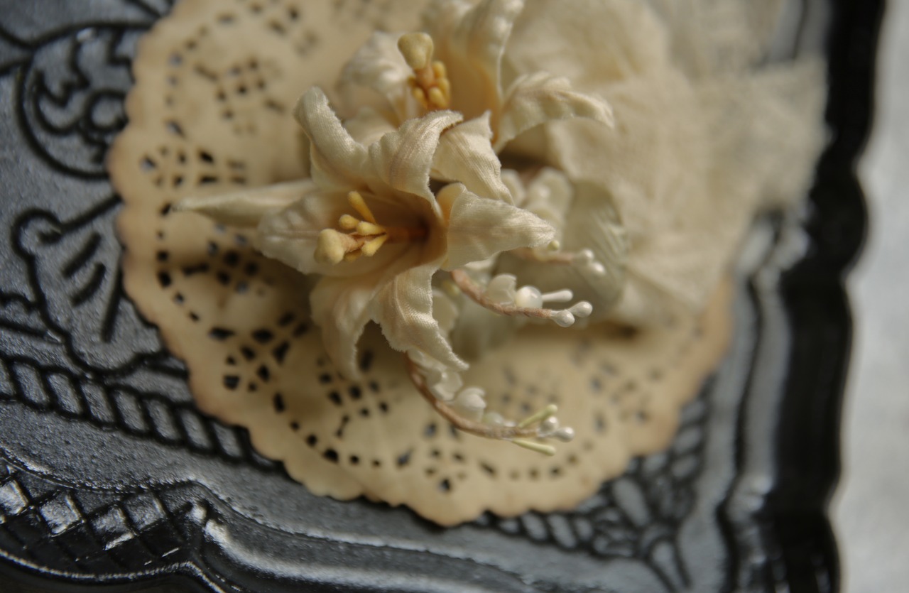 前作から継承された優雅さと高級感を醸し出す百合と鈴蘭のアートフラワーがブローチになりました!今回は安全ピンのブローチタイプとクリップタイプの二種類からお選び頂けます。