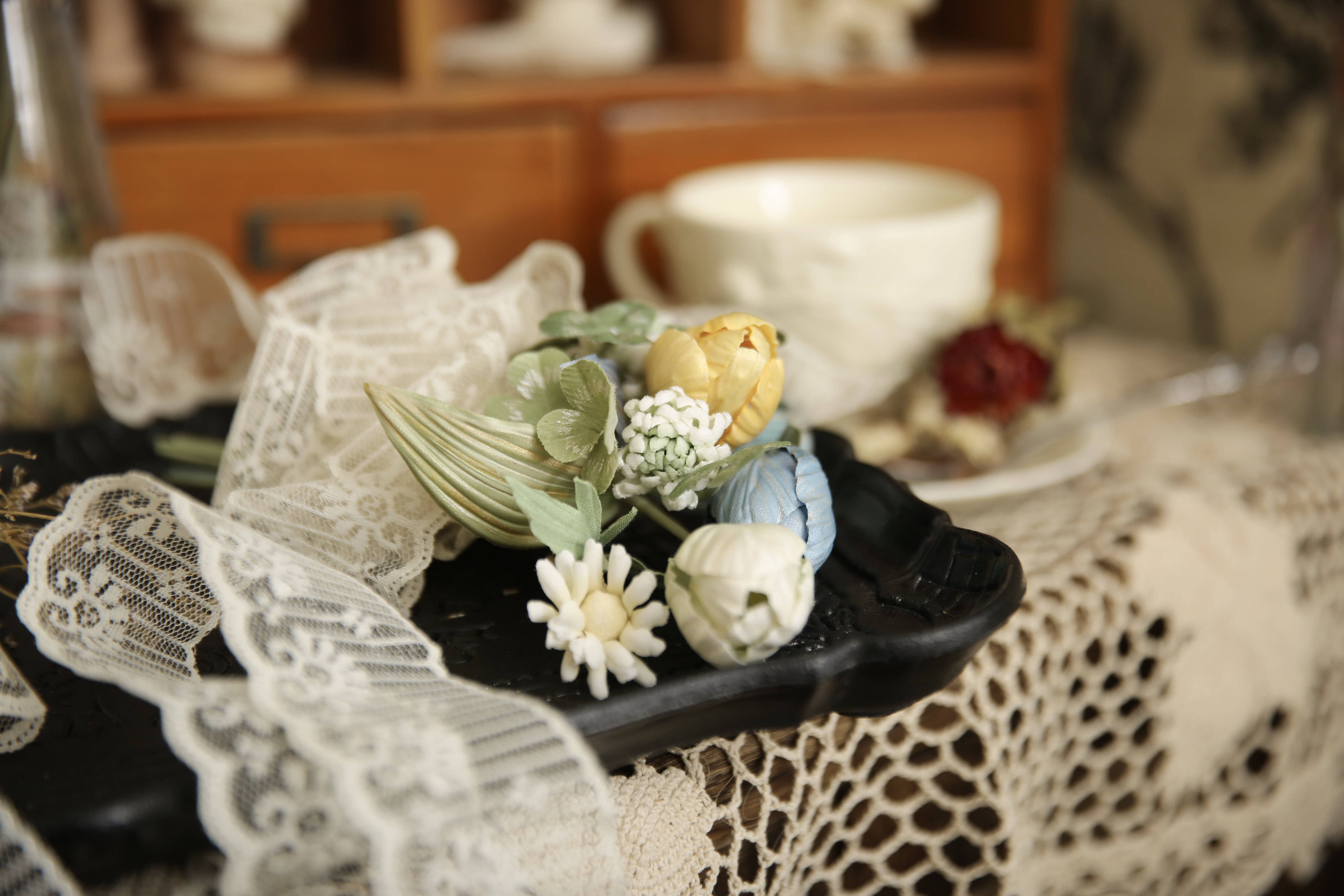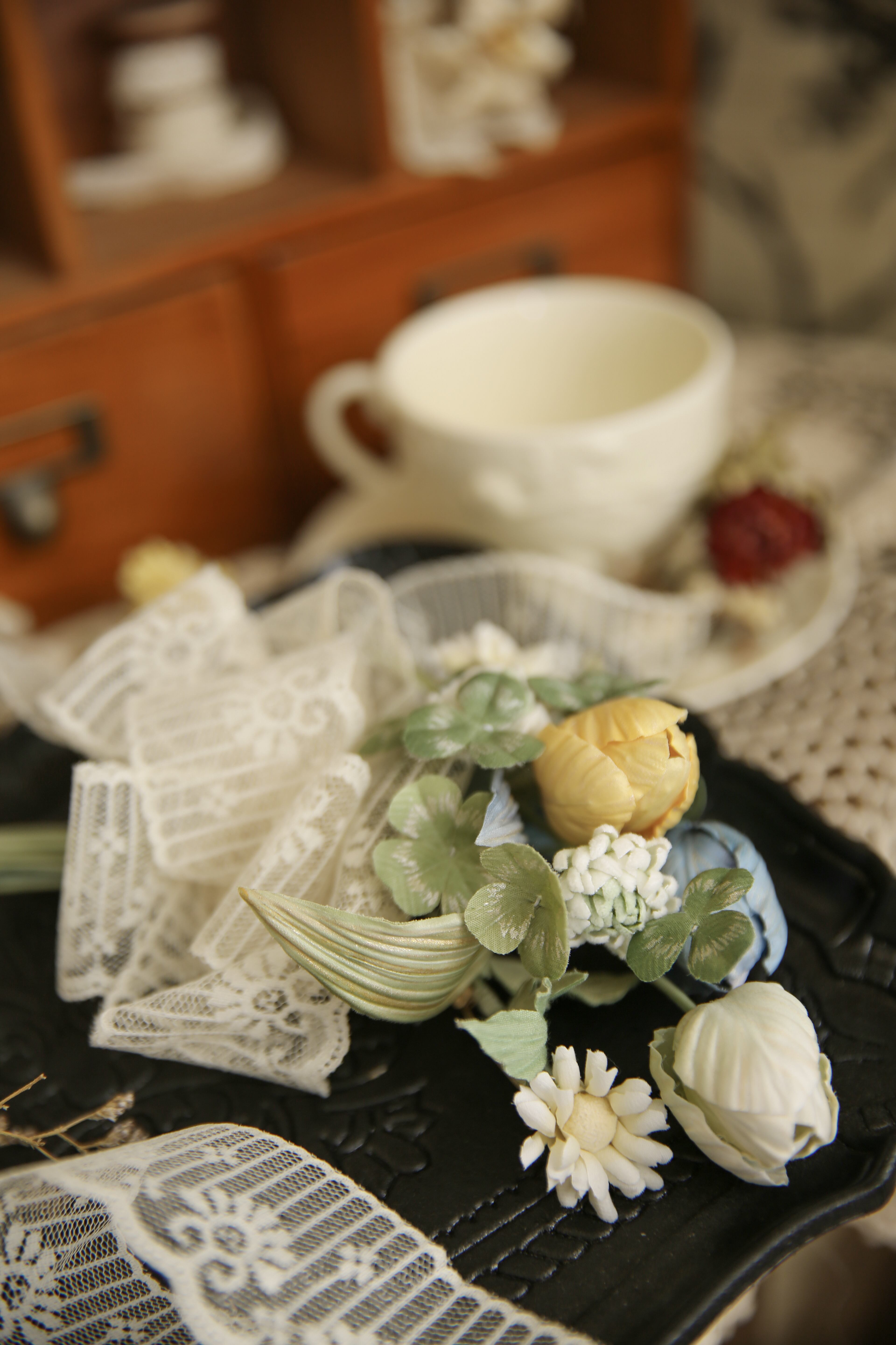 田園的な可愛らしさを持つブローチは様々なお洋服や帽子、バッグなどにつけてお楽しみ頂けます♪♪