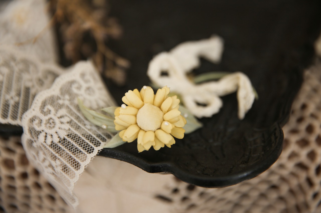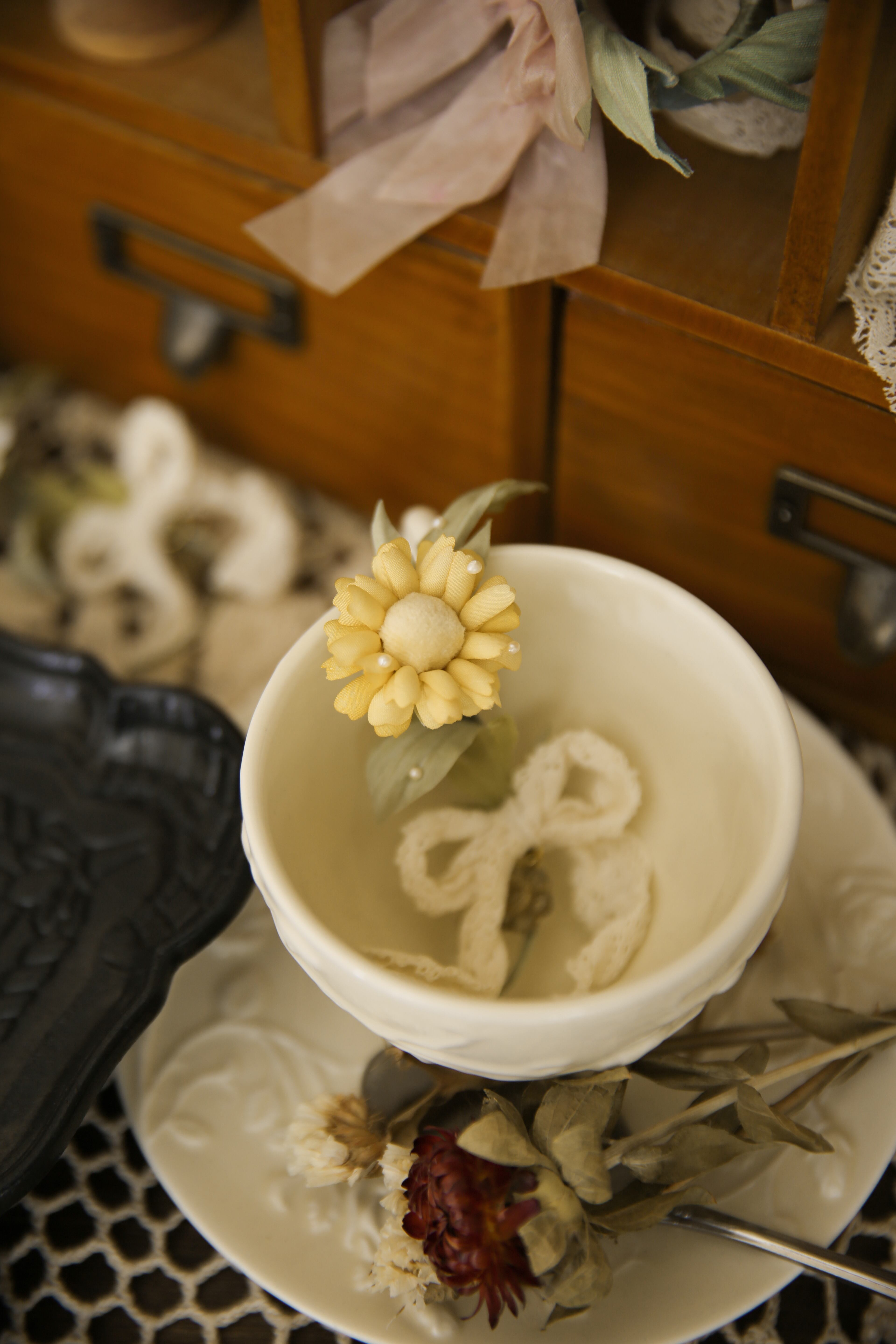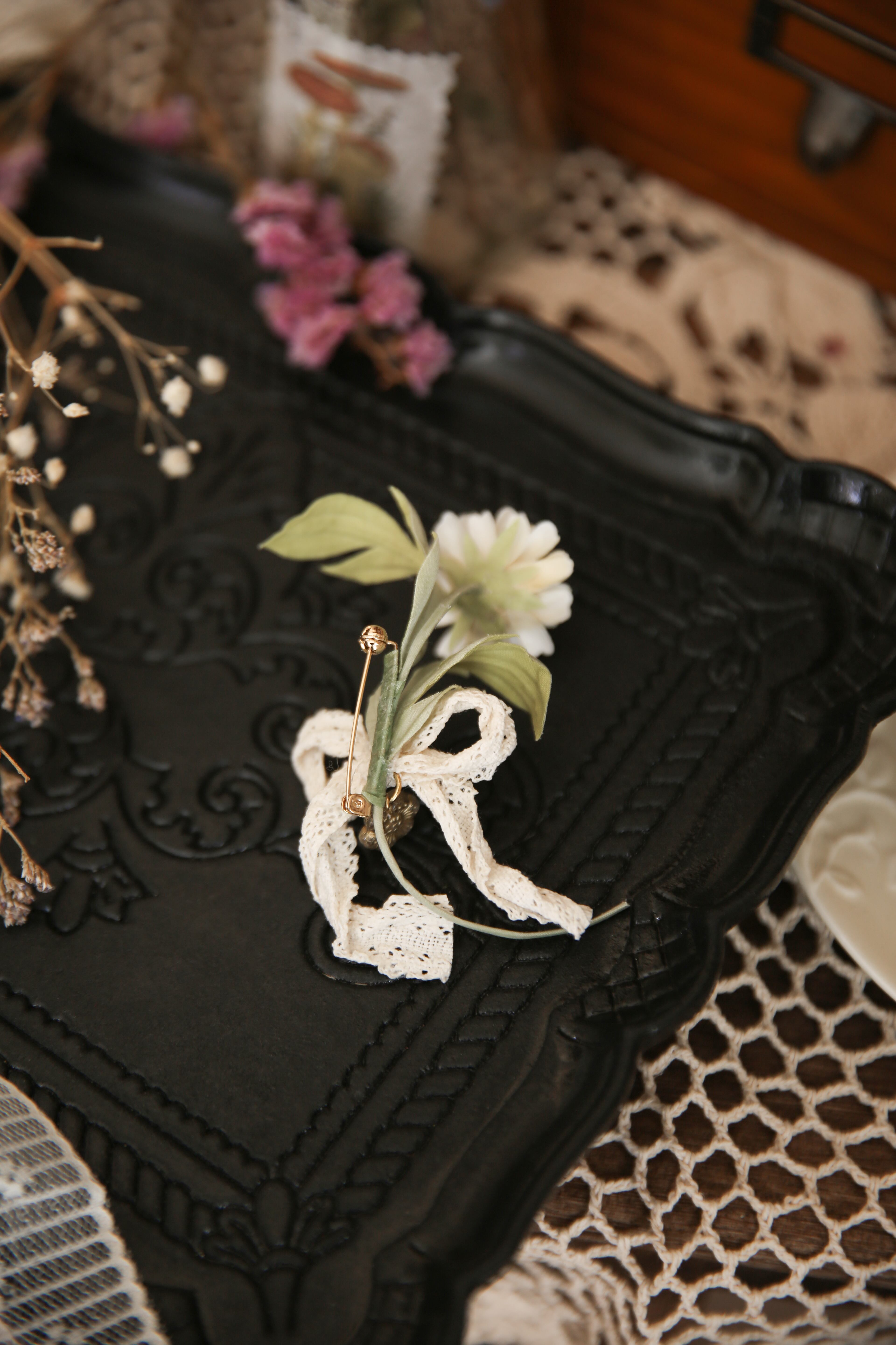 裏側にはブローチピン付きで、様々なお洋服や帽子、バッグなどにつけてお楽しみ頂けます♪