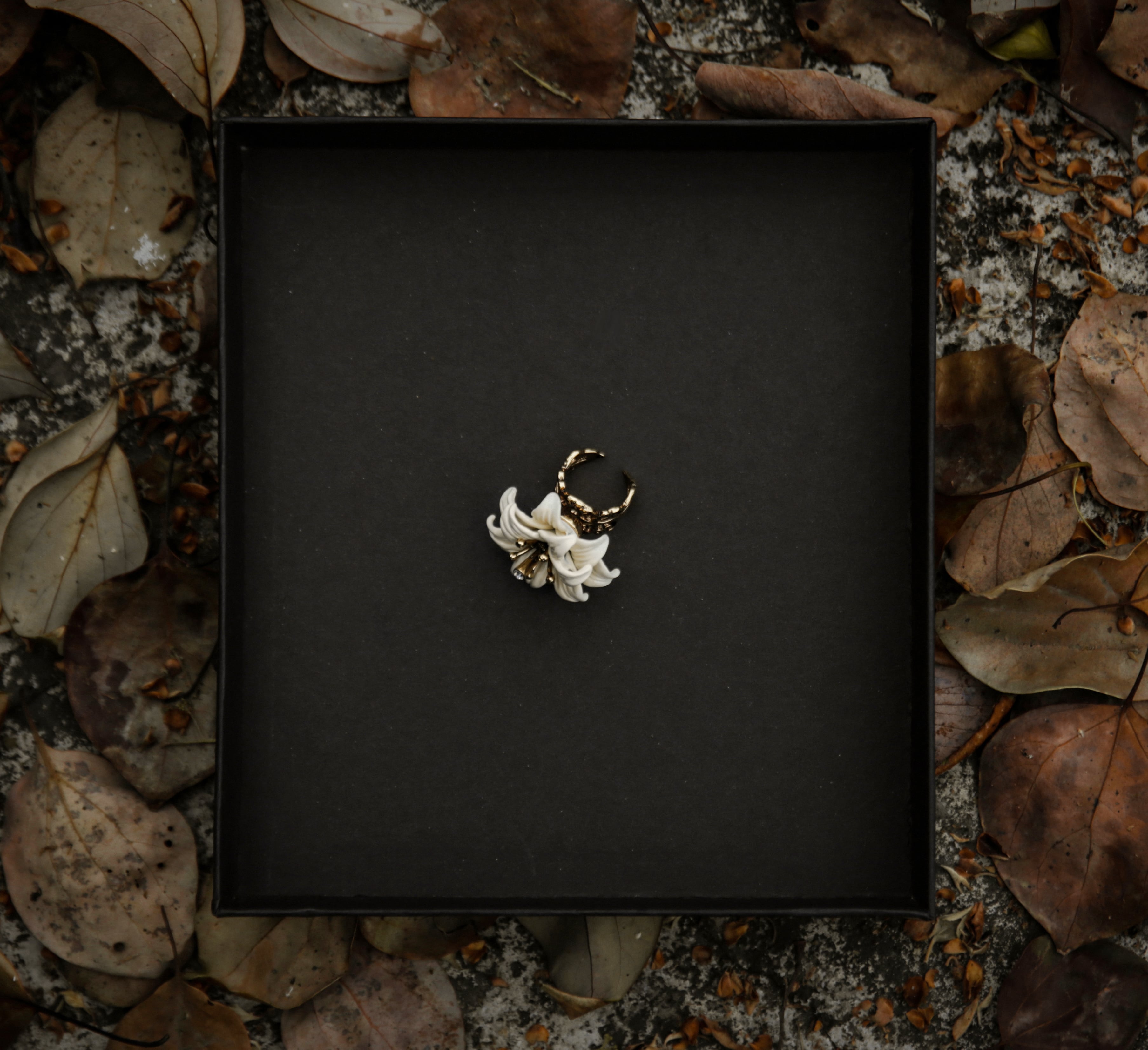 リング、ブローチ、ネックレス一輪・二輪の4型展開。