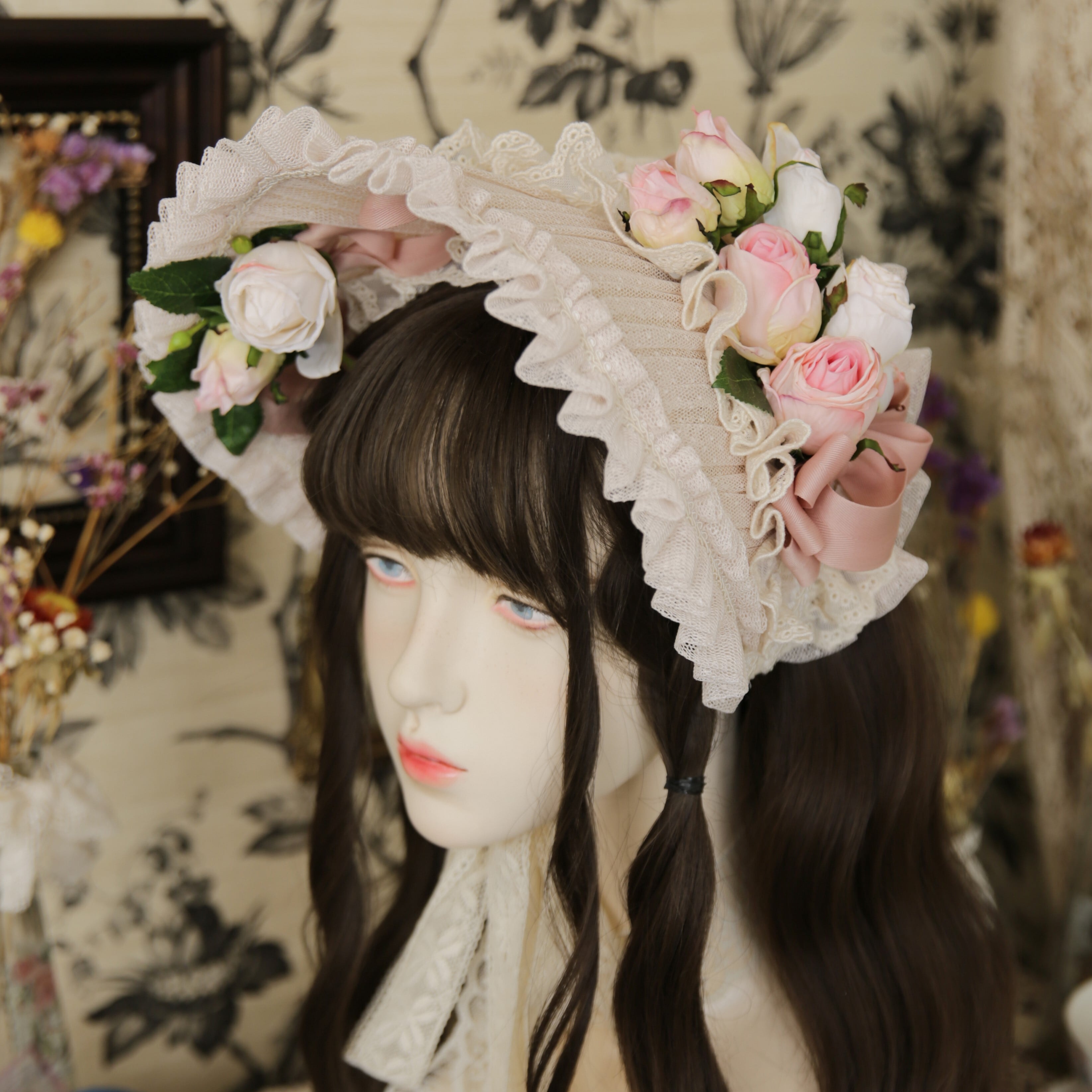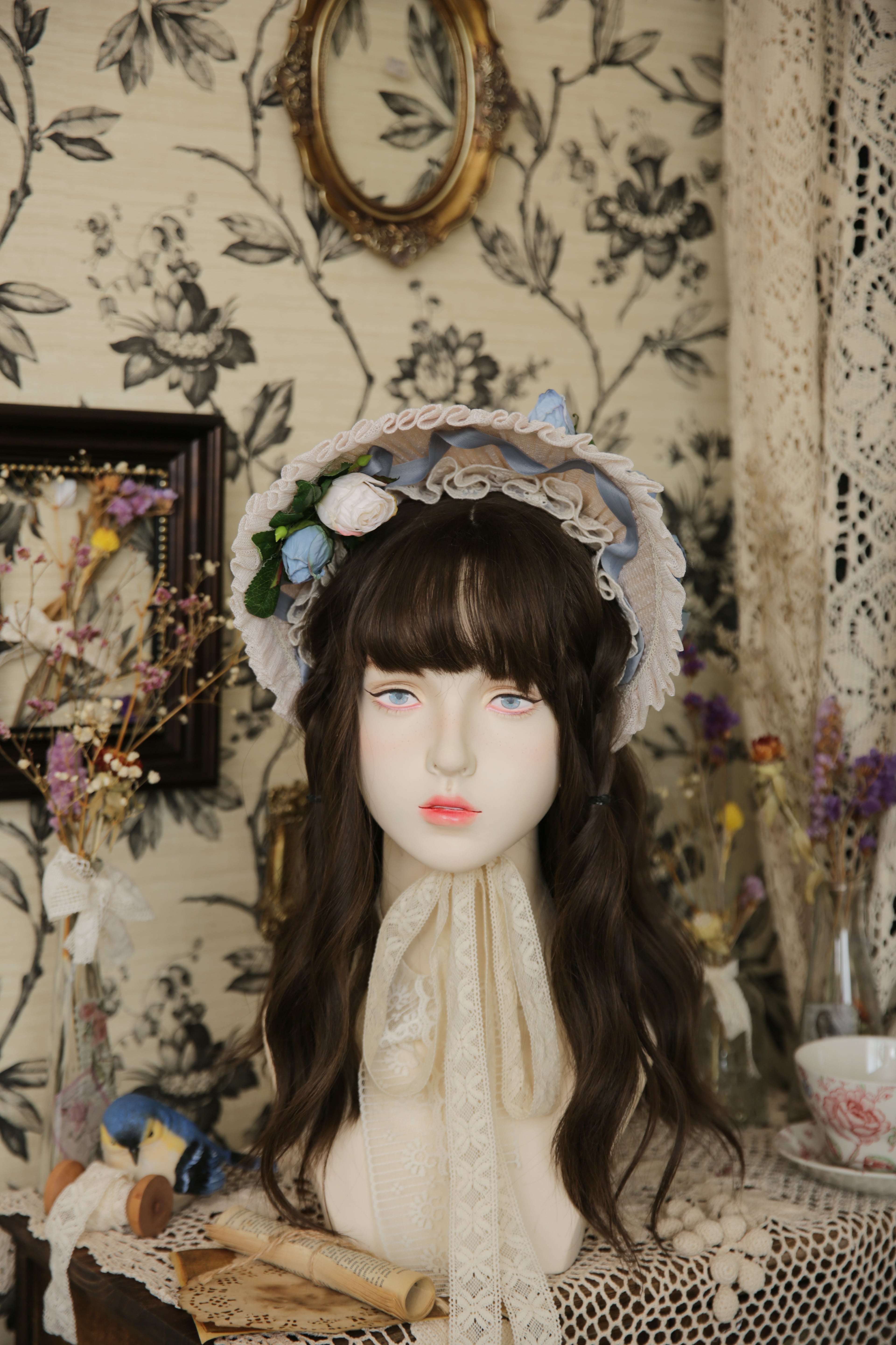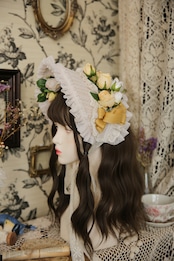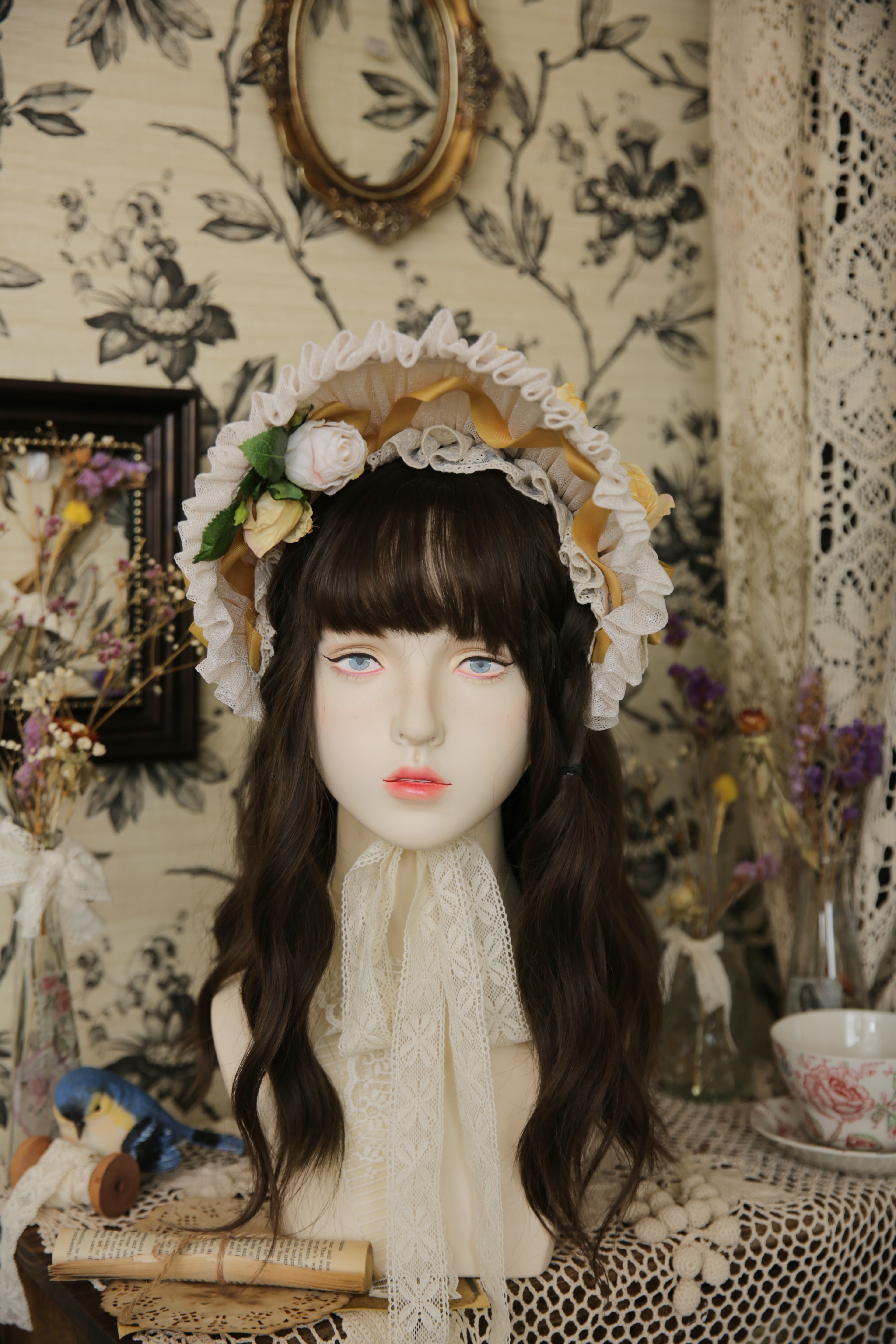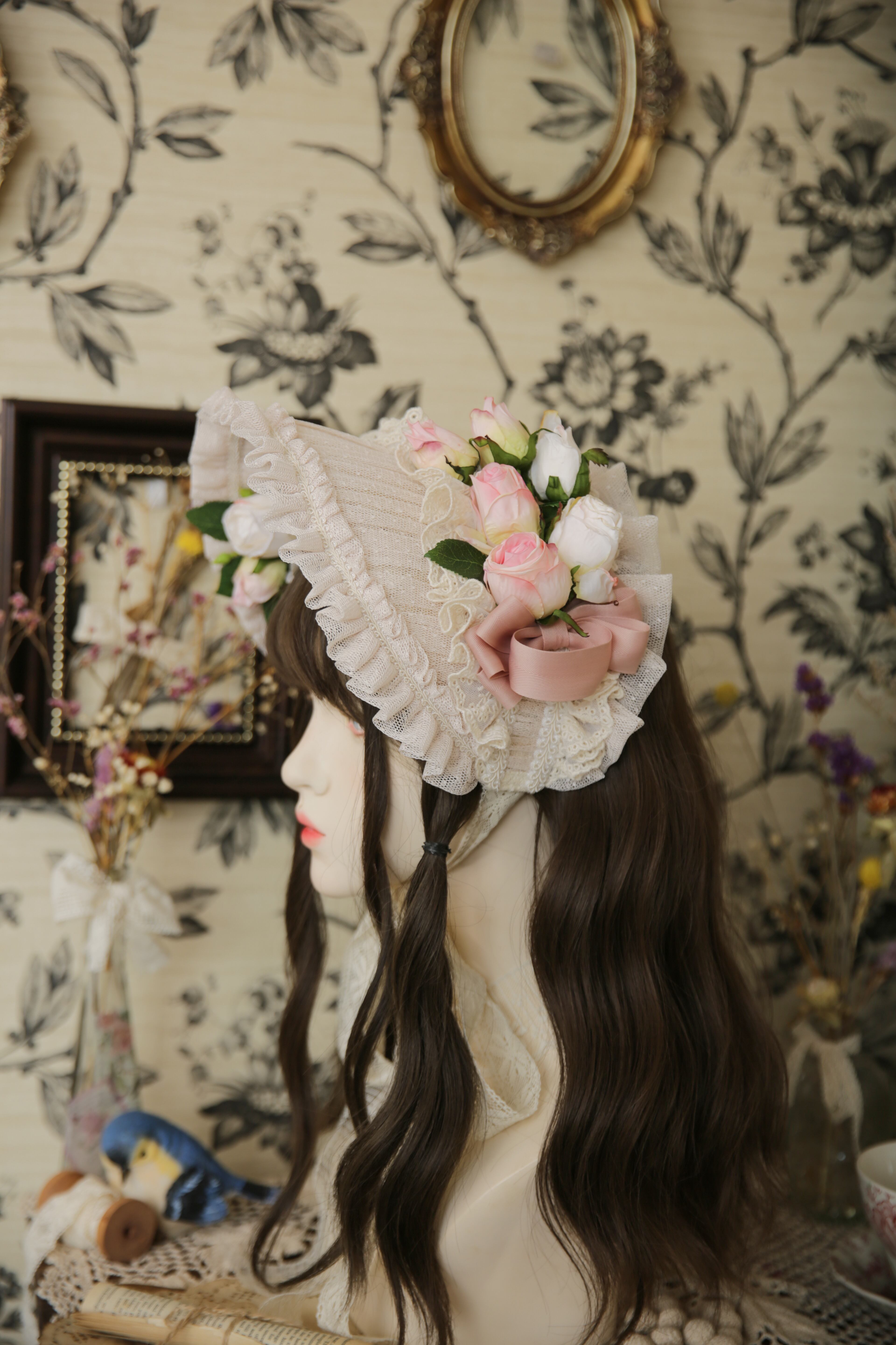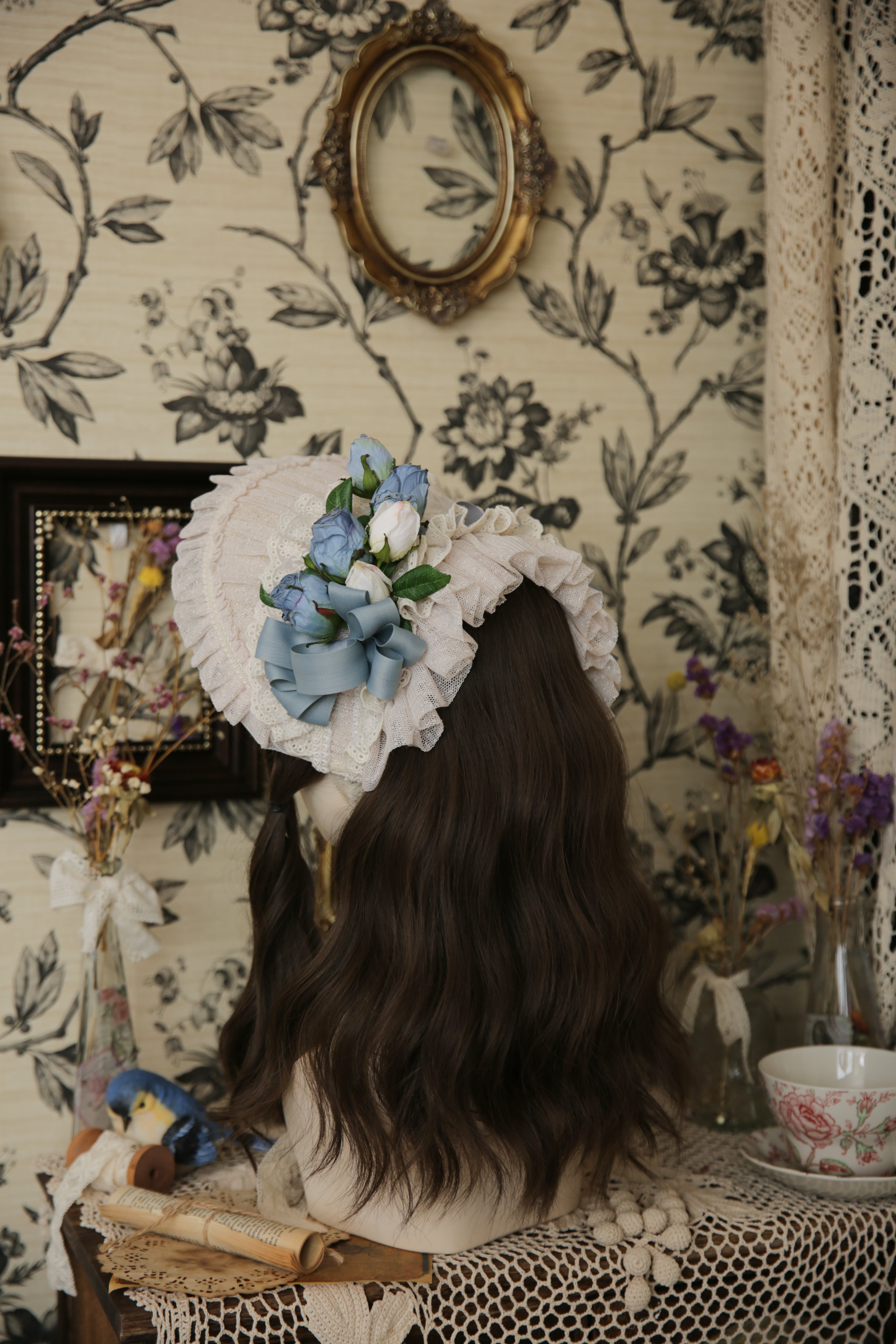 ゆるりふわりとしたリボンとアンティークローズが乙女カワイイボンネット