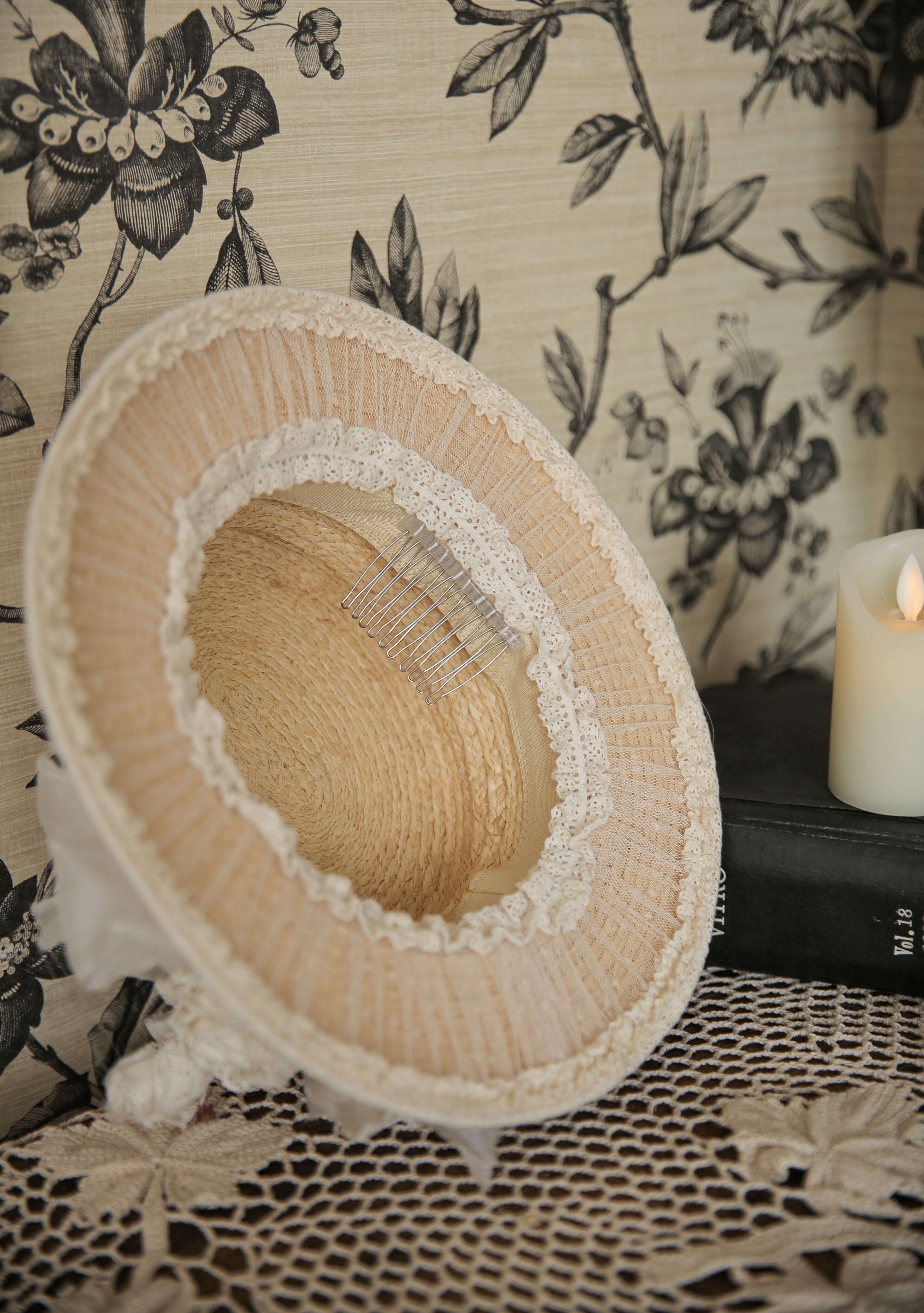 帽子の内側にはヘアコームが付いており、髪に留めやすくなっております。