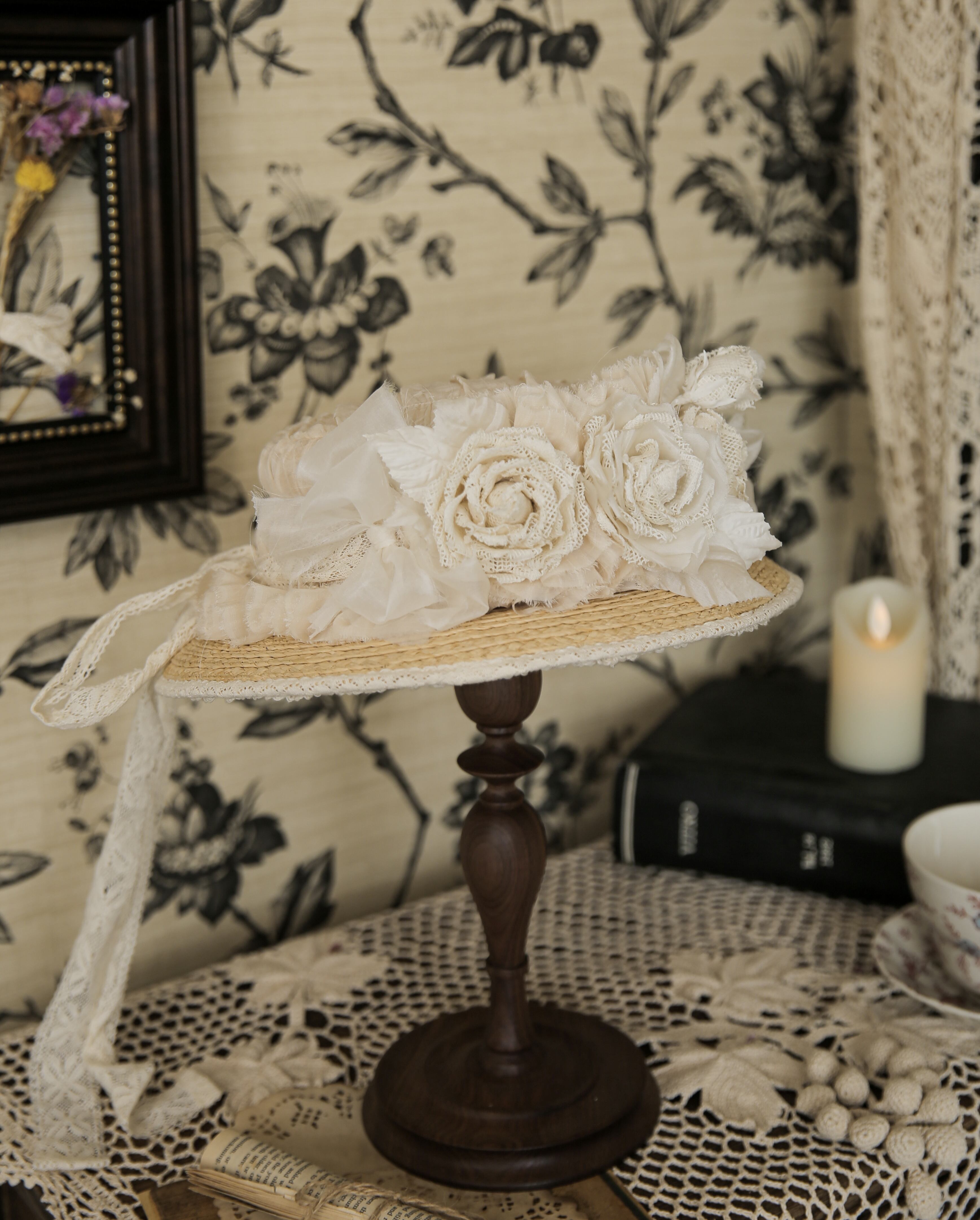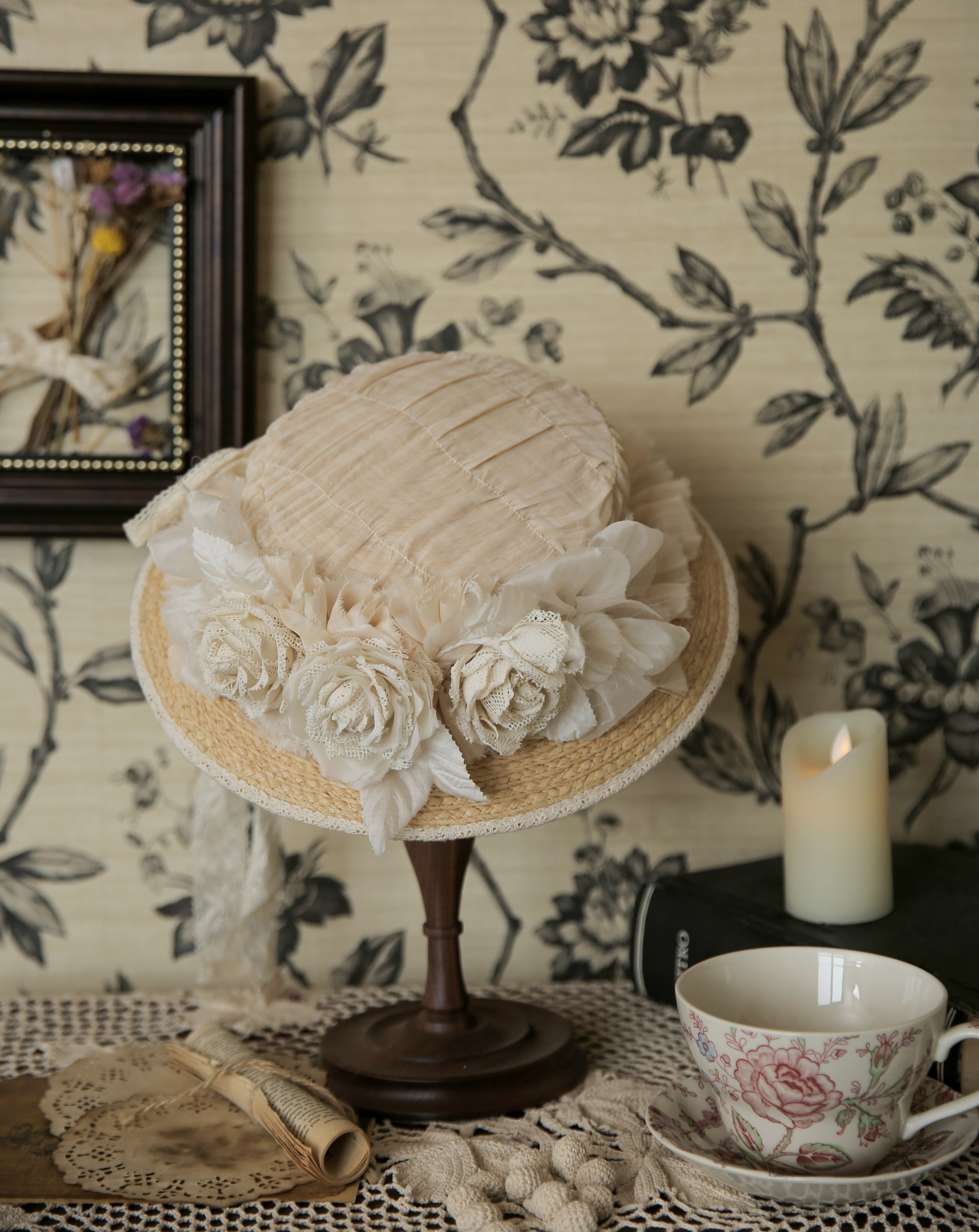 薔薇を纏ったエレガントなストローハット。