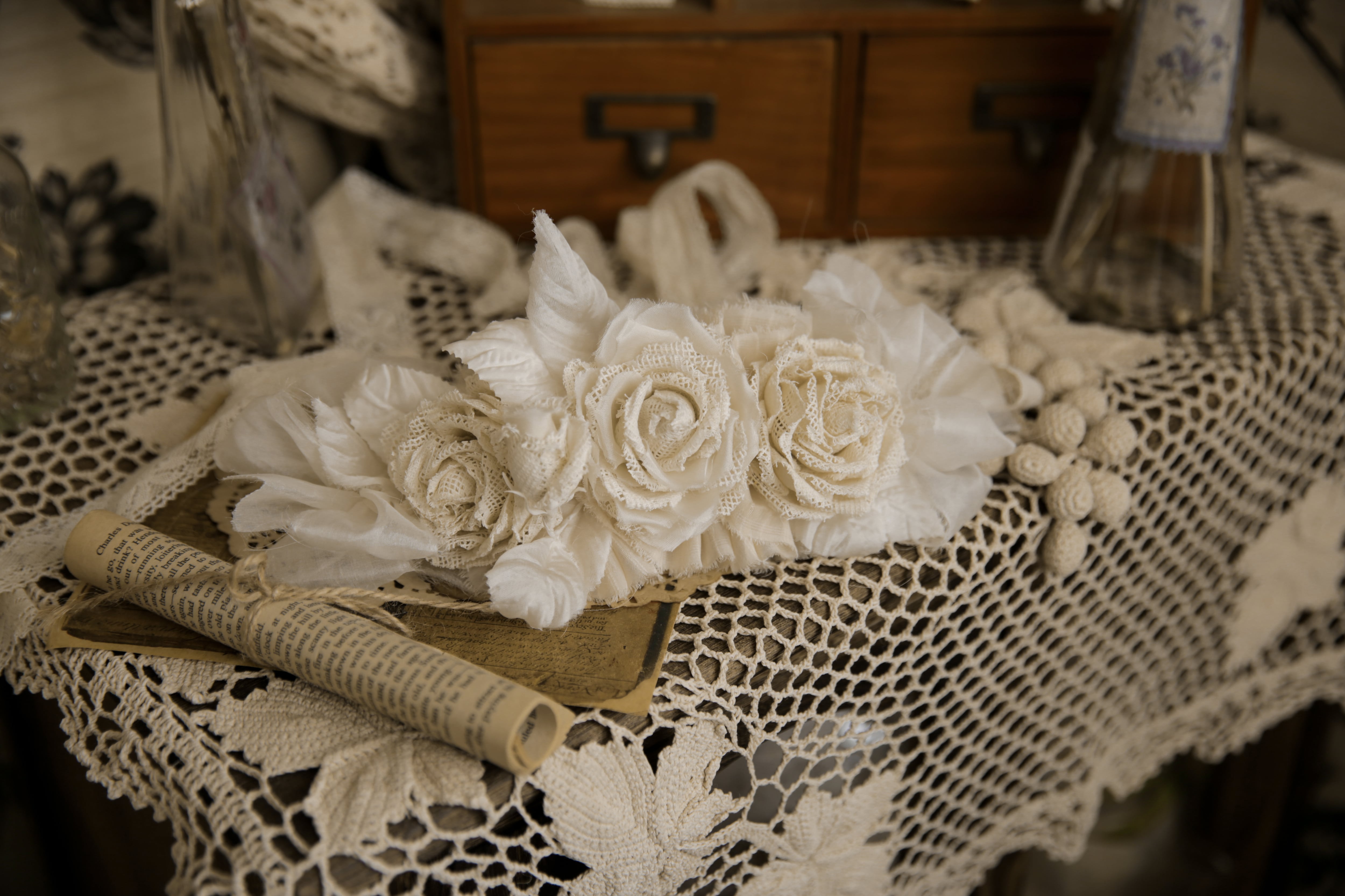 生成り色の薔薇は可愛らしく、上品な印象に。
