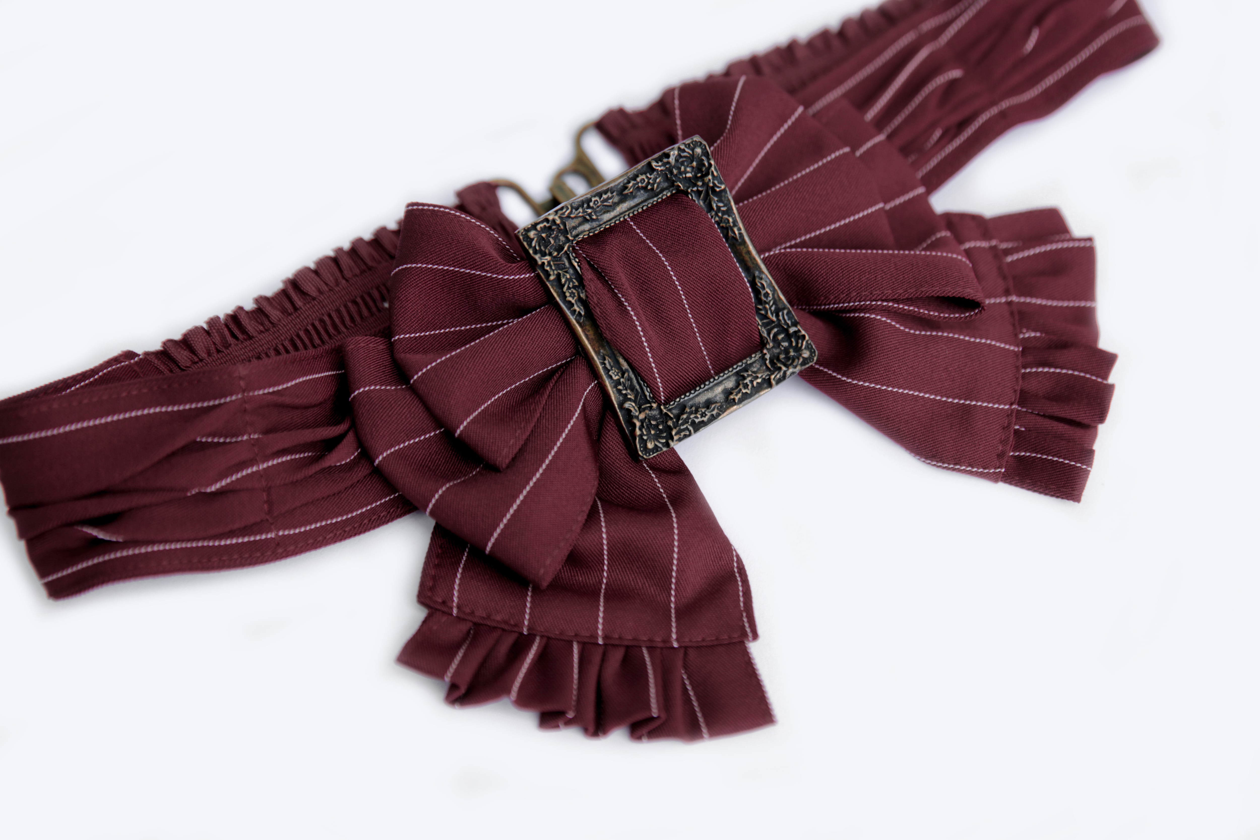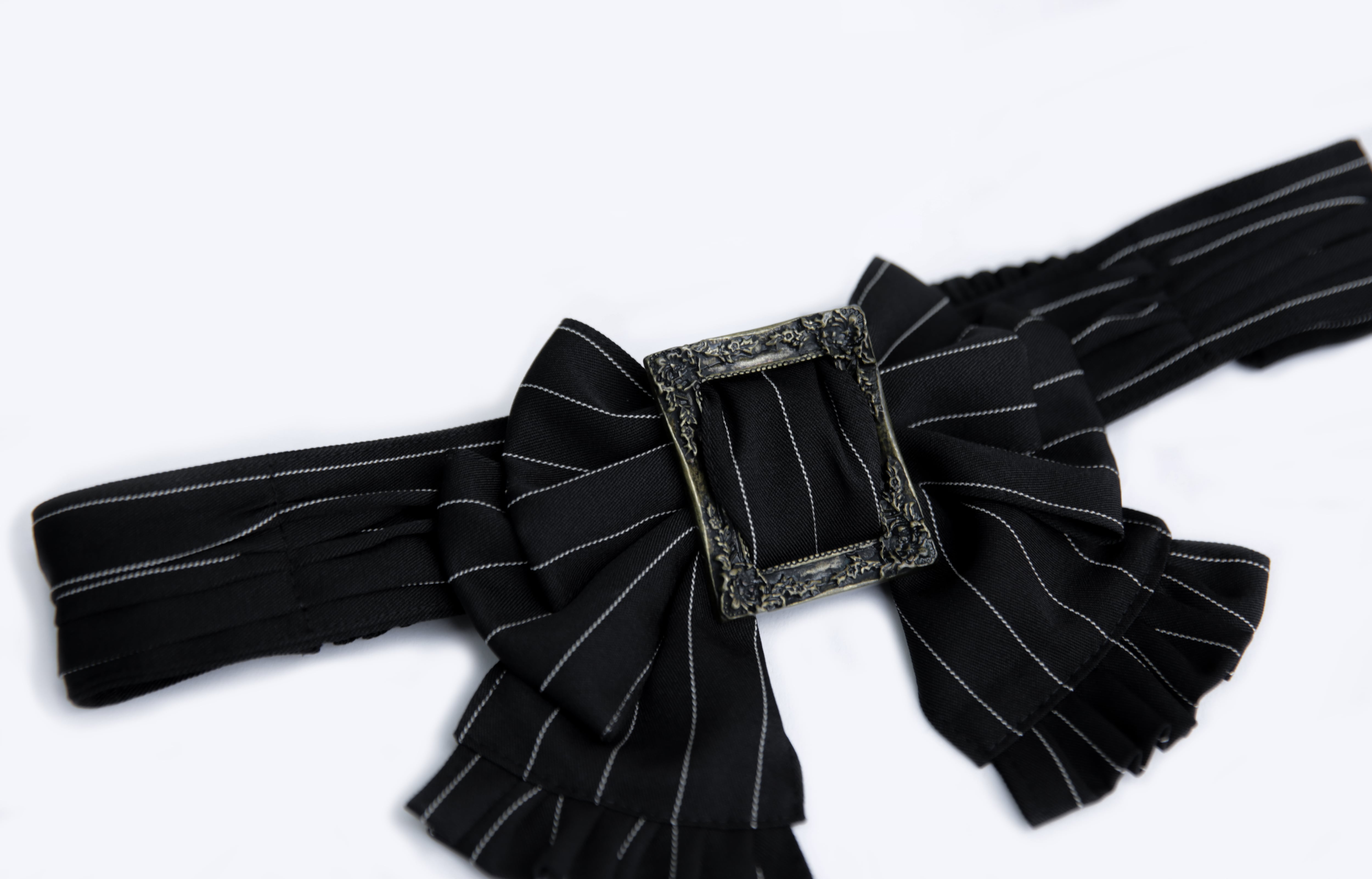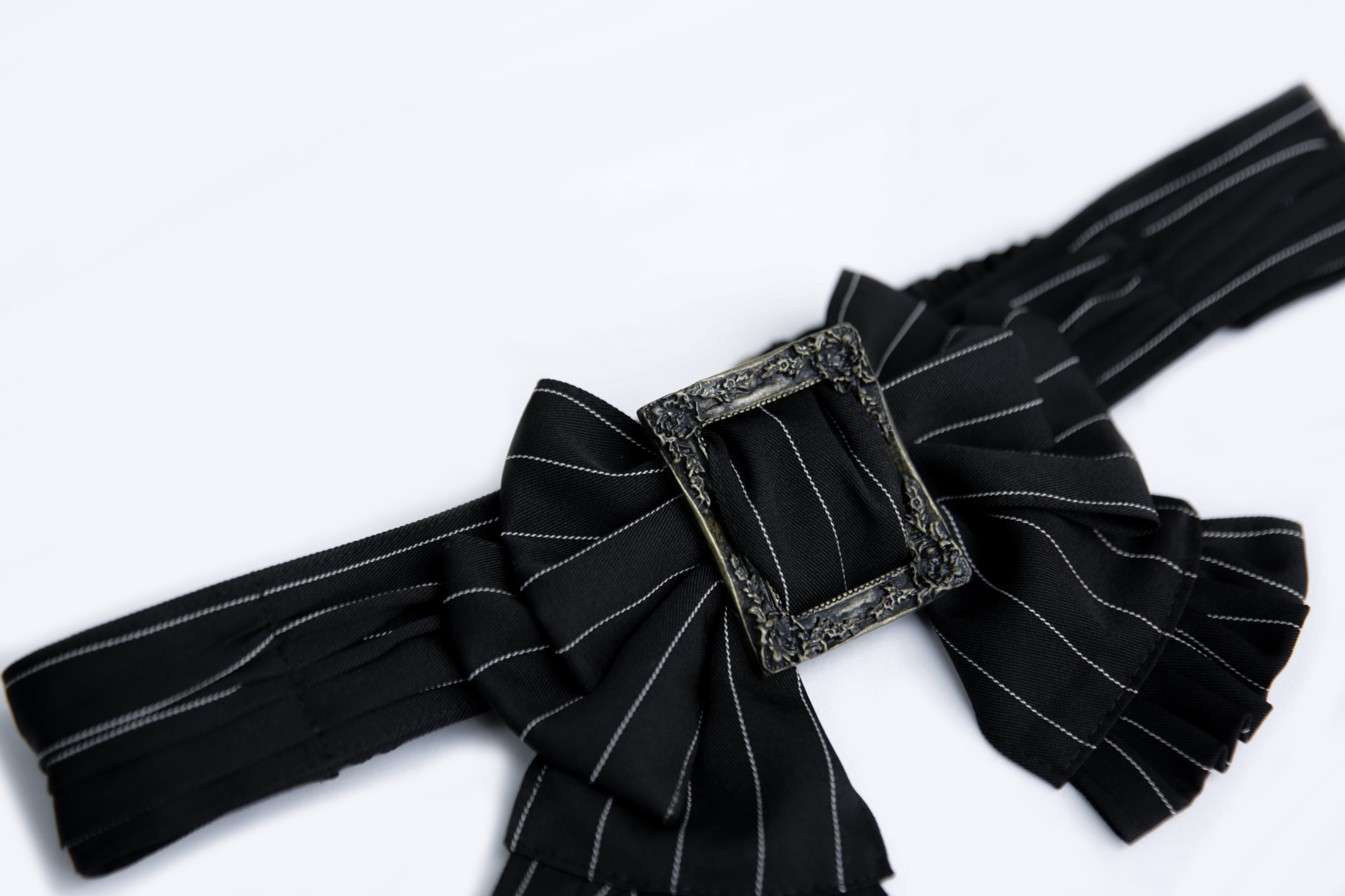 クラシカルなストライプ柄のリボンベルト。