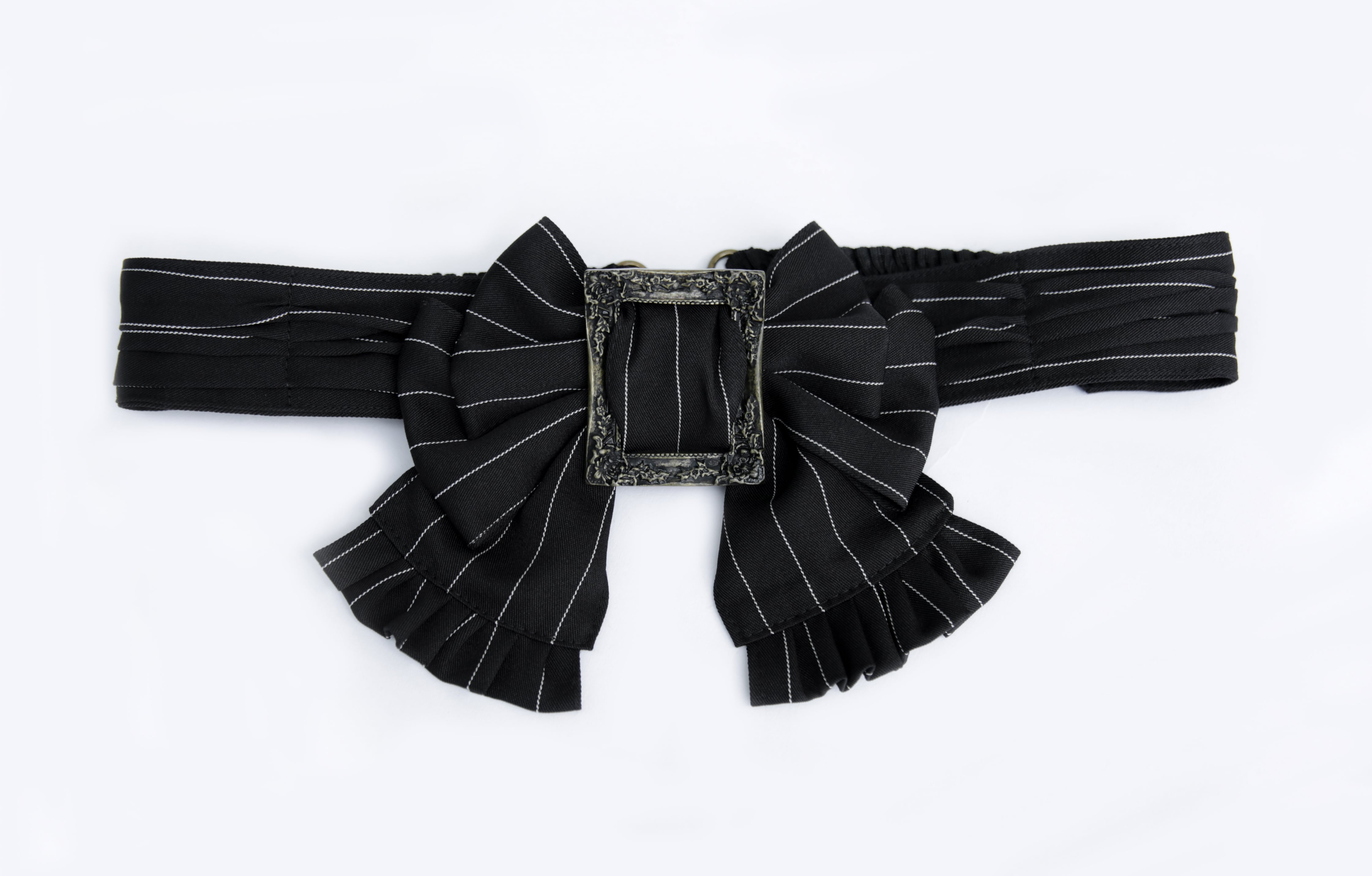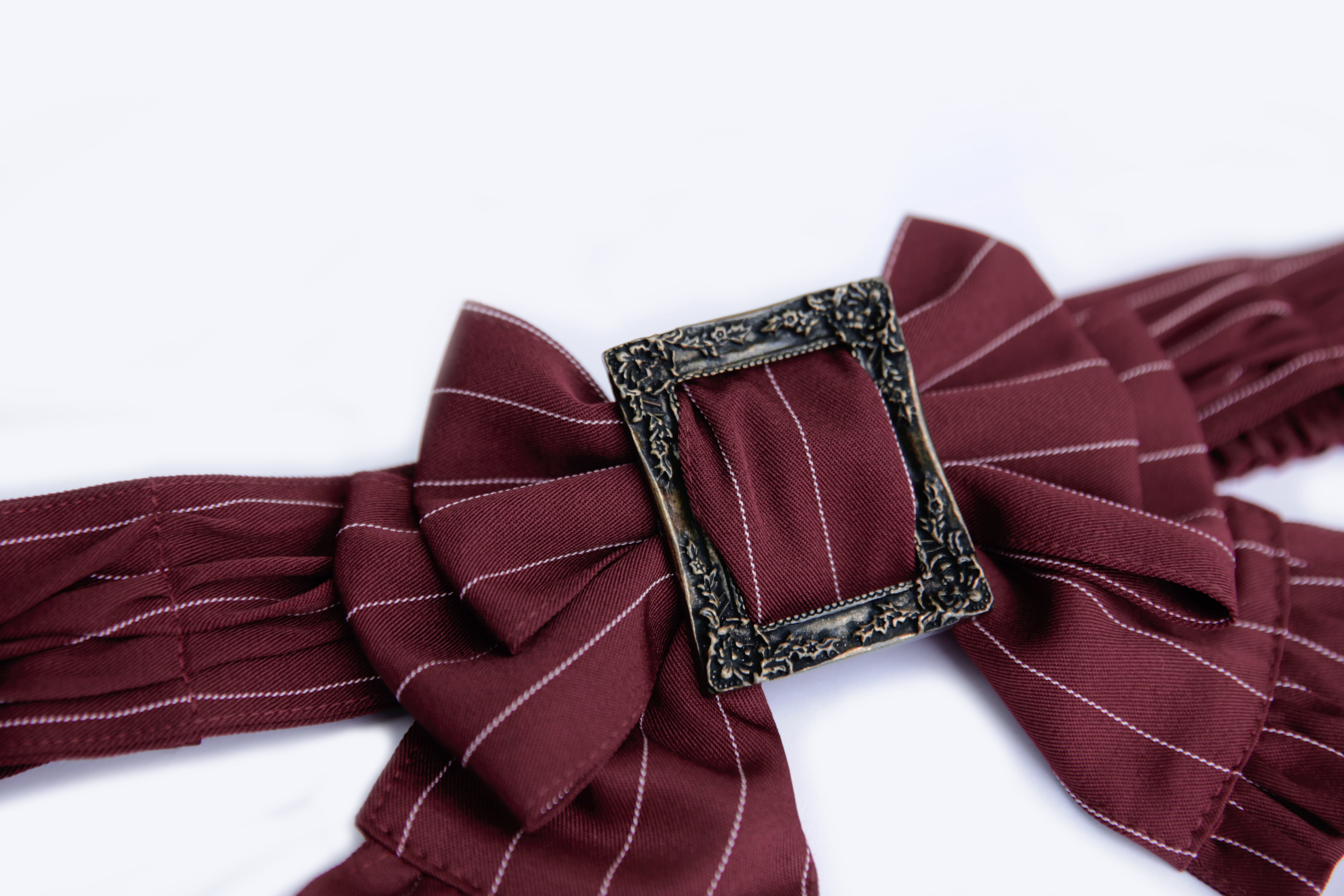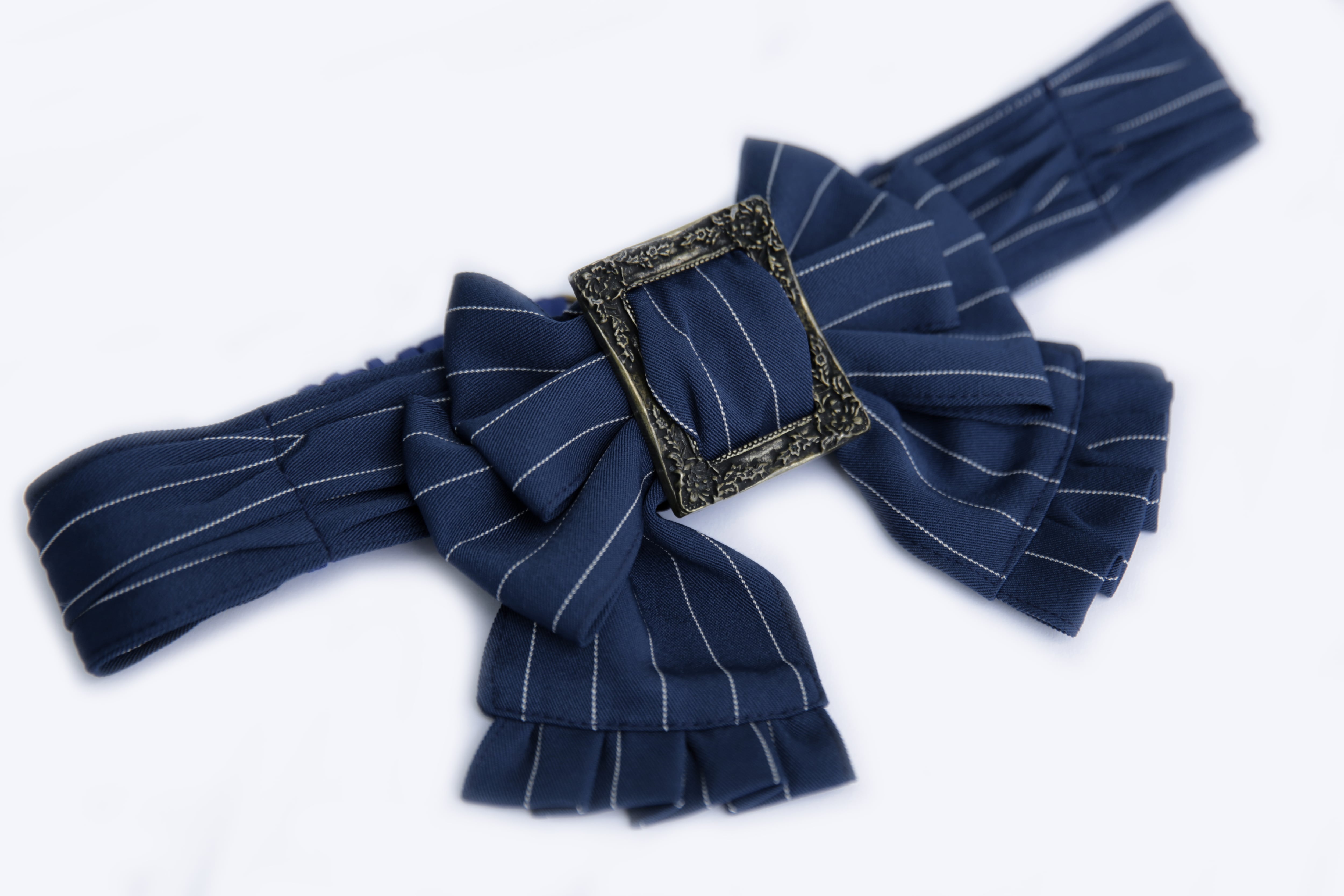 クラシカルなストライプ柄のリボンベルト。