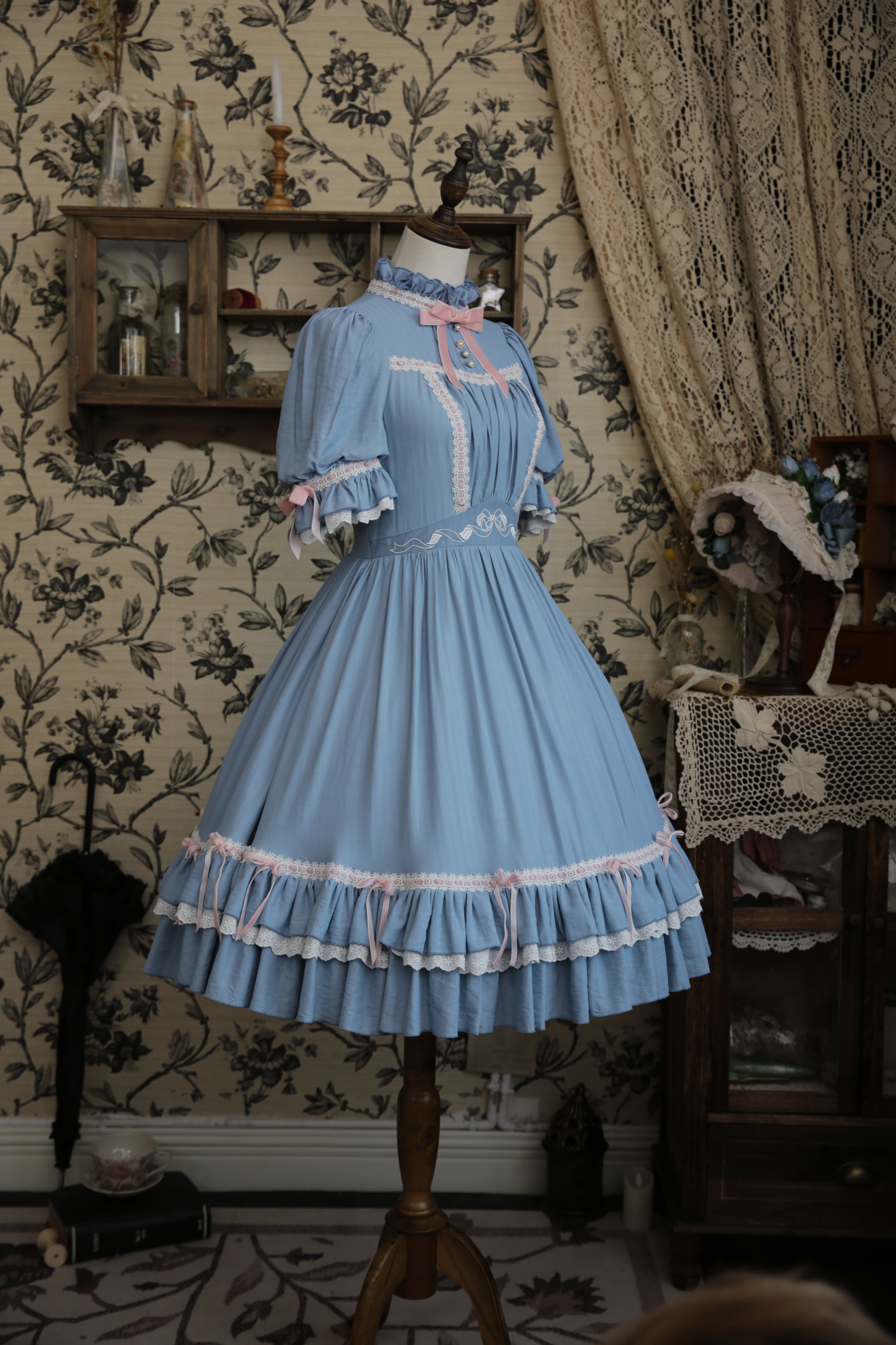 ・ワンピース本体 ブルー→飾りリボンの色:ブルー&ピンク
