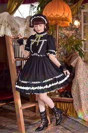 ・ワンピース本体 ブラック→飾りリボンの色:ブラック&グリーン