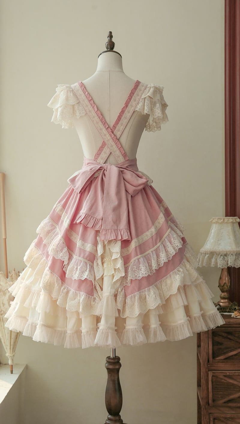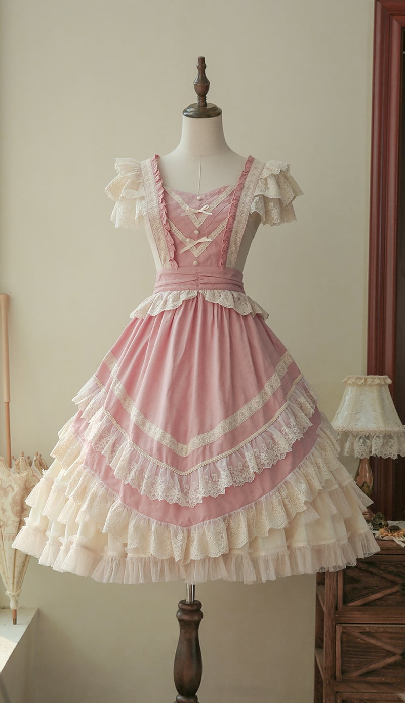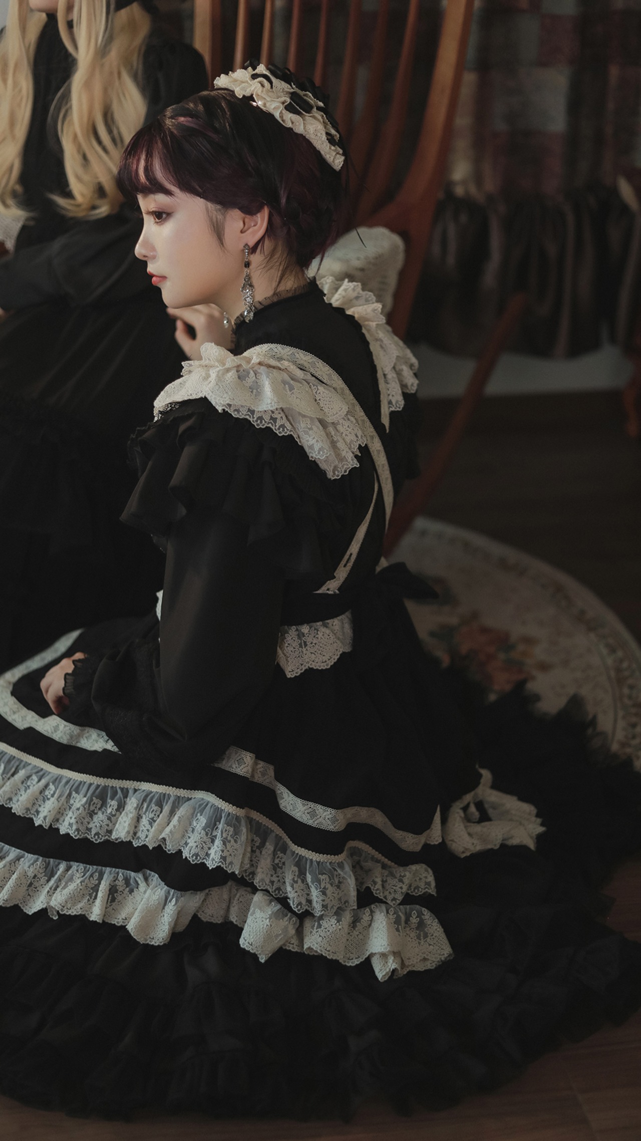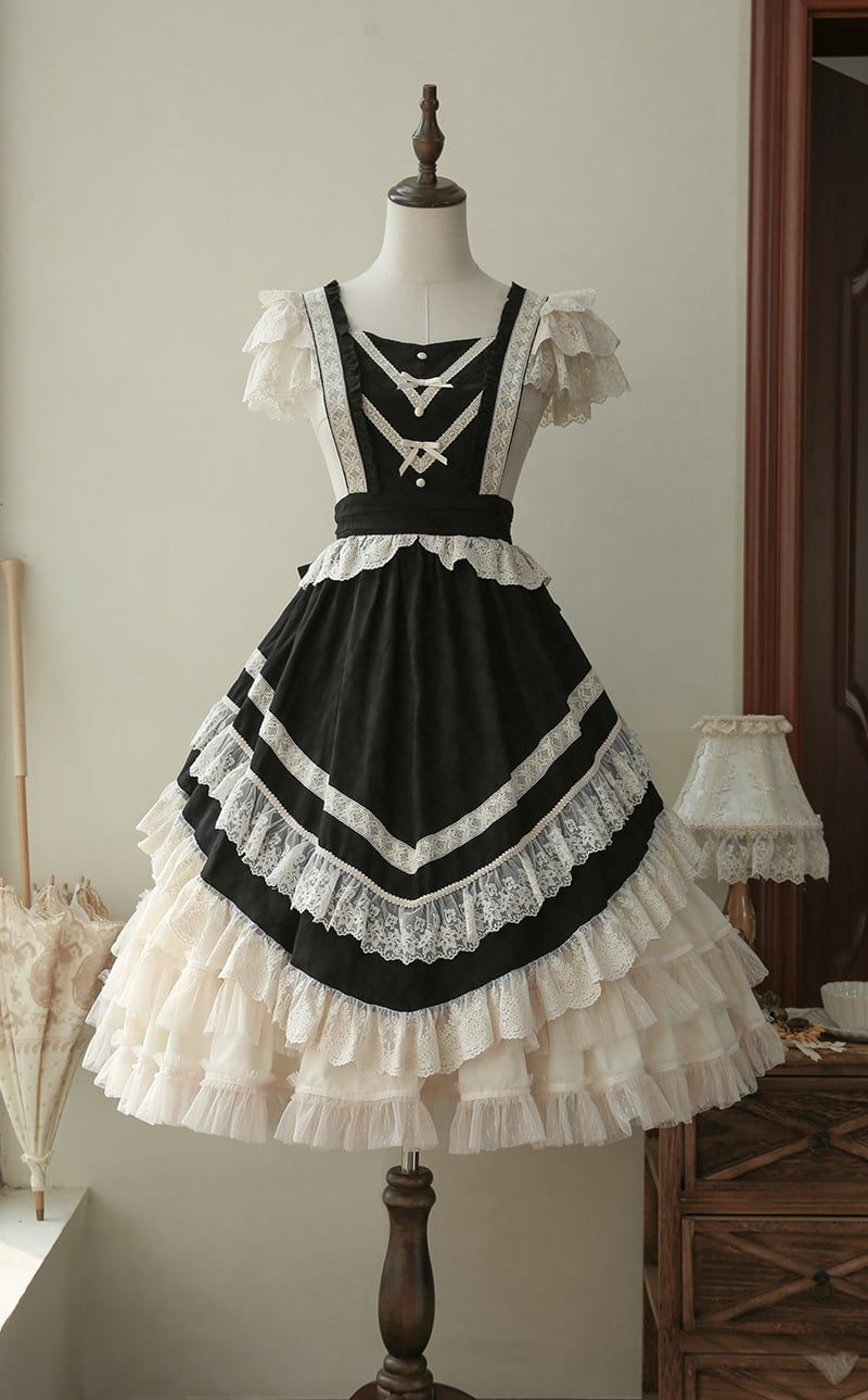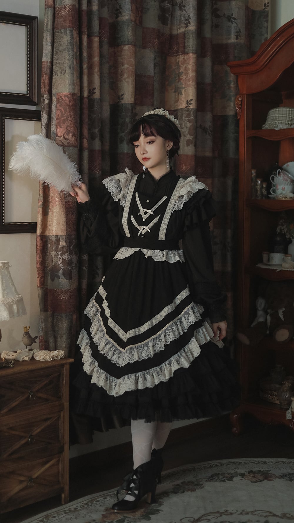 綿レースのフリルでクラシカルでありながら可愛らしく、V字のシルエットが印象的なアイテム。