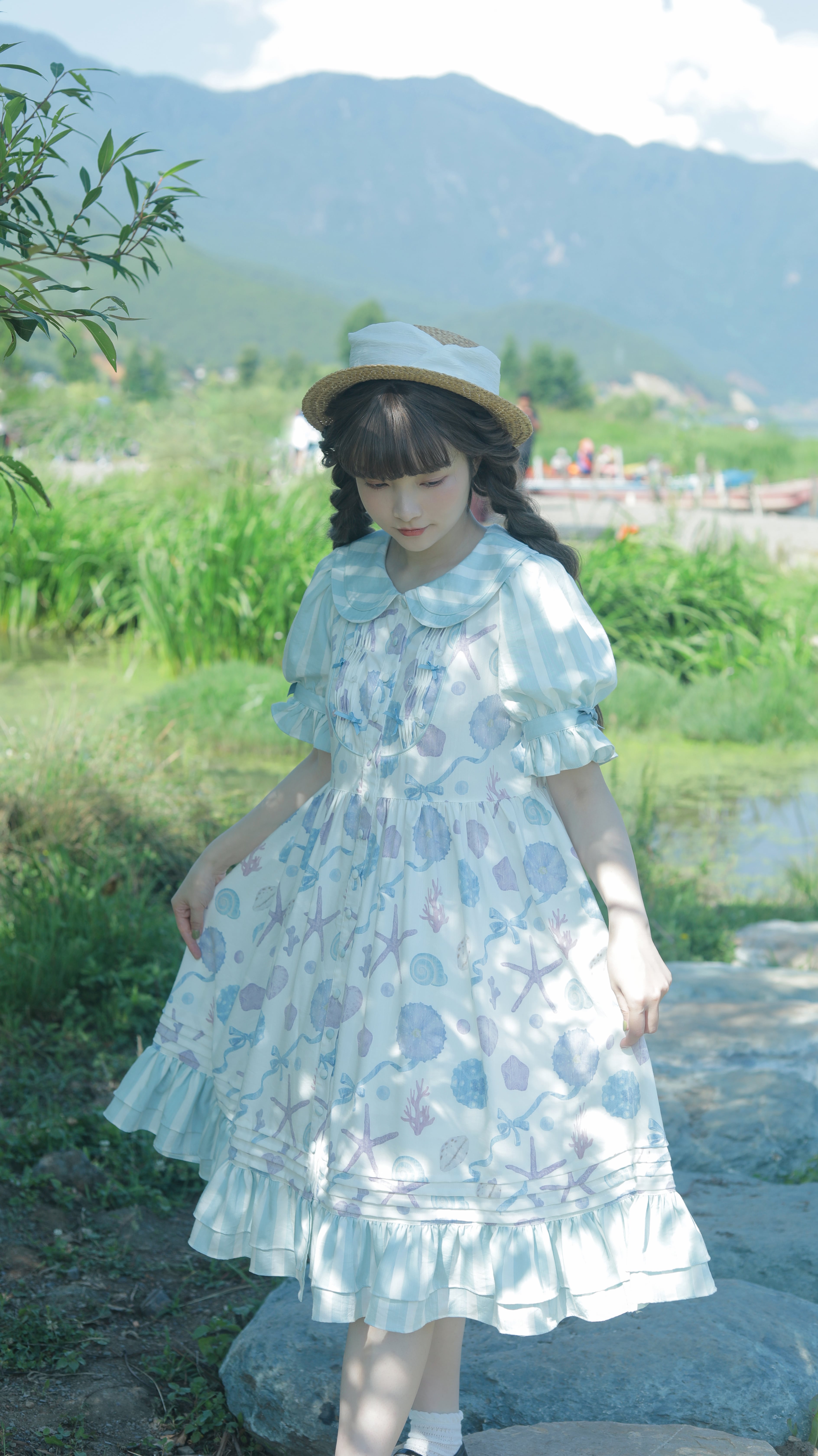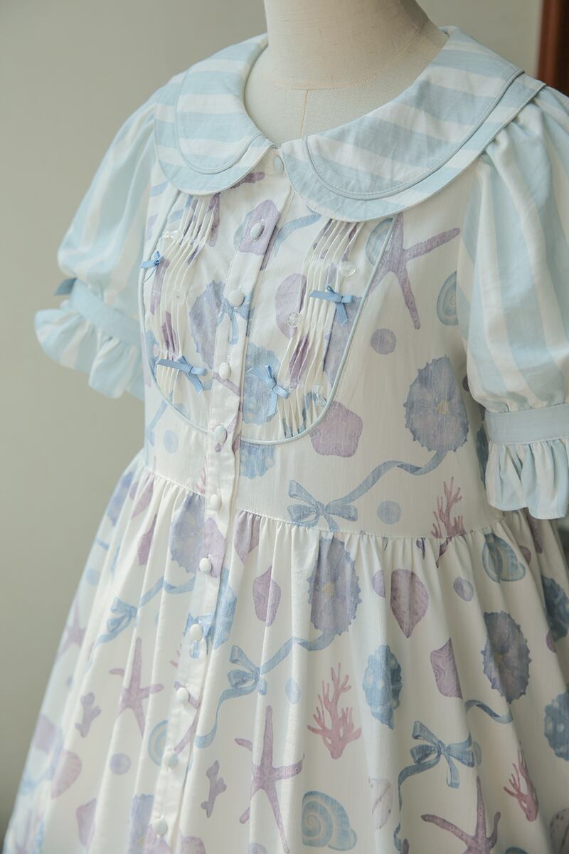さわやかなボーダーの丸襟とフリルは、パステルカラーのワンピースと相性バッチリ◎