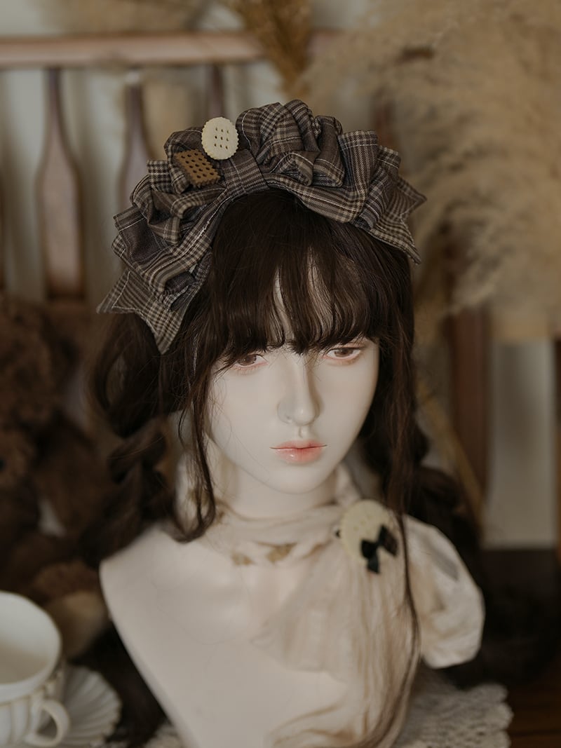 シンプルなデザインで様々なコーデに合わせやすいリボンカチューシャ。パールと小さいクッキーがかわいいアイテムです♪