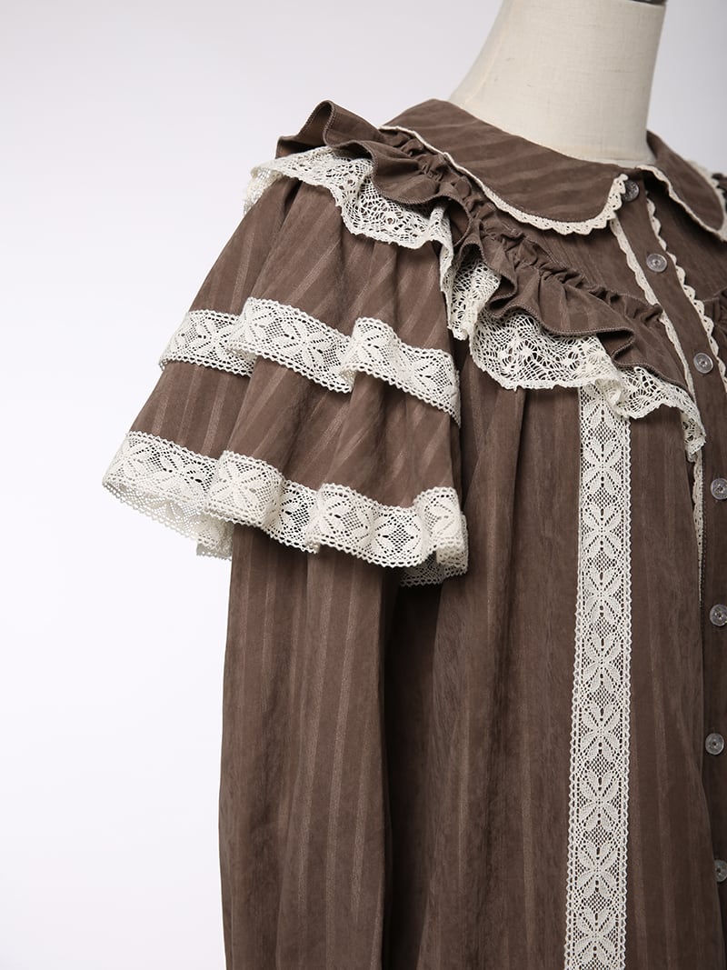 肩まわりや袖のふんだんに重なり合ったレースとフリルがボリューミーで、単体で着用してもかわいいブラウスです。