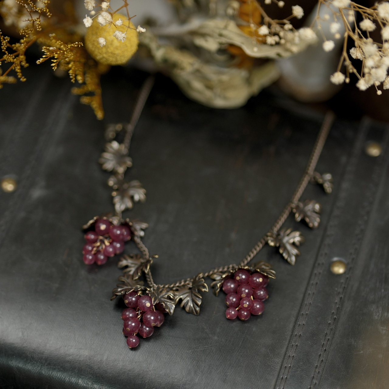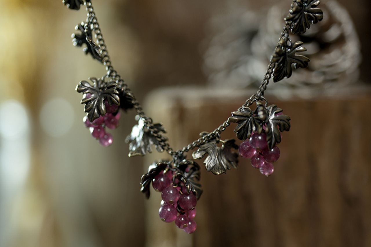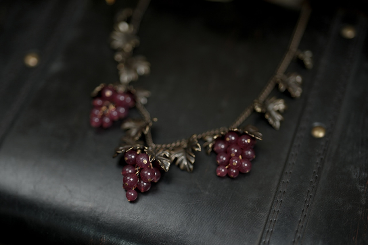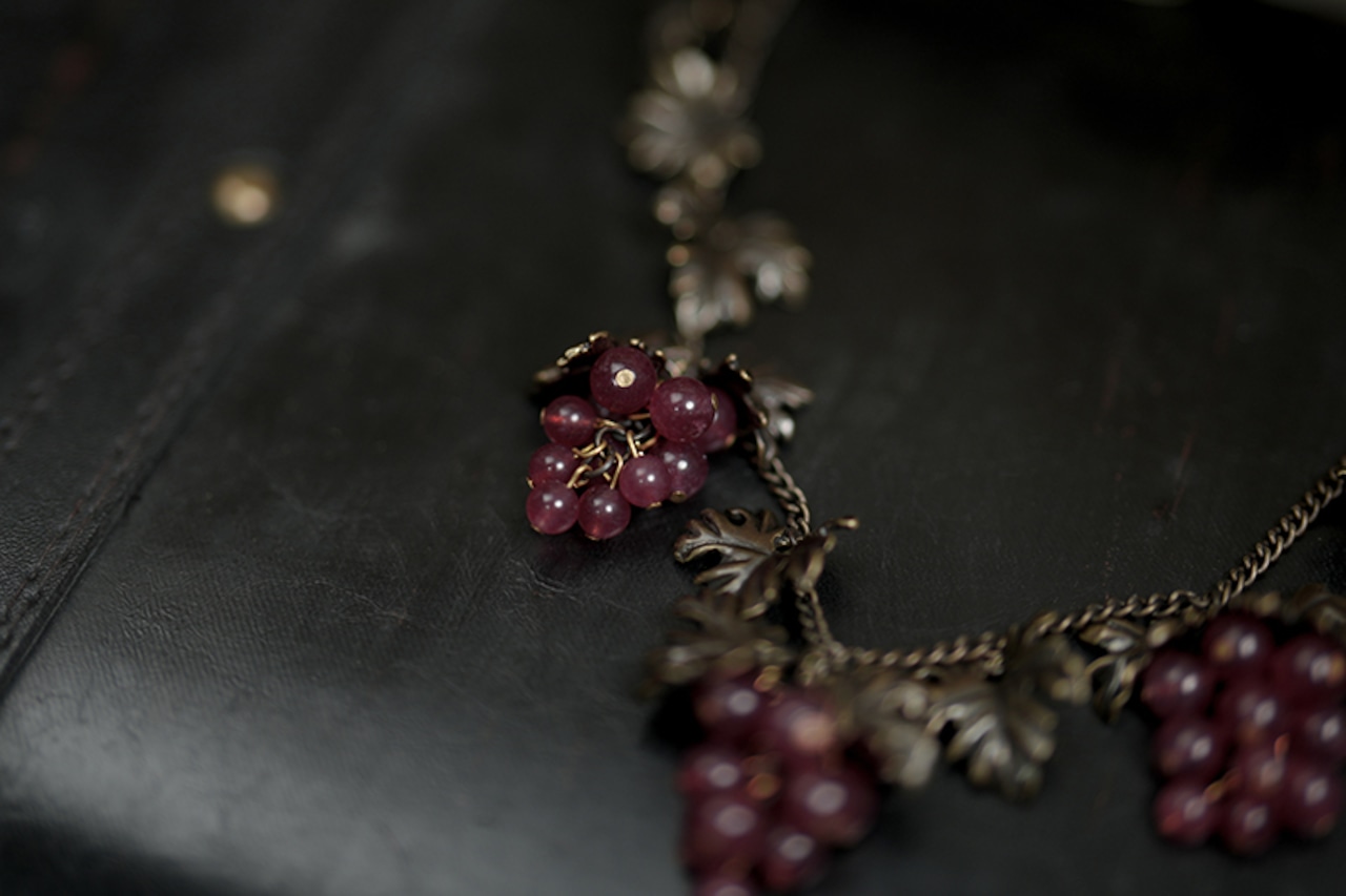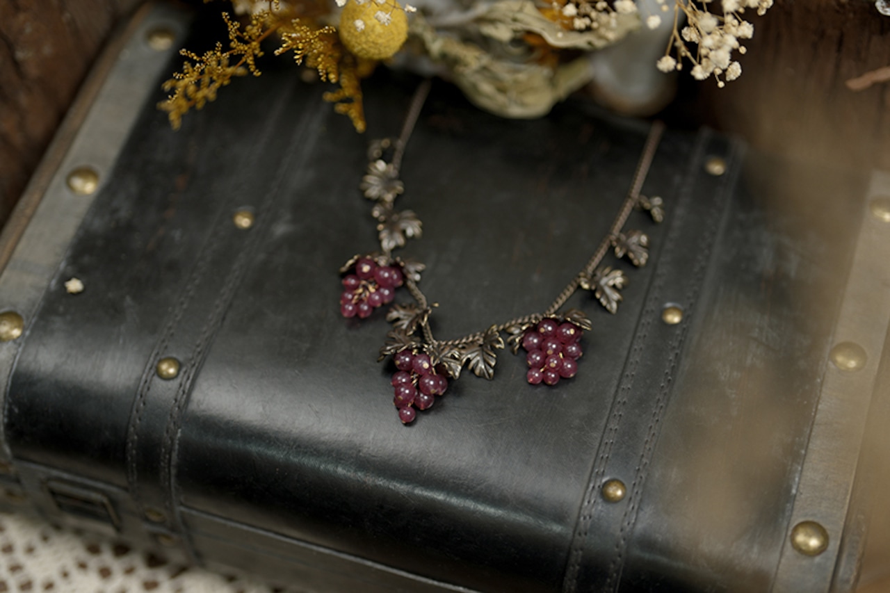 熟した濃紫色のブドウがモチーフのアンティーク調ネックレス。