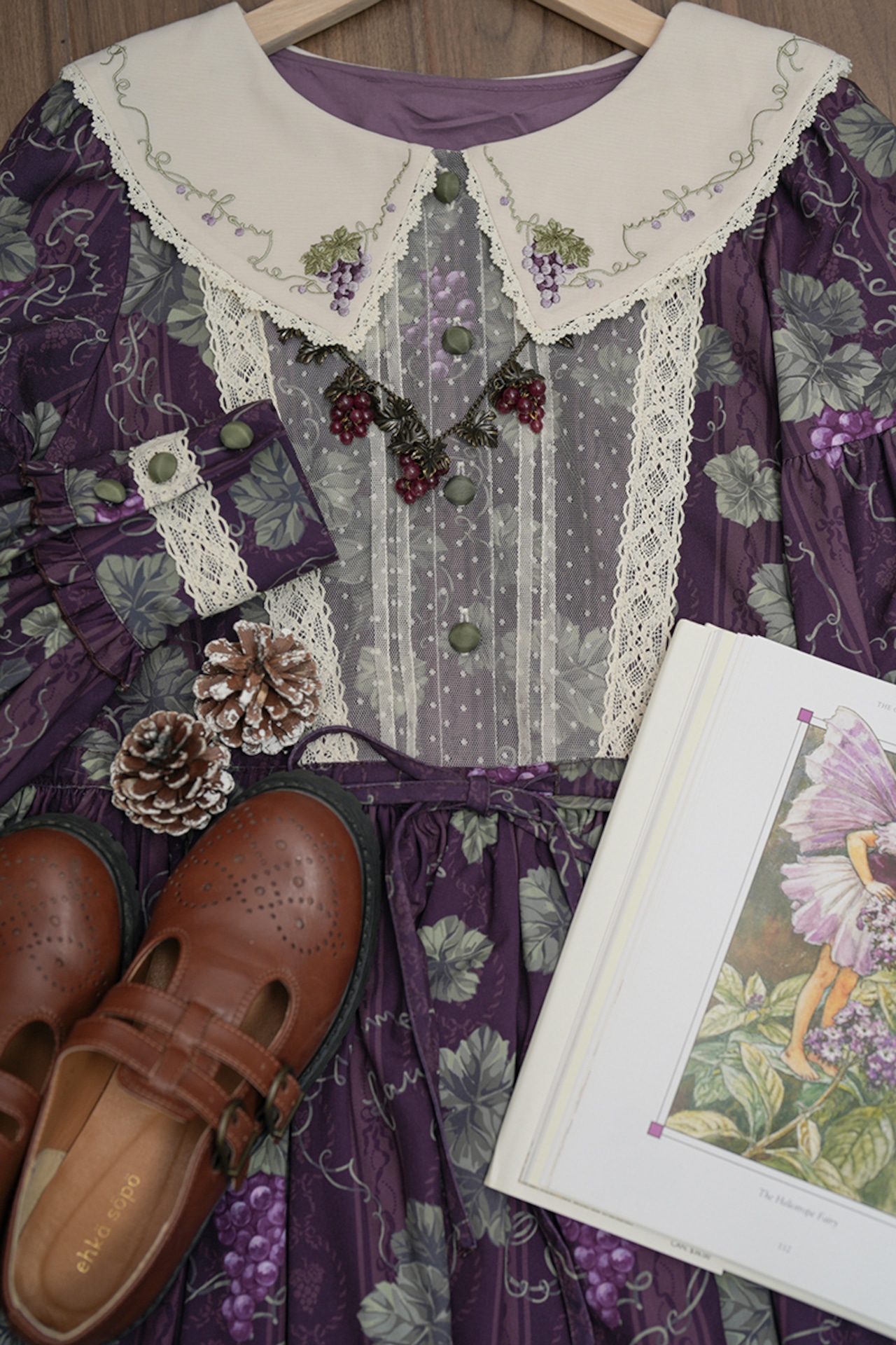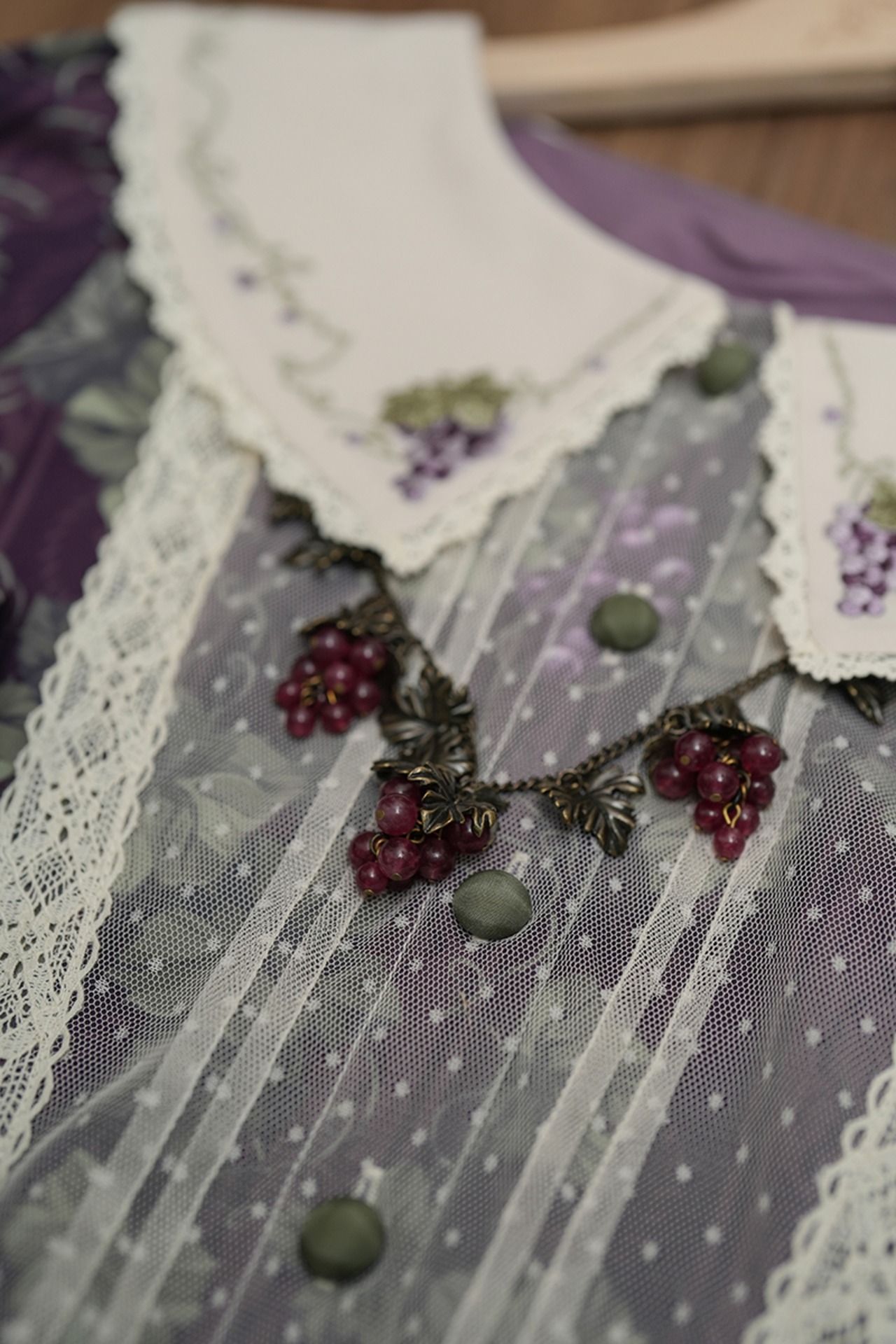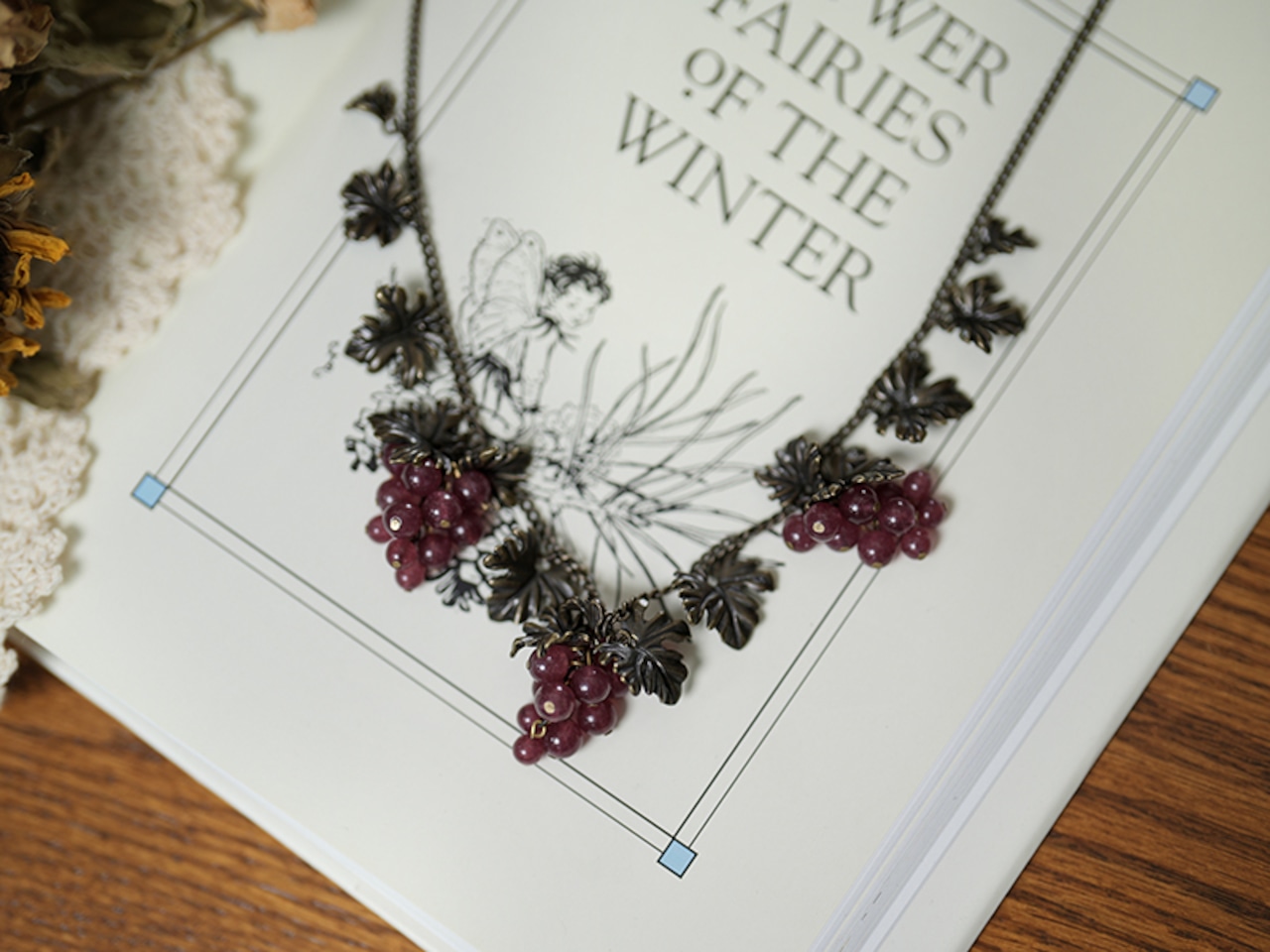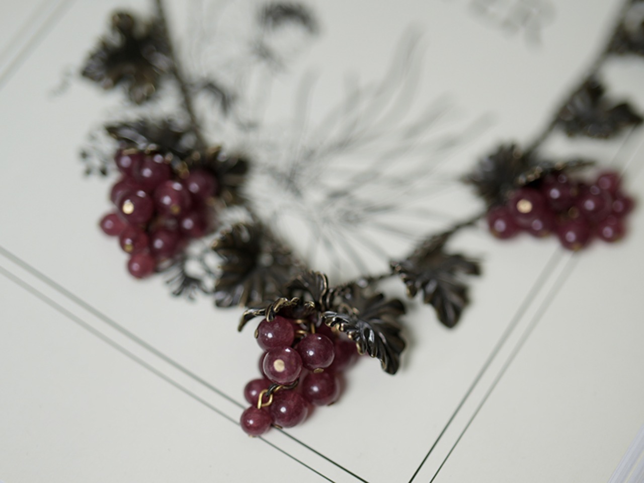 熟した濃紫色のブドウがモチーフのアンティーク調ネックレス。