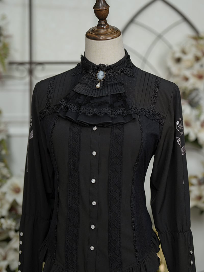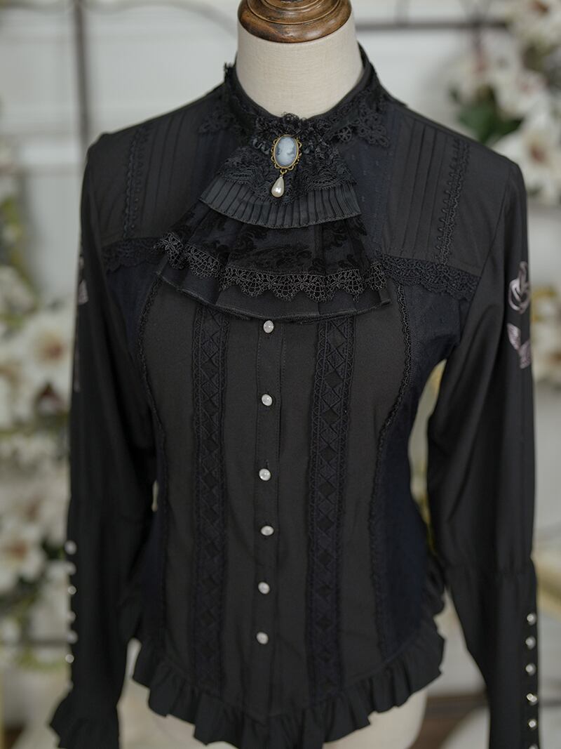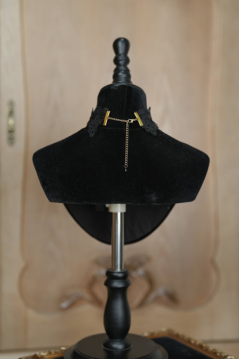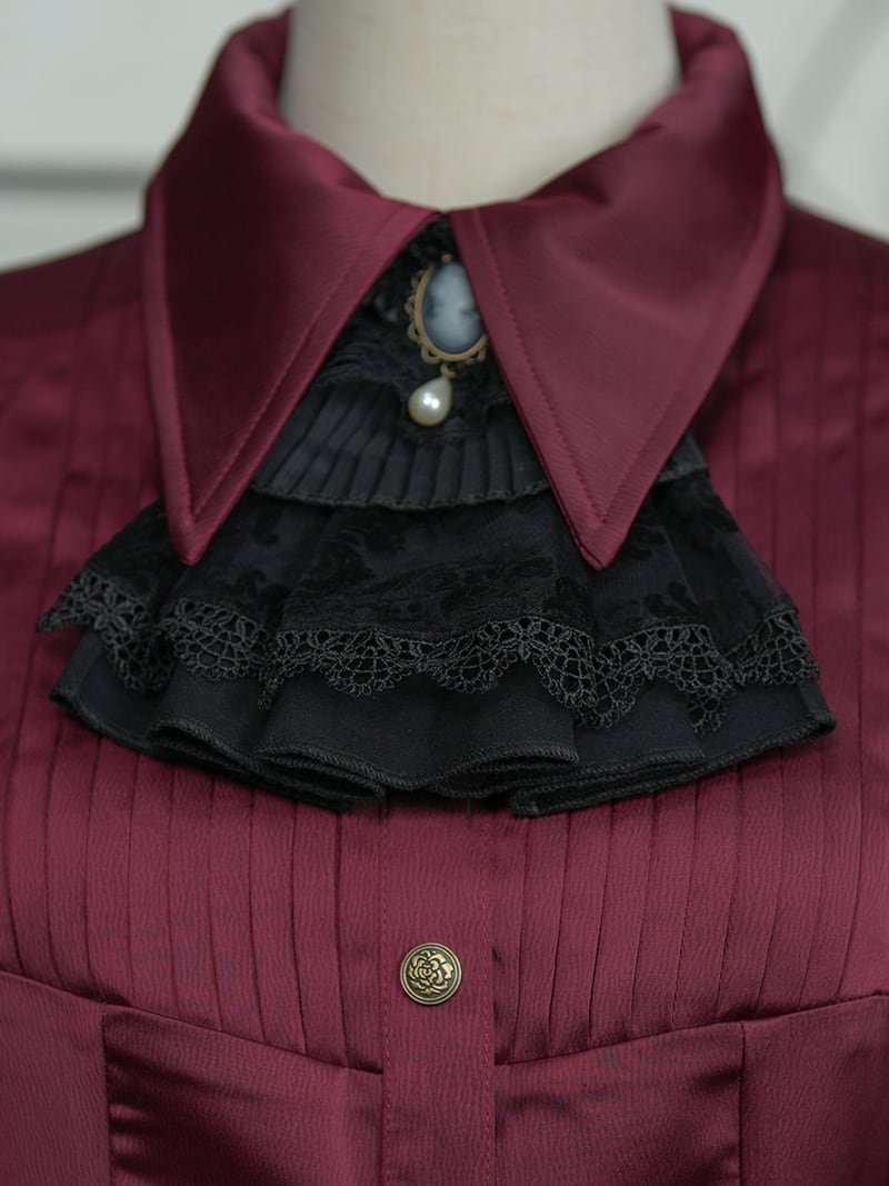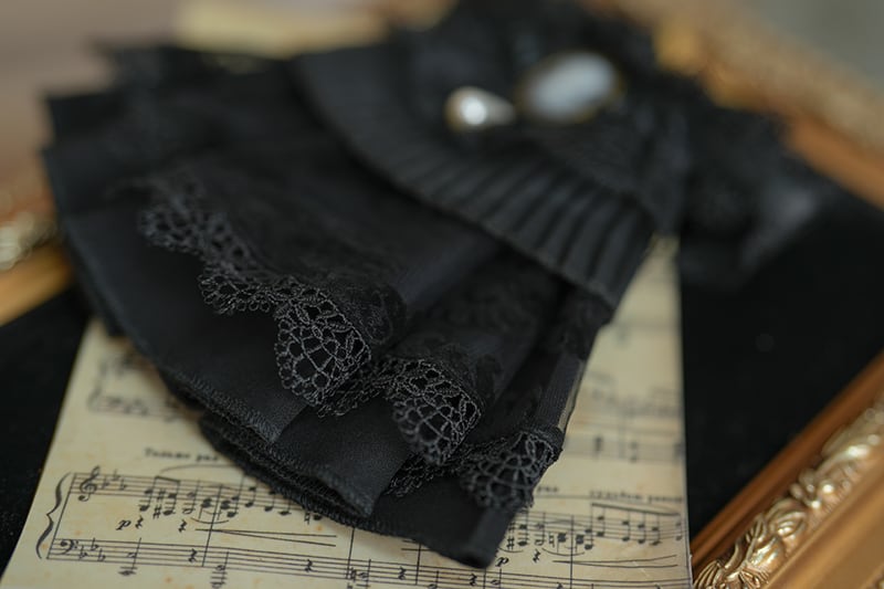 重なったレースとさりげなく佇むカメオ、そして艶やかなパールが、胸元をエレガントに演出します。