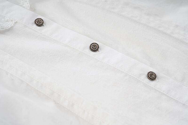 パステルカラーの四つ葉のクローバーやお花、ピンクのリボンがあしらわれた丸えり、そして小さなの四つ葉のクローバーが刻まれたボタンはとてもキュート❁