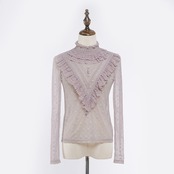 首元は華やかなたっぷりのフリルとスタンドカラー。