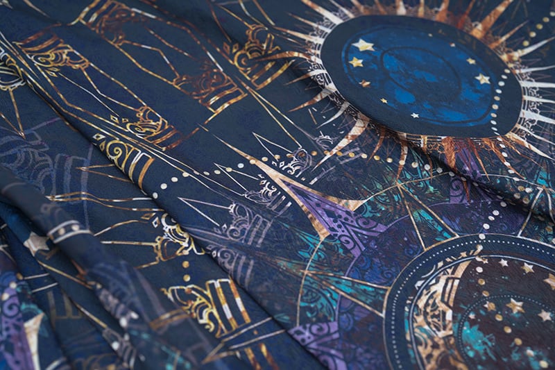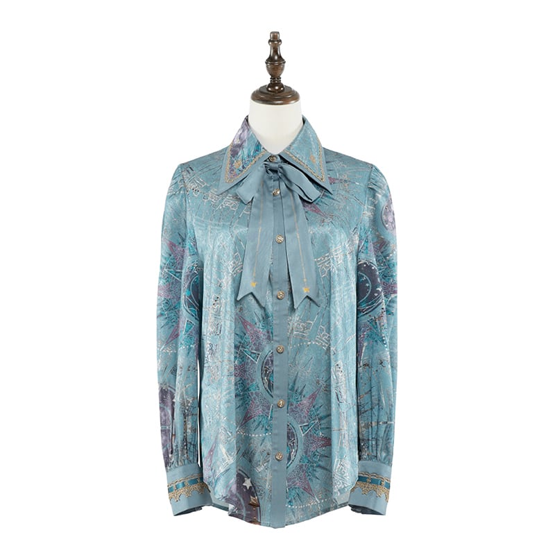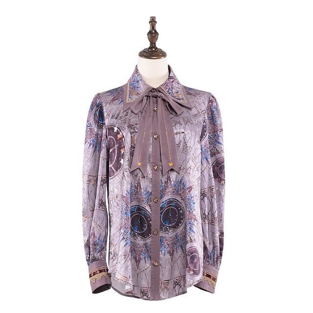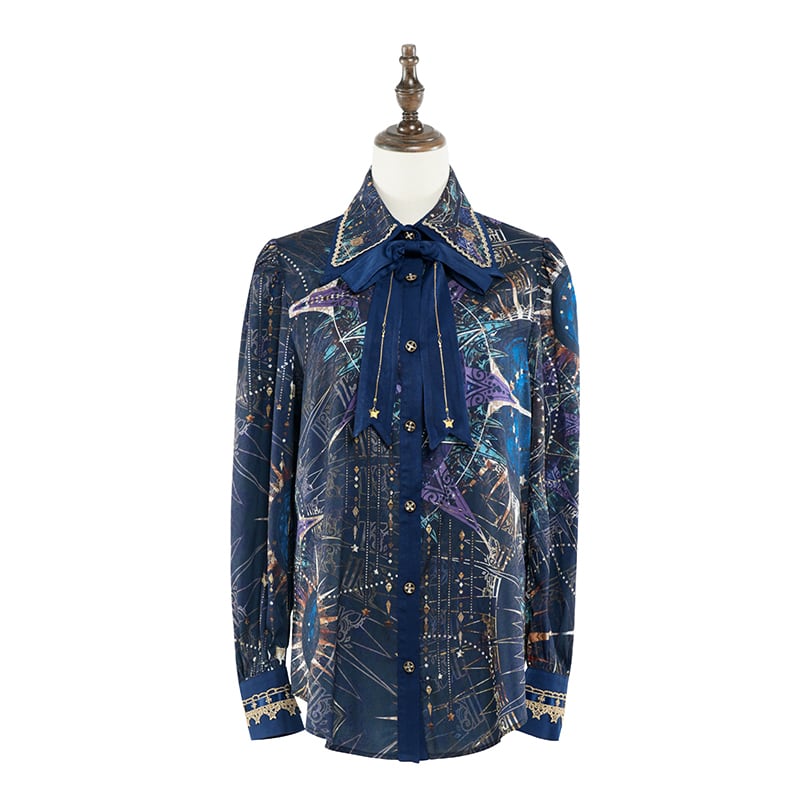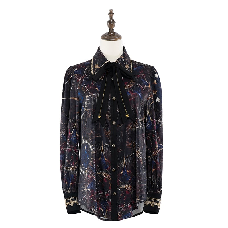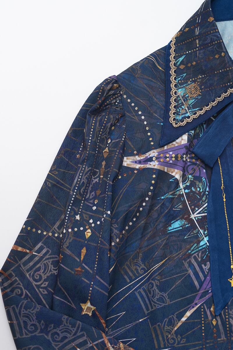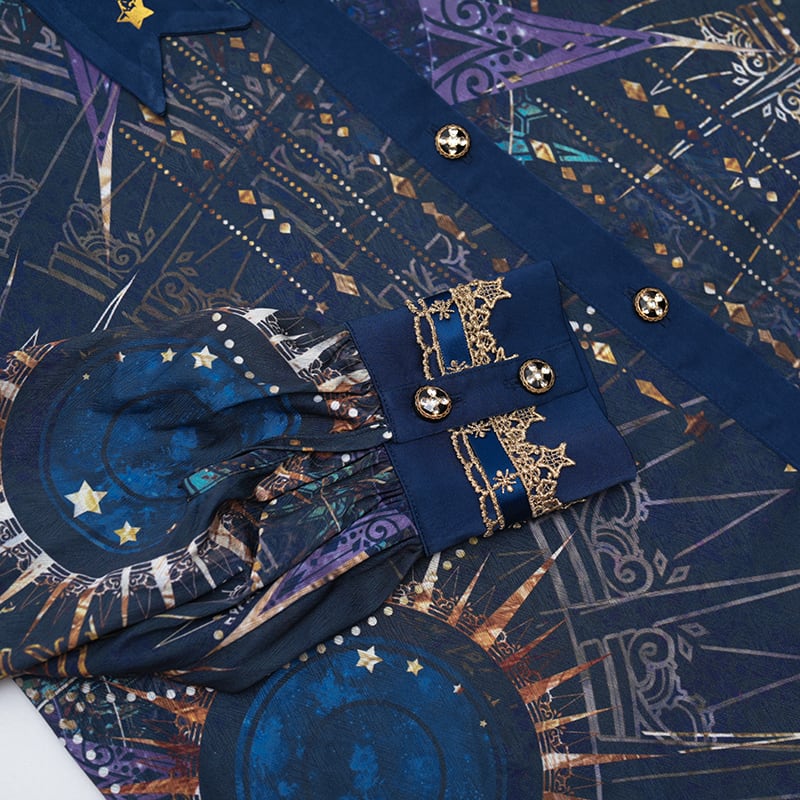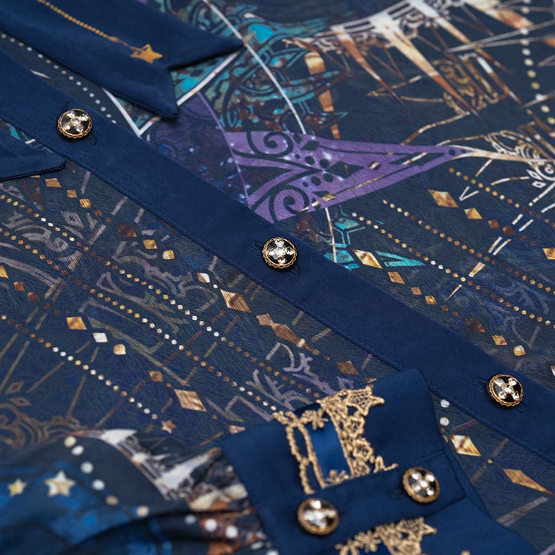 幻想的に煌めく星々やステンドグラスのような魔方陣が美しいブラウス。