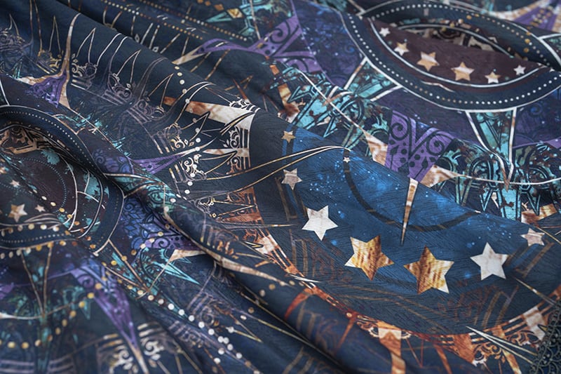 幻想的な星々やステンドグラスのような魔方陣が美しいスカート。