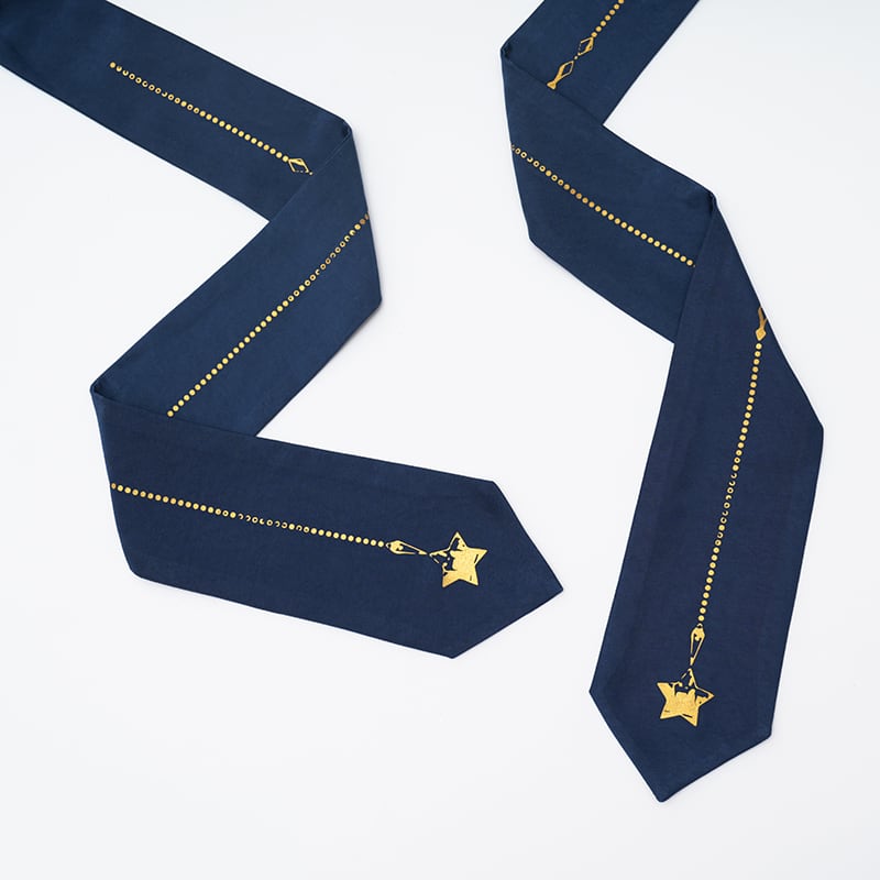 ところどころに輝く星のようなゴールドのレースとリボンをあしらいました。